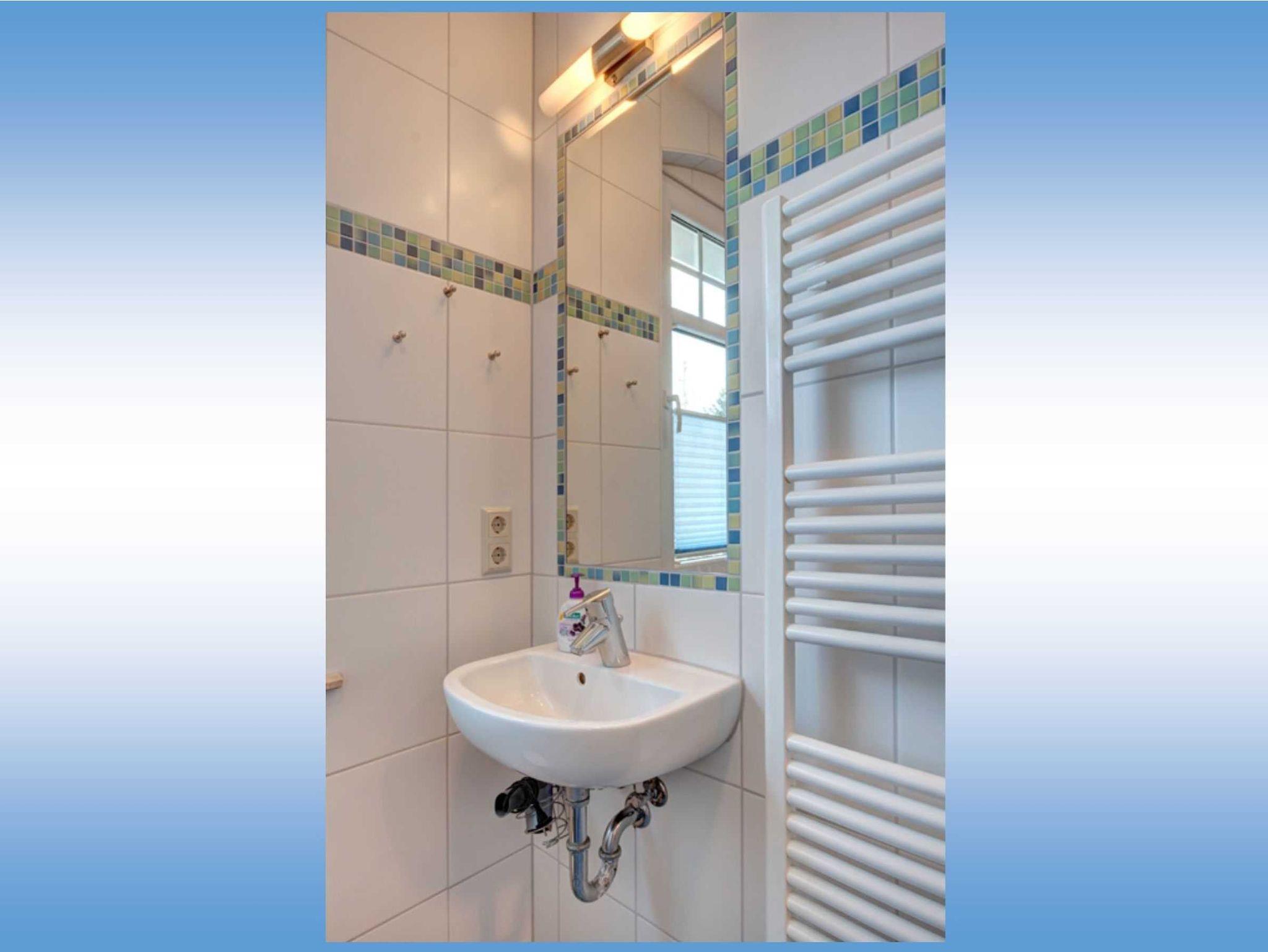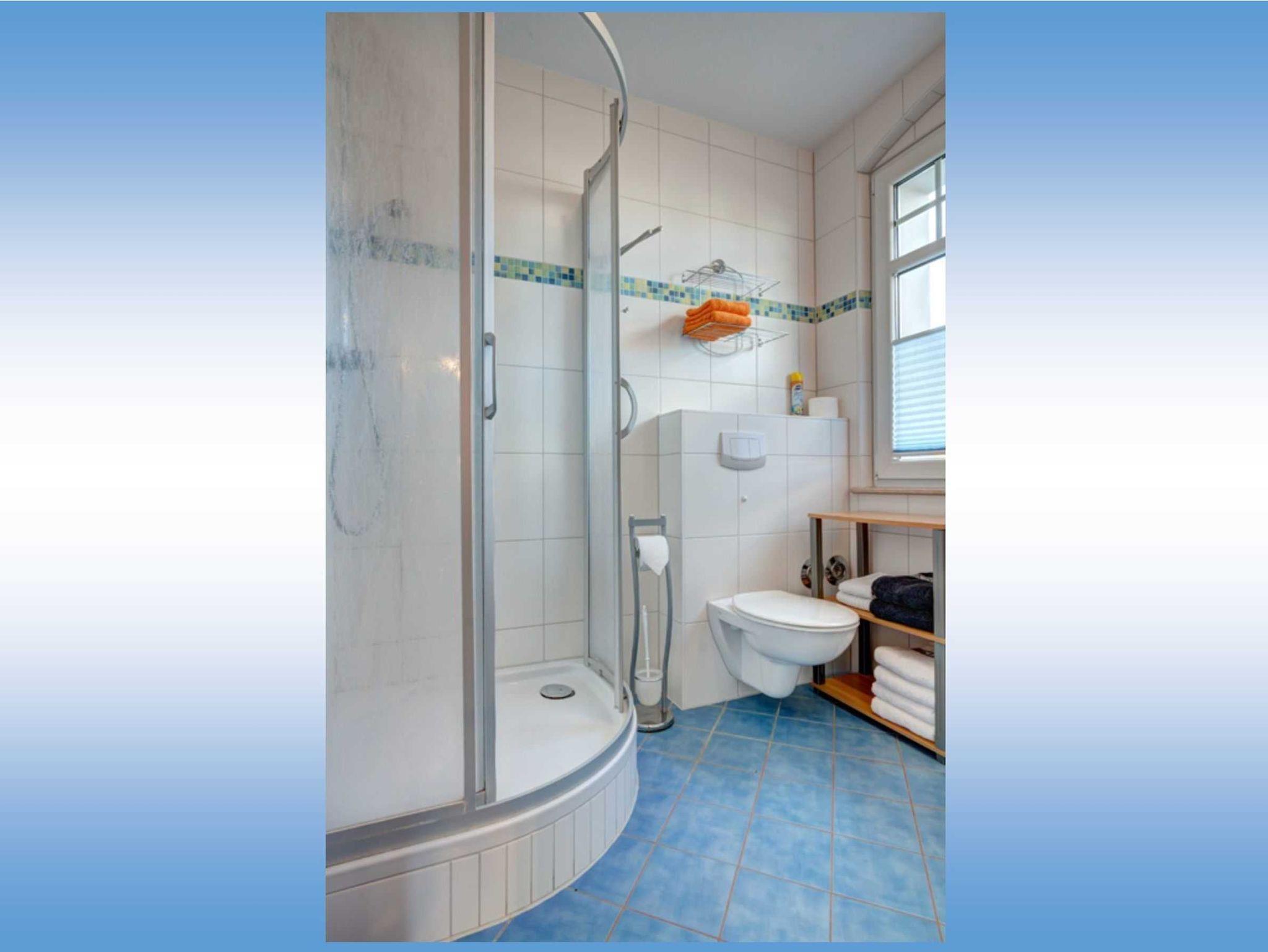 Unser Badezimmer ist komplett ausgestattet mit Dusche, WC, Waschbecken.