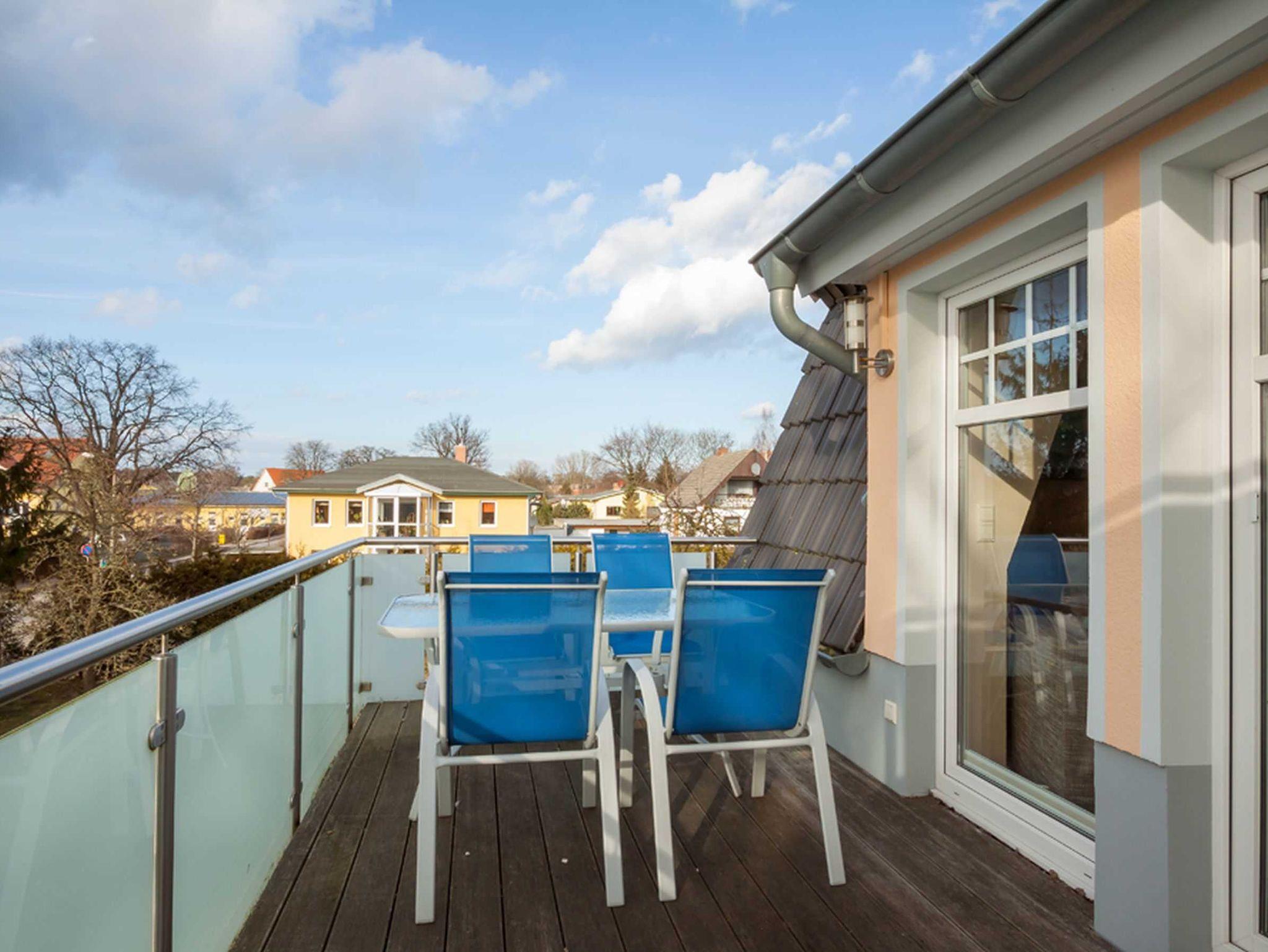 Vom Wohnzimmer aus gelangen Sie auf den geräumigen Balkon (Balkonmöbel-Kombination vorhanden), ein idealer Platz zum Relaxen, zum Frühstück bei Sonnenschein oder für ein Glas Wein am Abend.