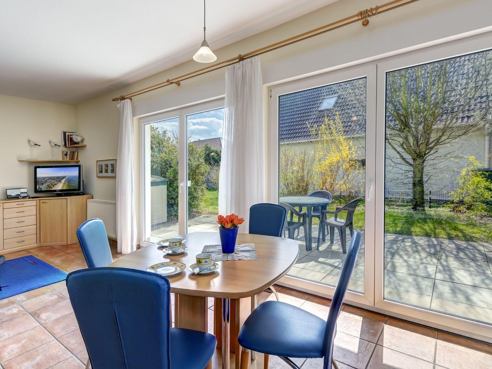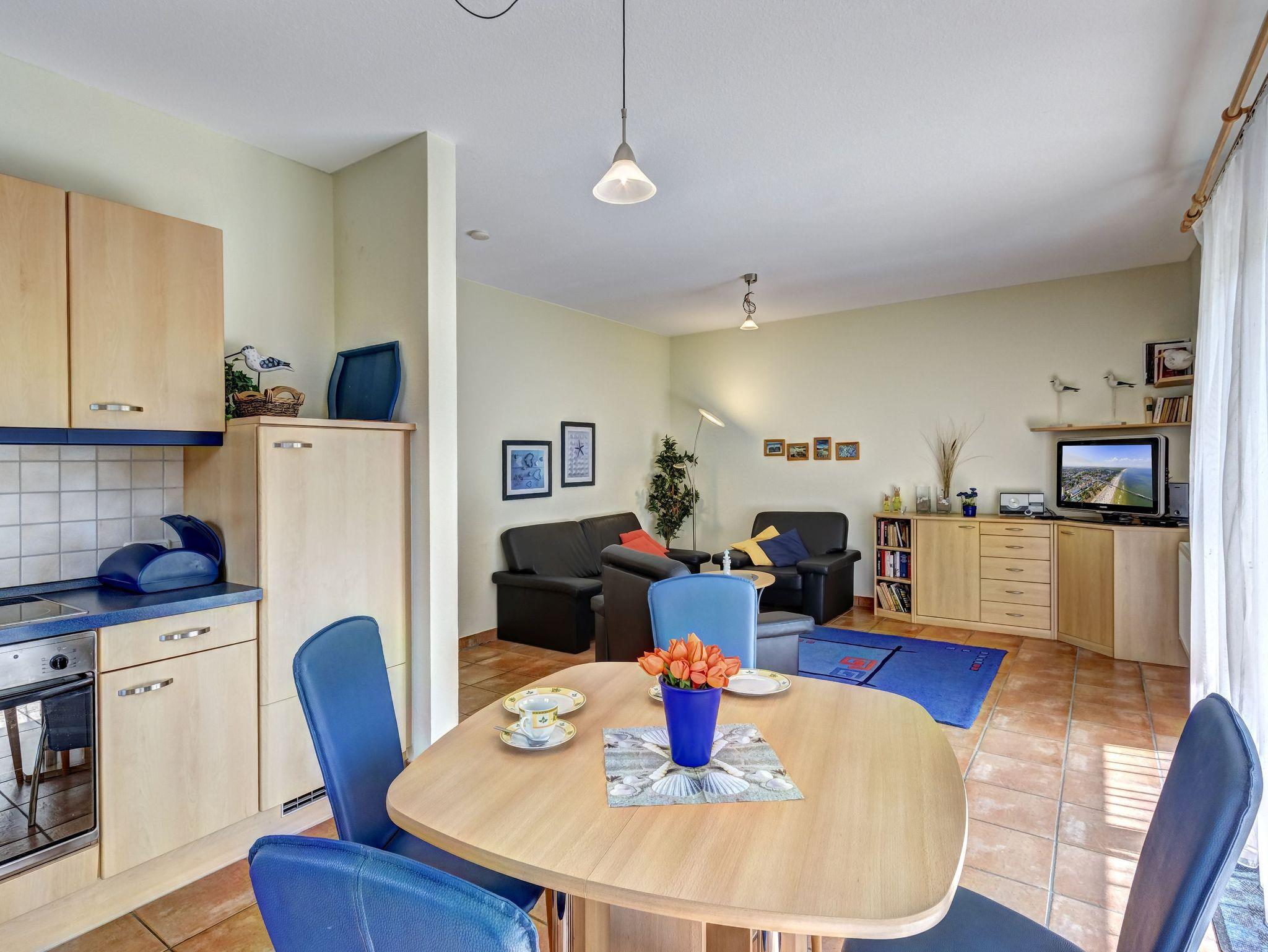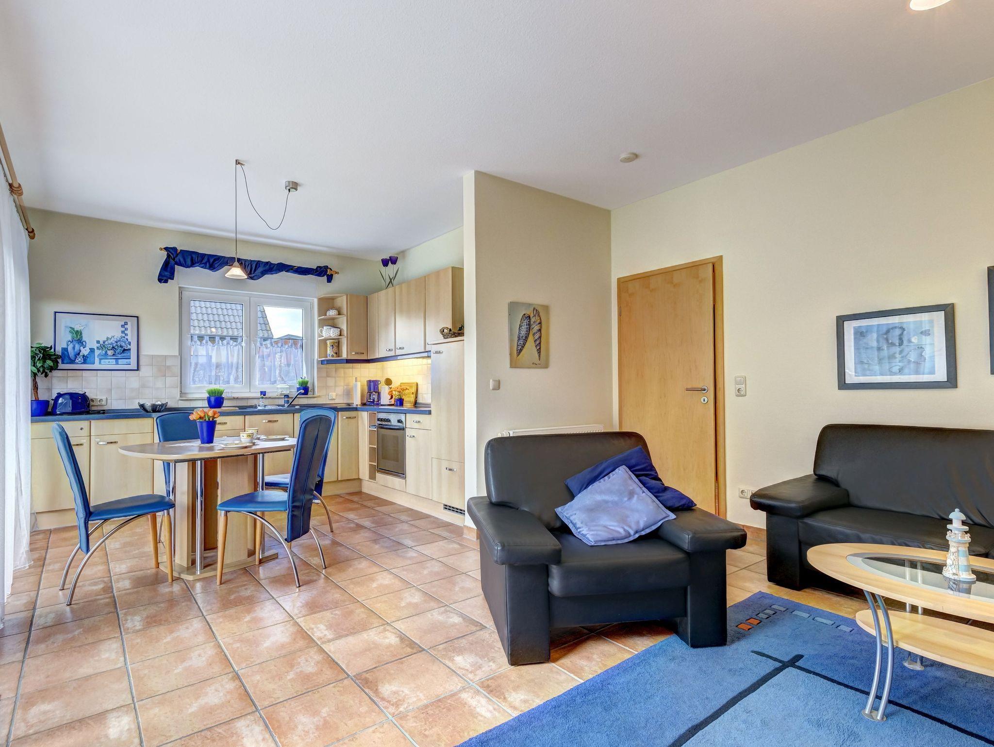 Die Ferienwohnung ist mit einem großzügigem Wohn-Essbereich im Erdgeschoss eines Mehrfamilienhauses ausgestattet.