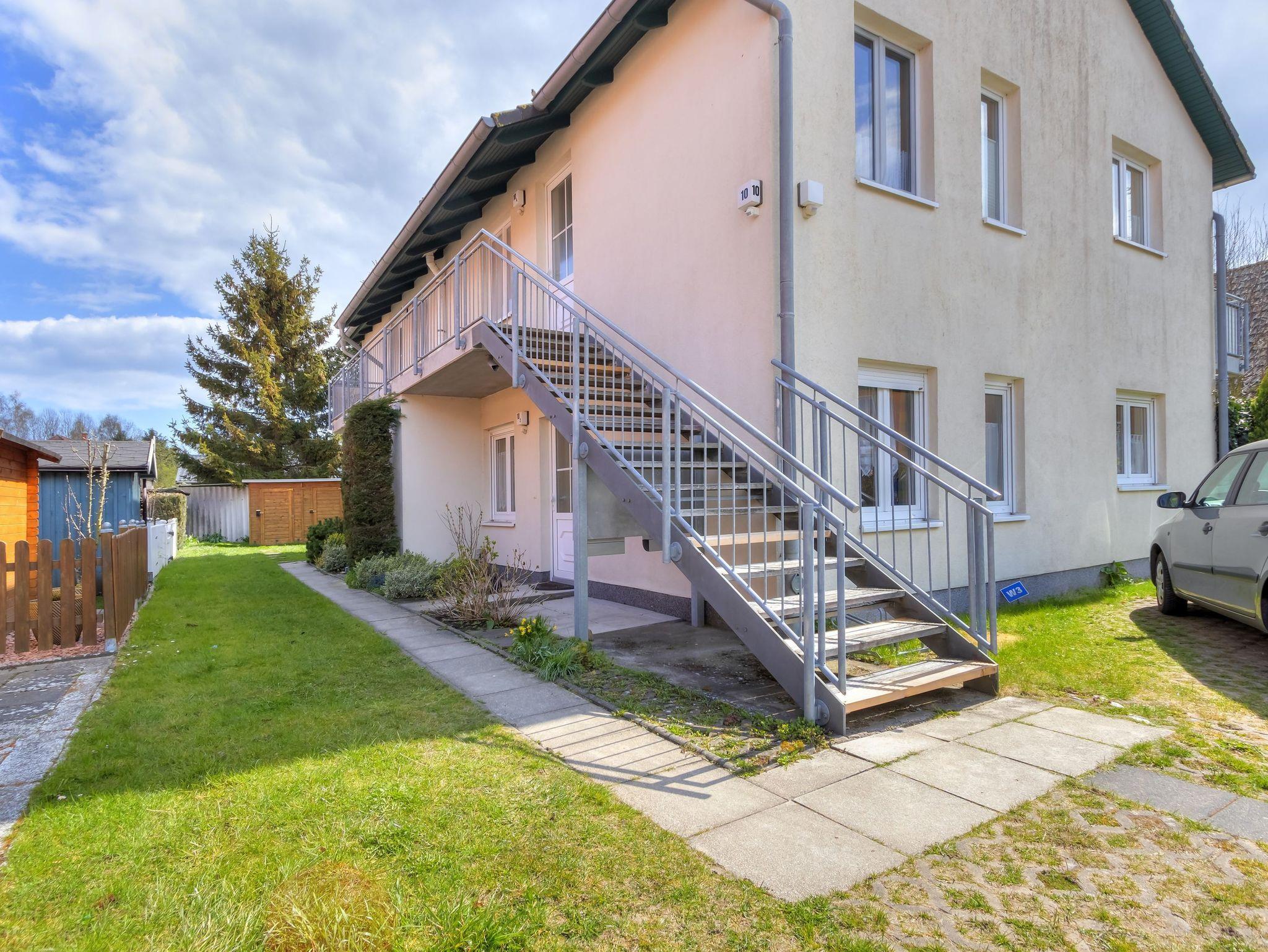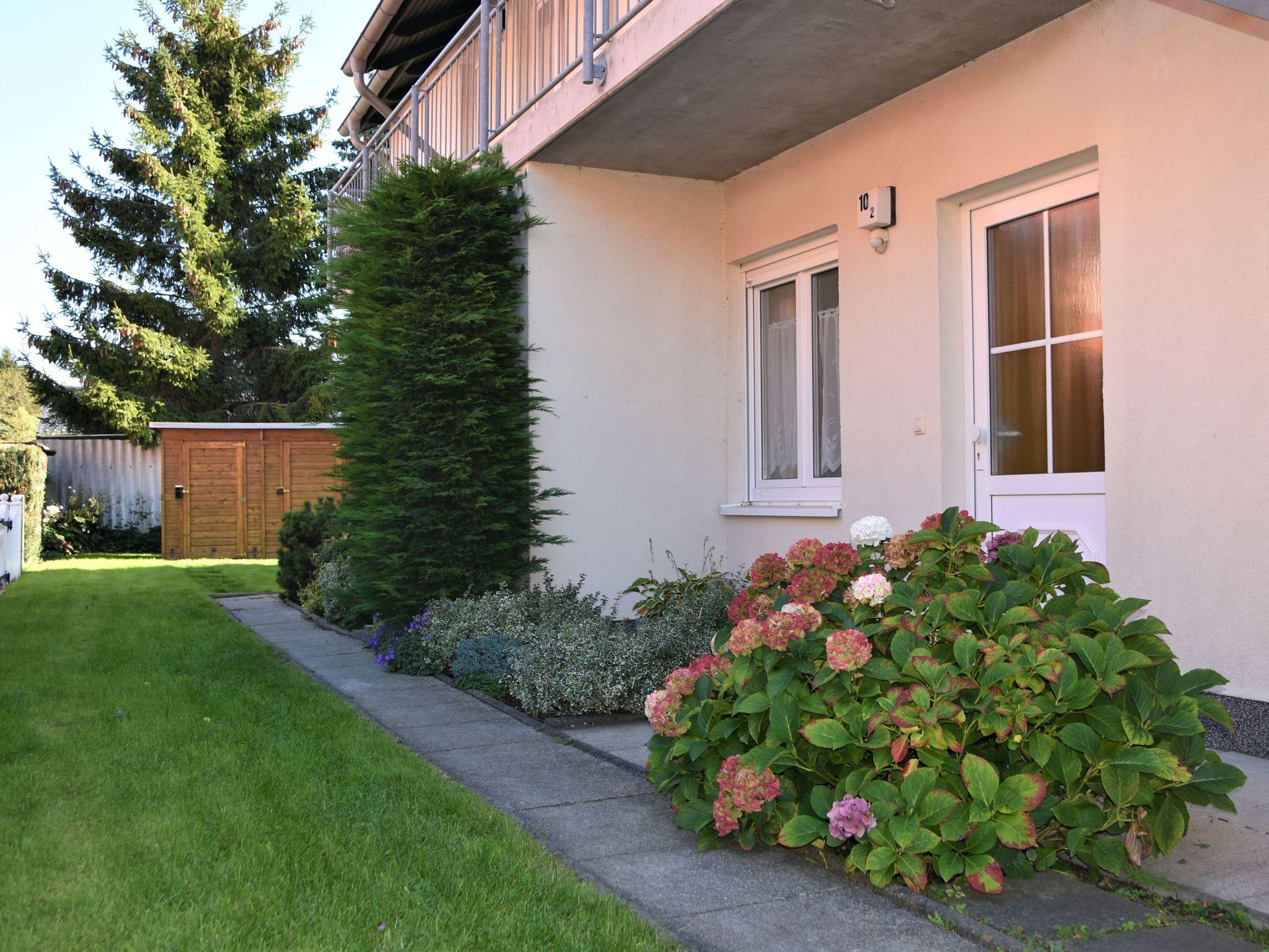 Sie befindet sich einer ruhigen Seitenstraße im Erdgeschoss einer Doppelhaushälfte.