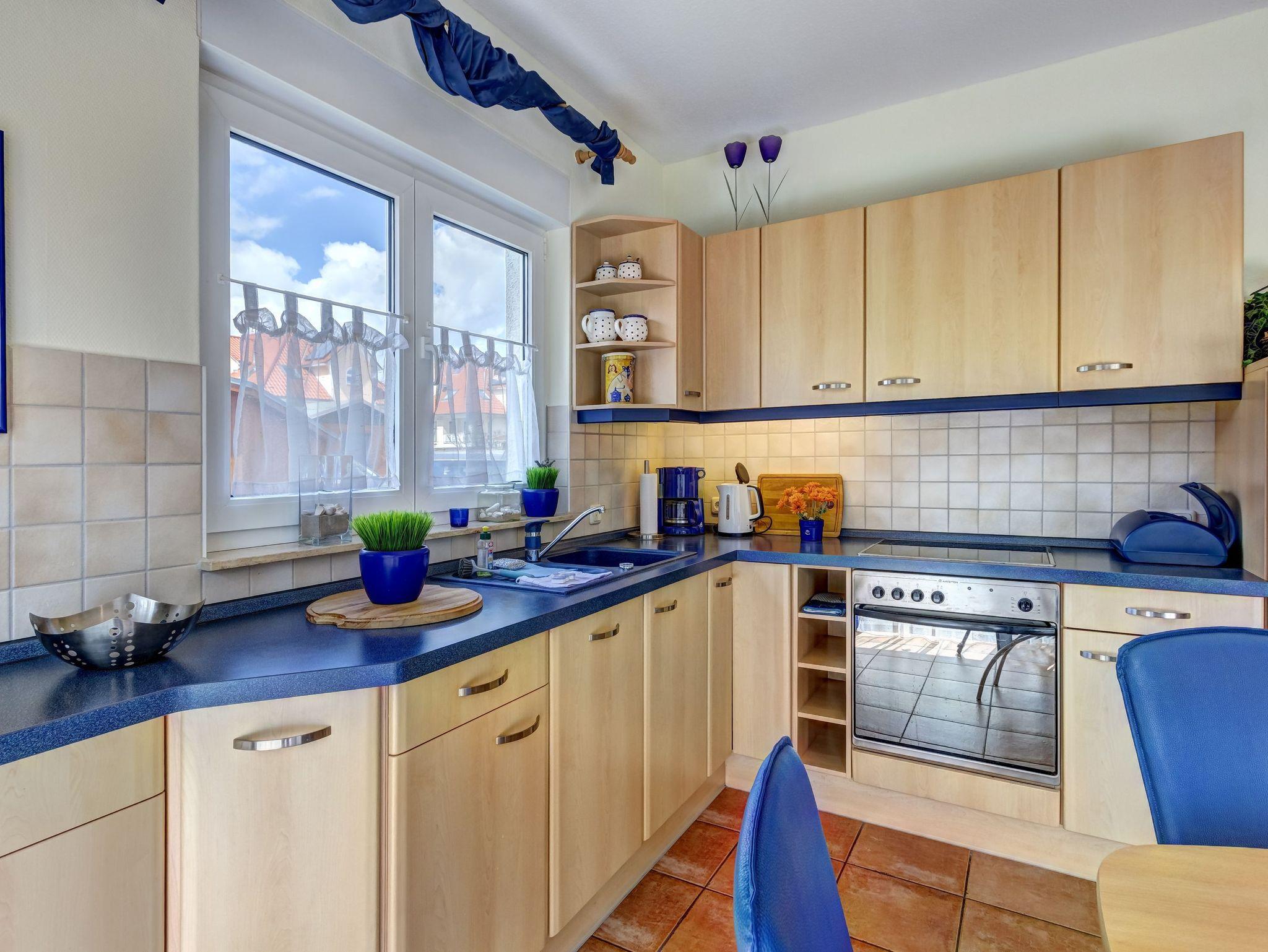 Die Küche ist mit allem Notwendigen ausgestattet: Kaffeemaschine, Wasserkocher, Toaster, Kühlschrank, Herd mit Cerankochfeld und vielem mehr.