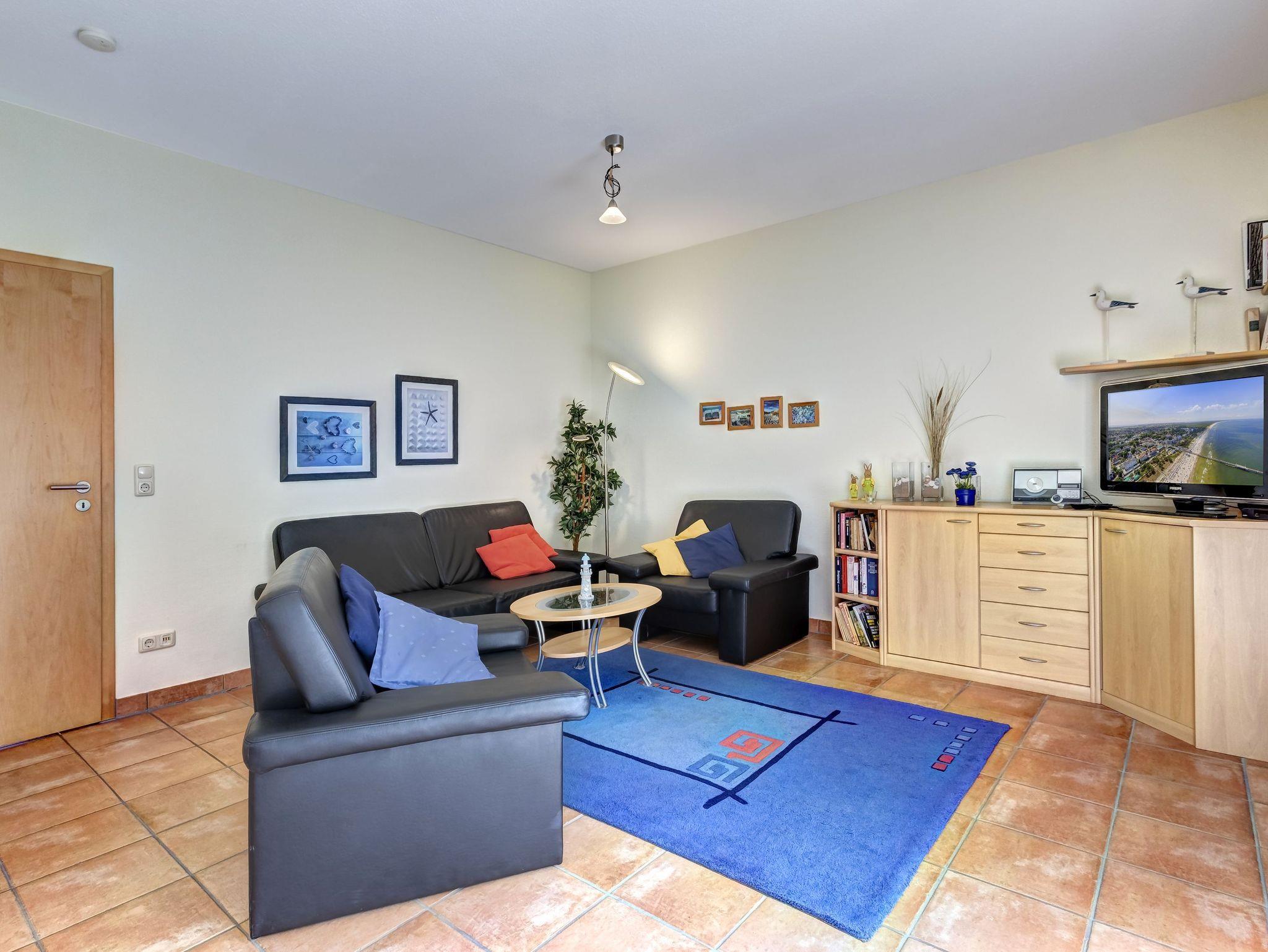 Im liebevoll eingerichteten Wohnzimmer finden Sie eine komfortable Sitzgarnitur und natürlich auch einen modernen Flachbild-TV. Für abwechslungsreiche Stunden bietet sich auch das Stöbern in einigen bereitliegenden Büchern oder das Spielen mit der Familie an.