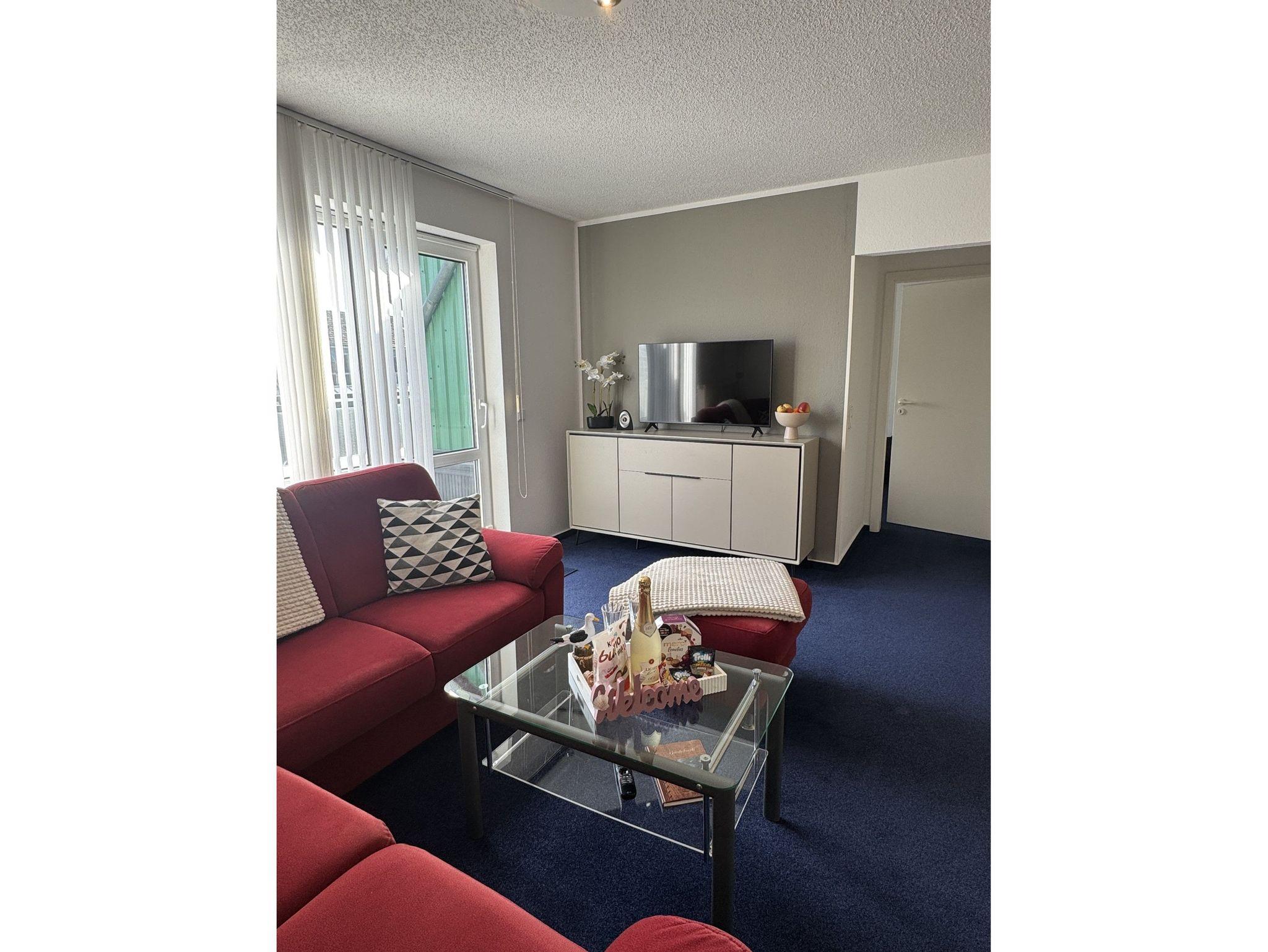 Im kombinierten Wohn- Esszimmer befindet sich neben dem gemütlichen Sofa und TV die Küchenzeile mit Cerankochfeld, Backofen, Spülmaschine, Kühlschrank mit Gefriermöglichkeit, Mikrowelle, Kaffeemaschine, Wasserkocher, Toaster und Essplatz. Die Wohnung verfügt über zwei Schlafzimmer mit Schrank und je einen Doppelbett (1x 180 x 200 / 1x 160 x 200).