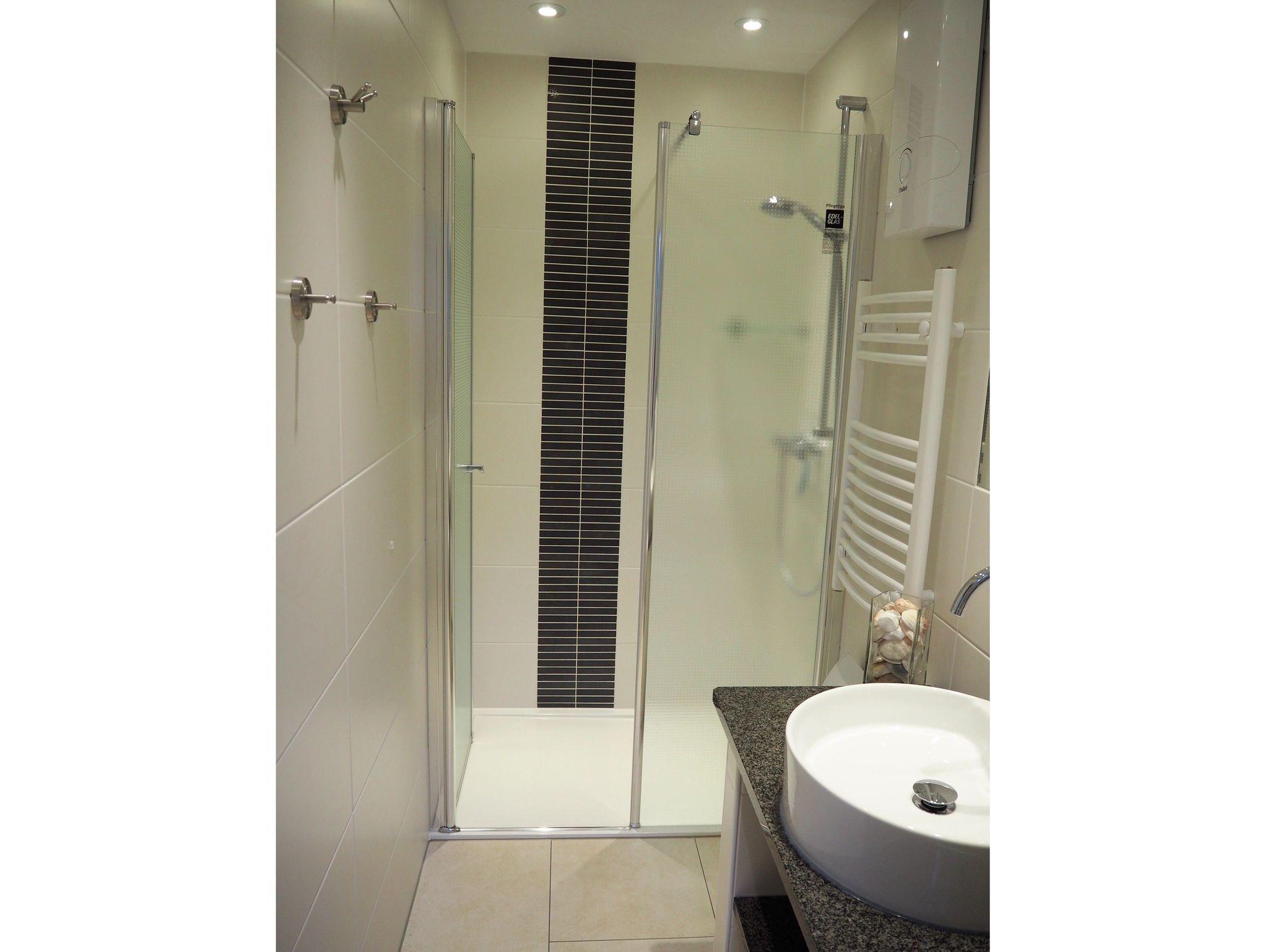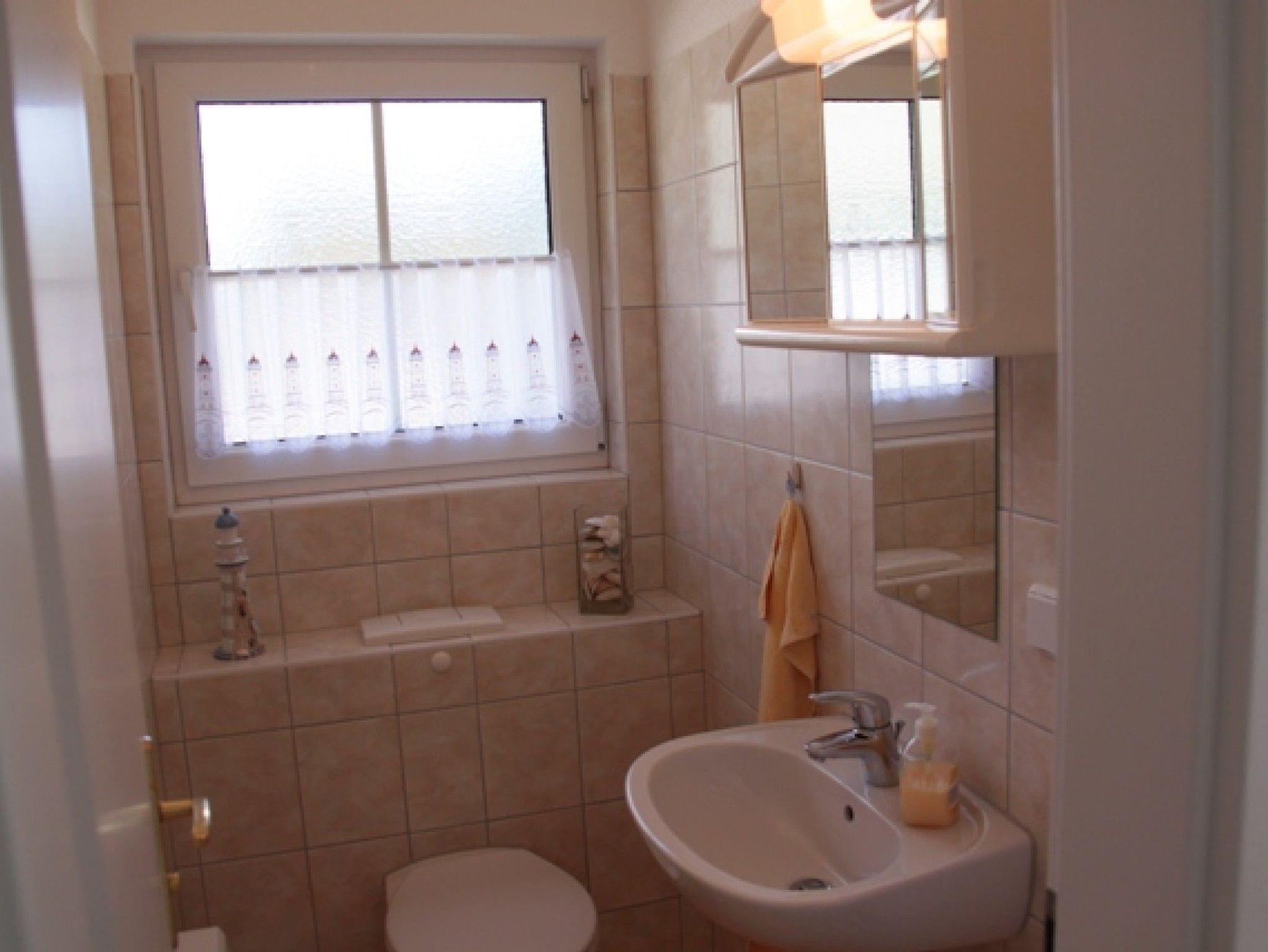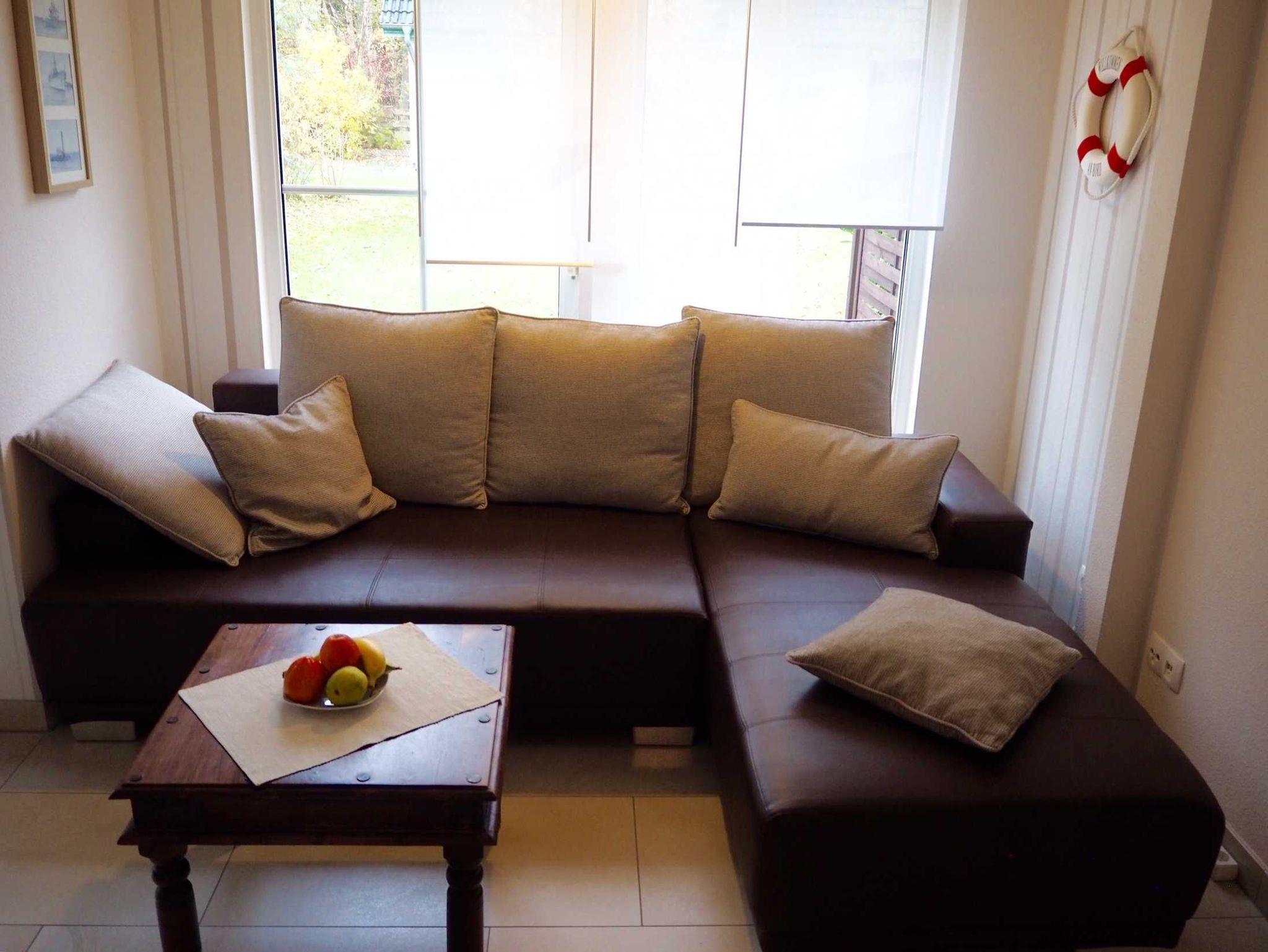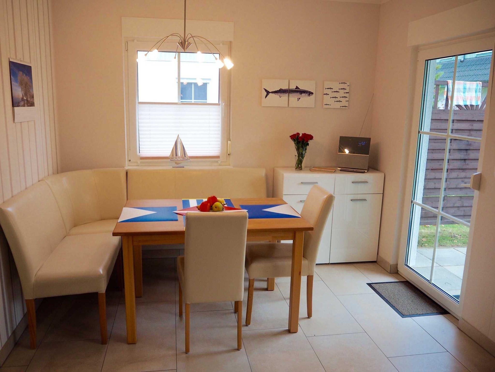 Die renovierte und gemütliche Doppelhaushälfte erstreckt sich über 2 Etagen und ist sehr geräumig und modern eingerichtet. Vom Eingangsbereich aus erreicht man das Bad mit Dusche und WC sowie die Küche mit angrenzendem Wohn-Ess-Bereich. Von hier gelangt man direkt auf die Sonnenterrasse. Im 1. Obergeschoss befinden sich die beiden Schlafzimmer und ein weiteres WC mit Waschbecken. Zum Ferienhaus gehören auch ein PKW-Stellplatz und ein Abstellraum.