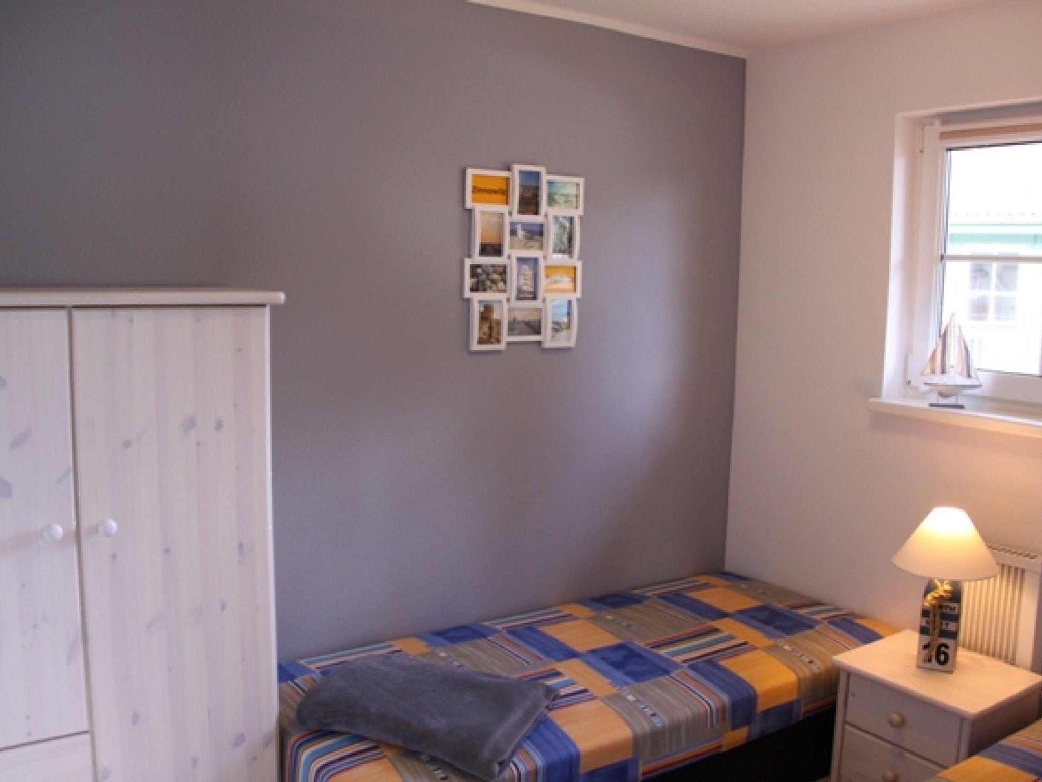 1 Schlafzimmer mit zwei Einzelbetten, Schrank und Fernseher