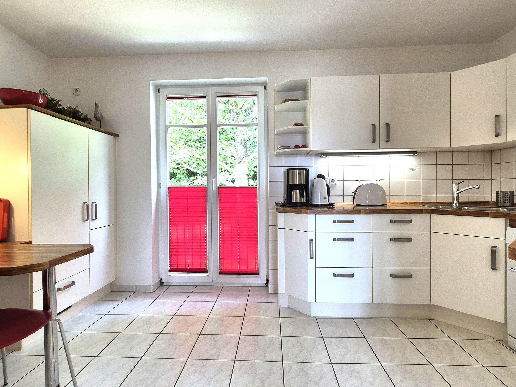• Küche (mit kleiner Sitzgelegenheit), Spülmasche, Elektroherd, Backofen, Mikrowelle, Kaffeemaschine, Espresso-Kaffepad-Maschine, Kühlschrank mit kleinem Eisfach, sowie einem Wasserkocher und einen Toaster.