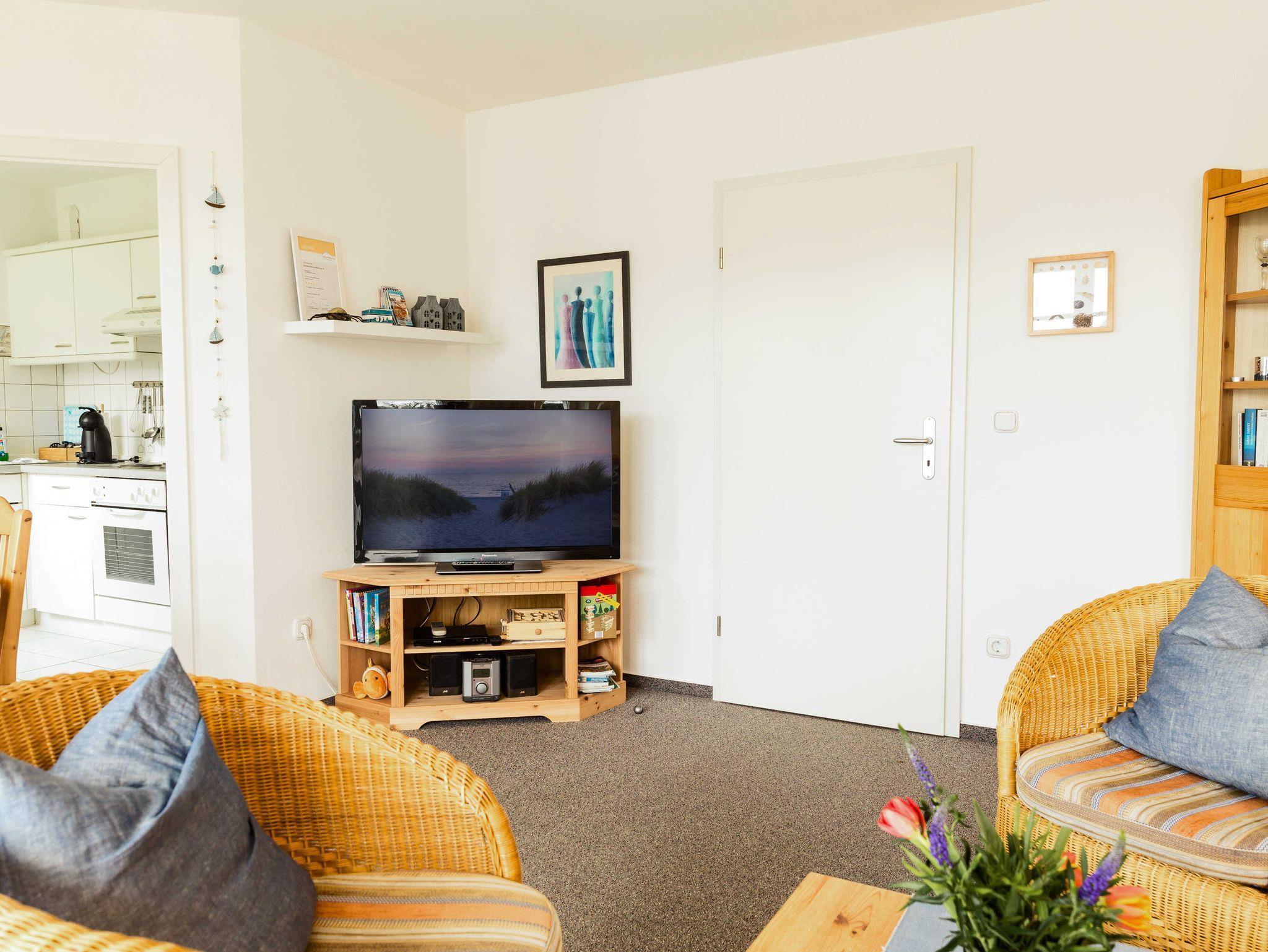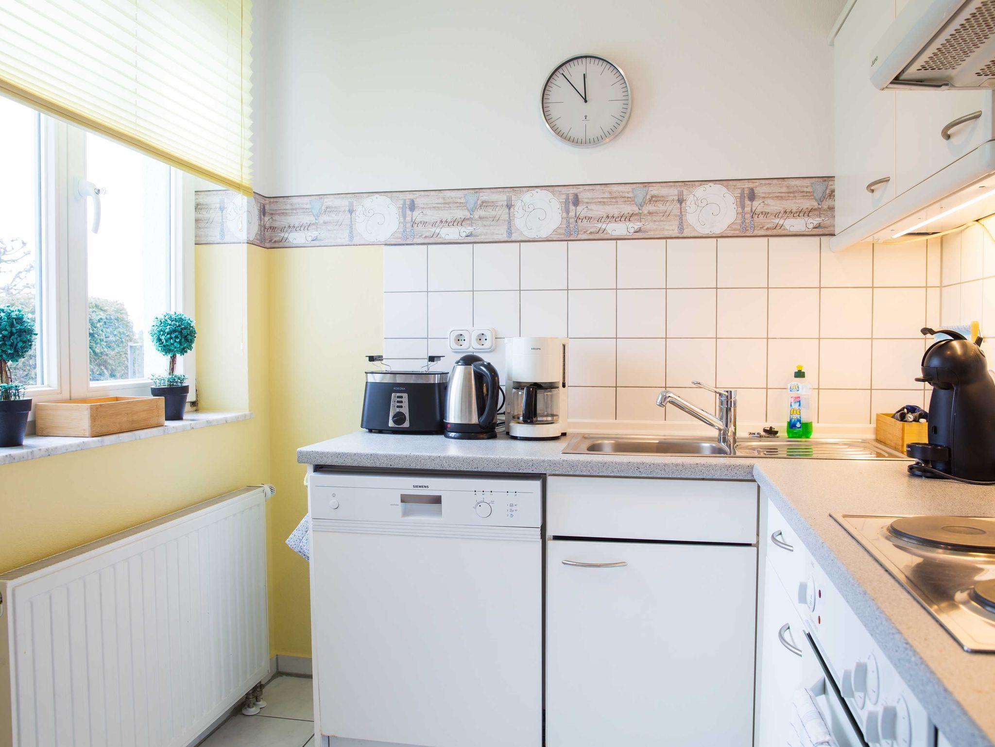 Die Wohnung ist hell und freundlich eingerichtet und verfügt über Sat-TV, und Radio. Eine gut ausgestattete Küche mit Geschirrspüler, vollständigem Geschirr, Küchengeräten, Kaffeemaschine, Wasserkocher und Toaster sind vorhanden. Schlafzimmer mit Doppelbett für 2 Personen; Wohnzimmer mit Schlafsofa für 2 Personen; Kinderbett kann gemietet werden.