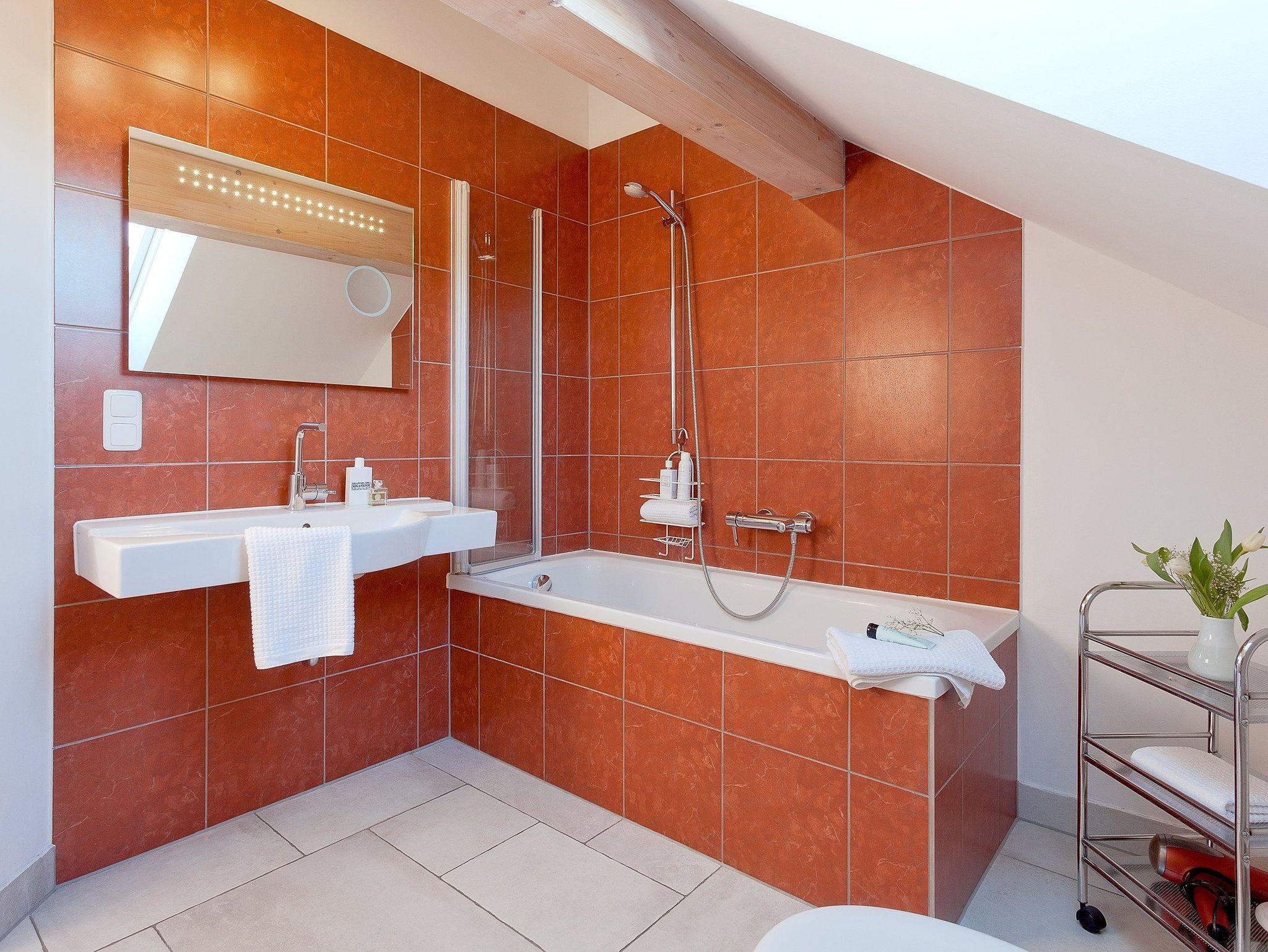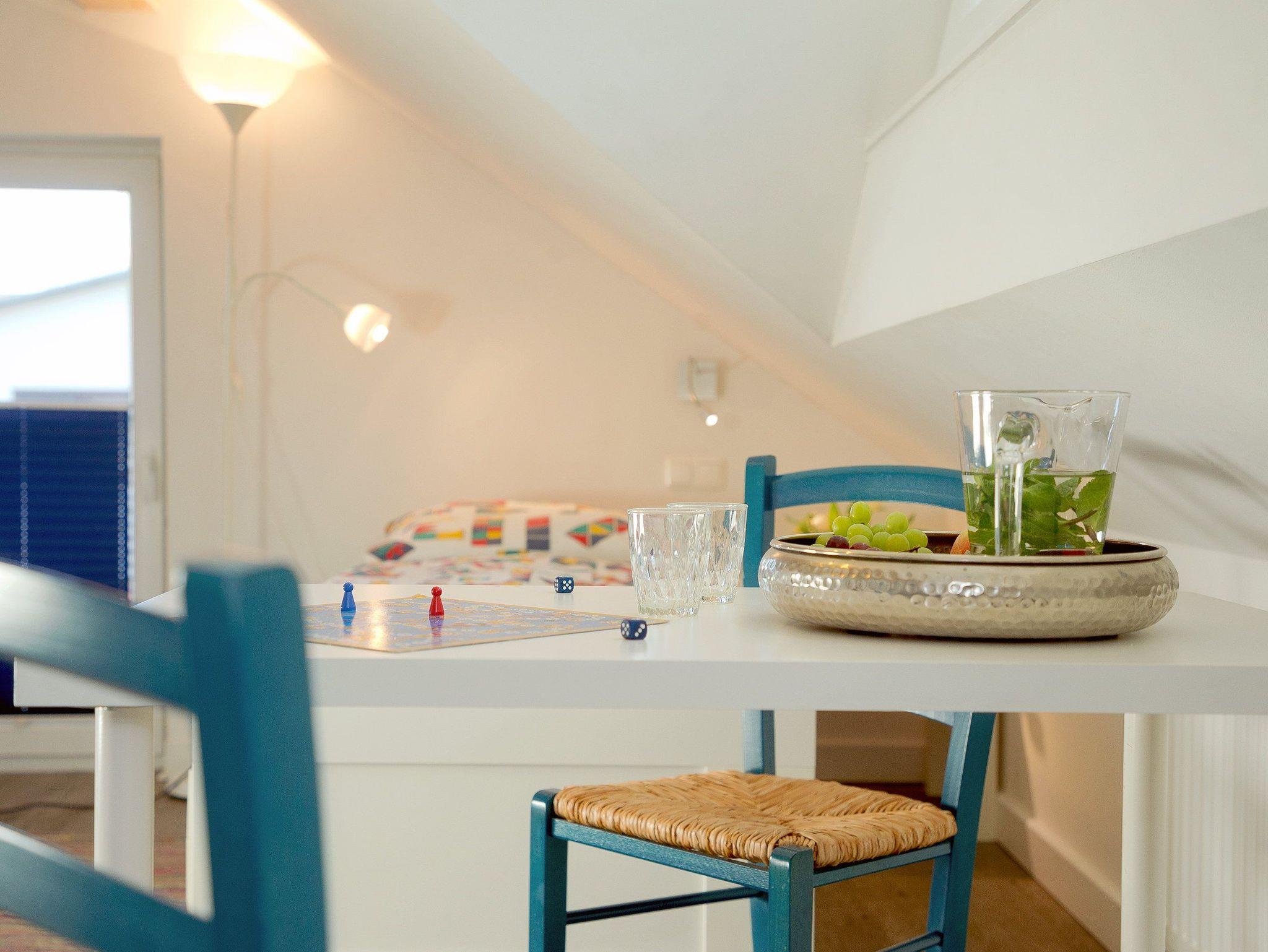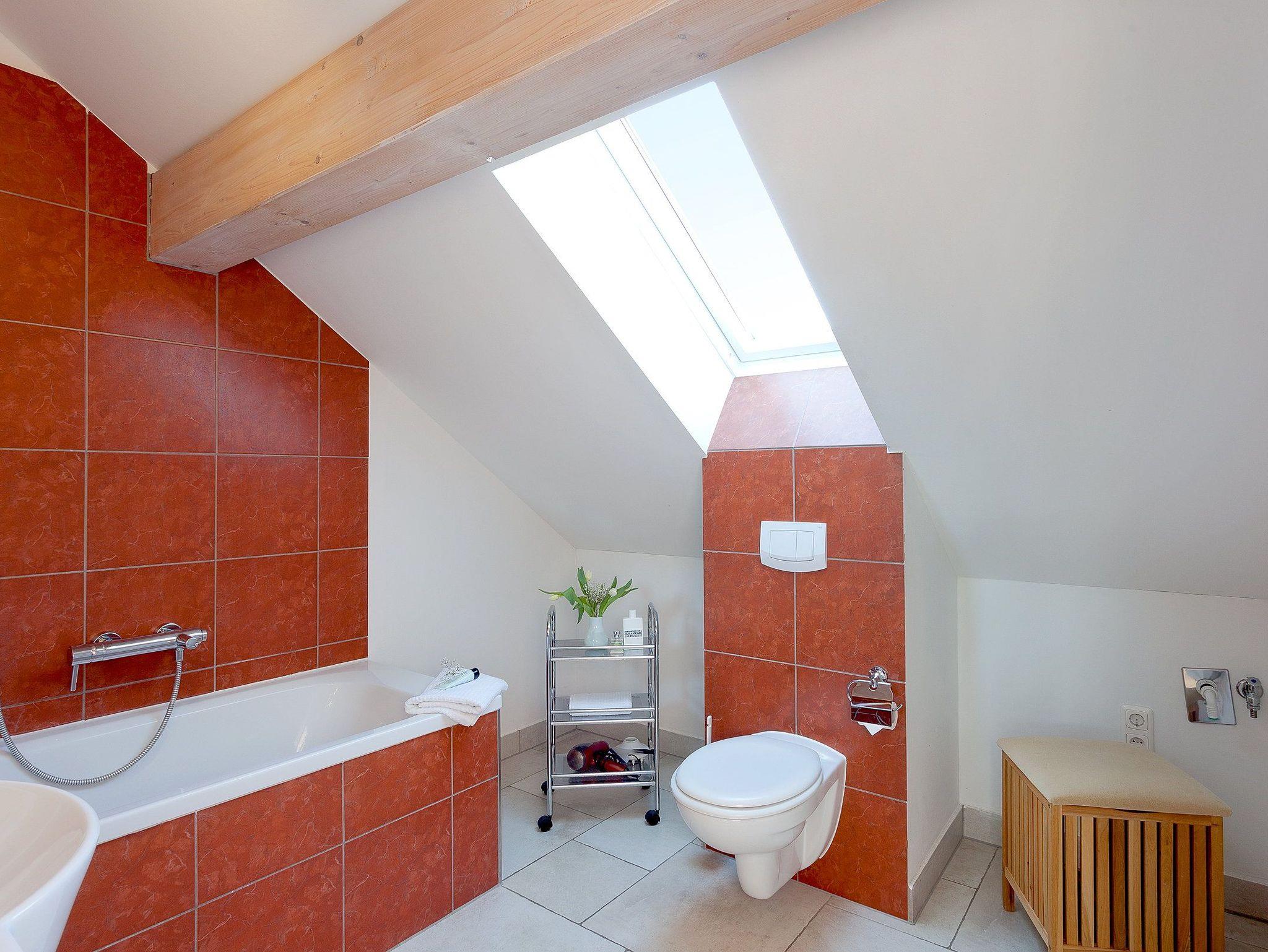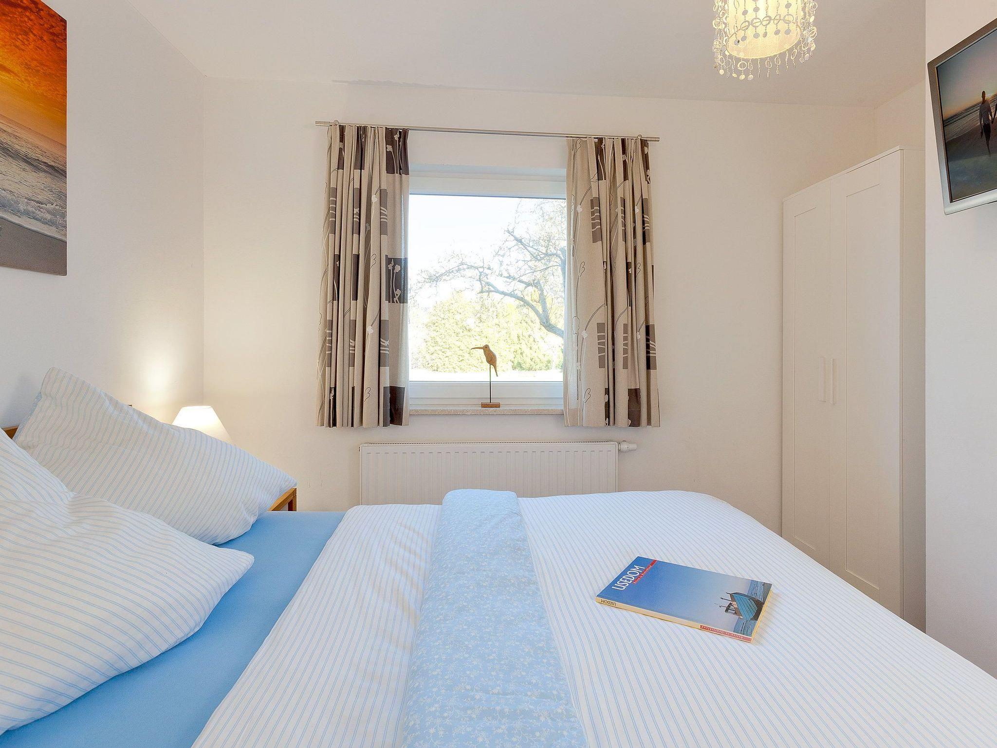 Im Obergeschoss befinden sich zwei weitere Schlafzimmer sowie ein Badezimmer mit Badewanne. Beide Schlafzimmer verfügen über einen Flat-TV. Während eines der Zimmer mit einem Doppelbett (160 × 200 cm) ausgestattet ist, bietet das zweite Schlafzimmer zwei Einzelbetten (je 80 × 200 cm), einen Schreibtisch und ausreichend Stauraum ideal als Kinder-, Spiel- oder Jugendzimmer. Eine Kleinkindausstattung mit Babyreisebett und Hochstuhl kann bei Bedarf kostenfrei hinzugebucht werden.