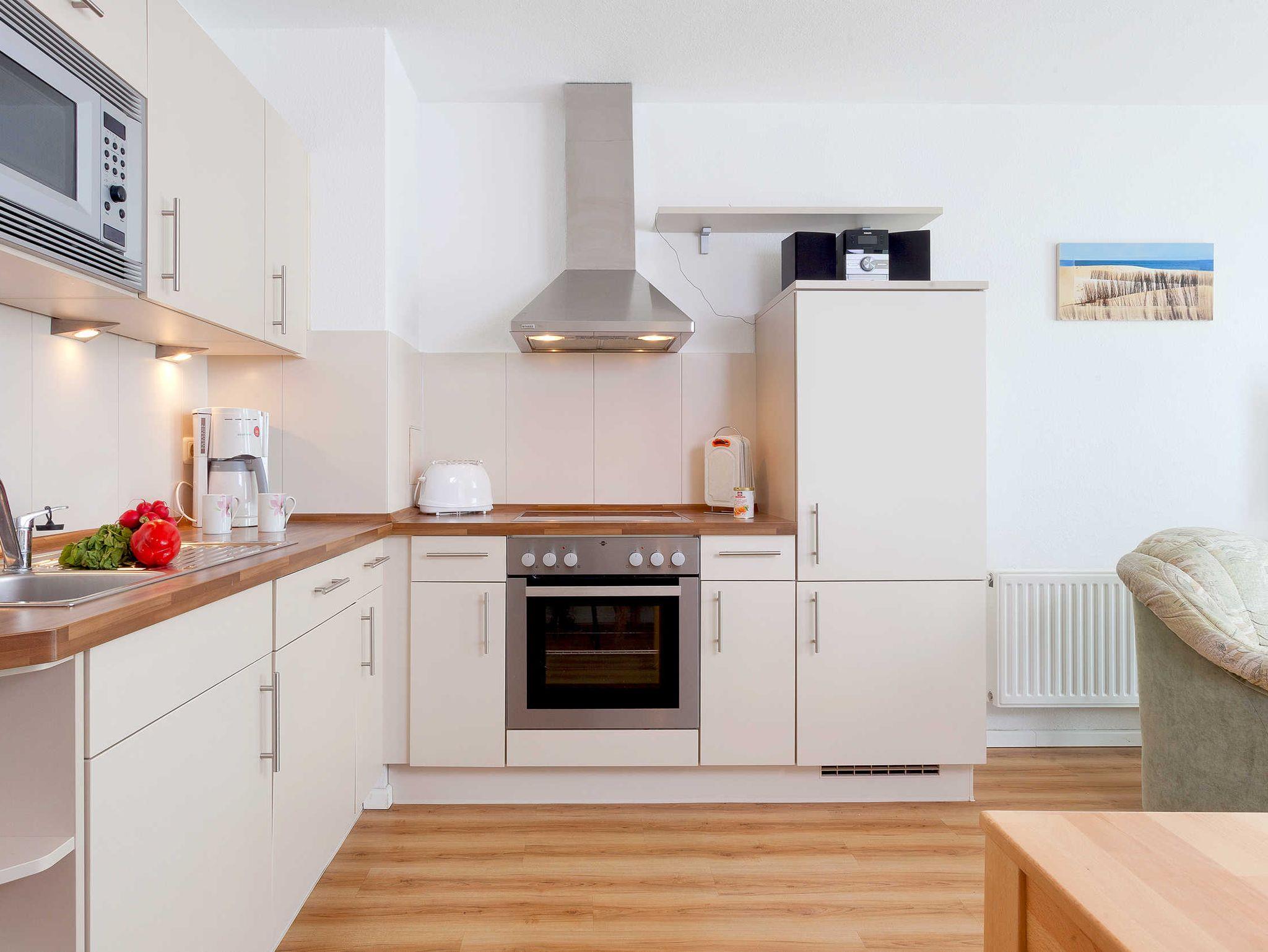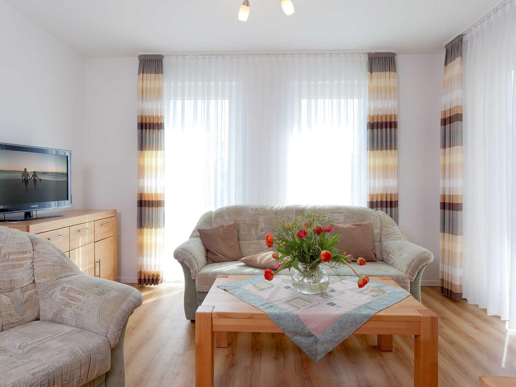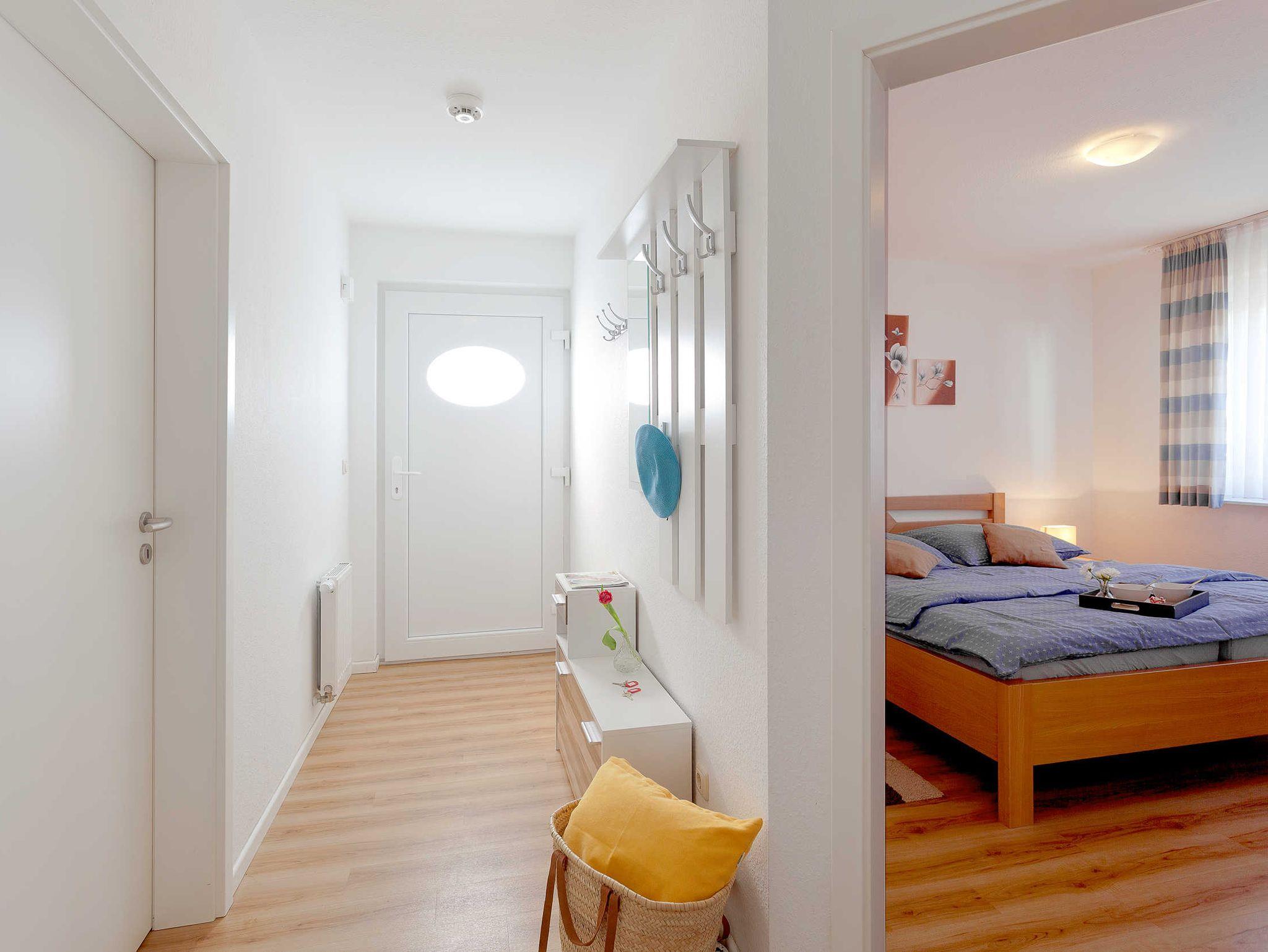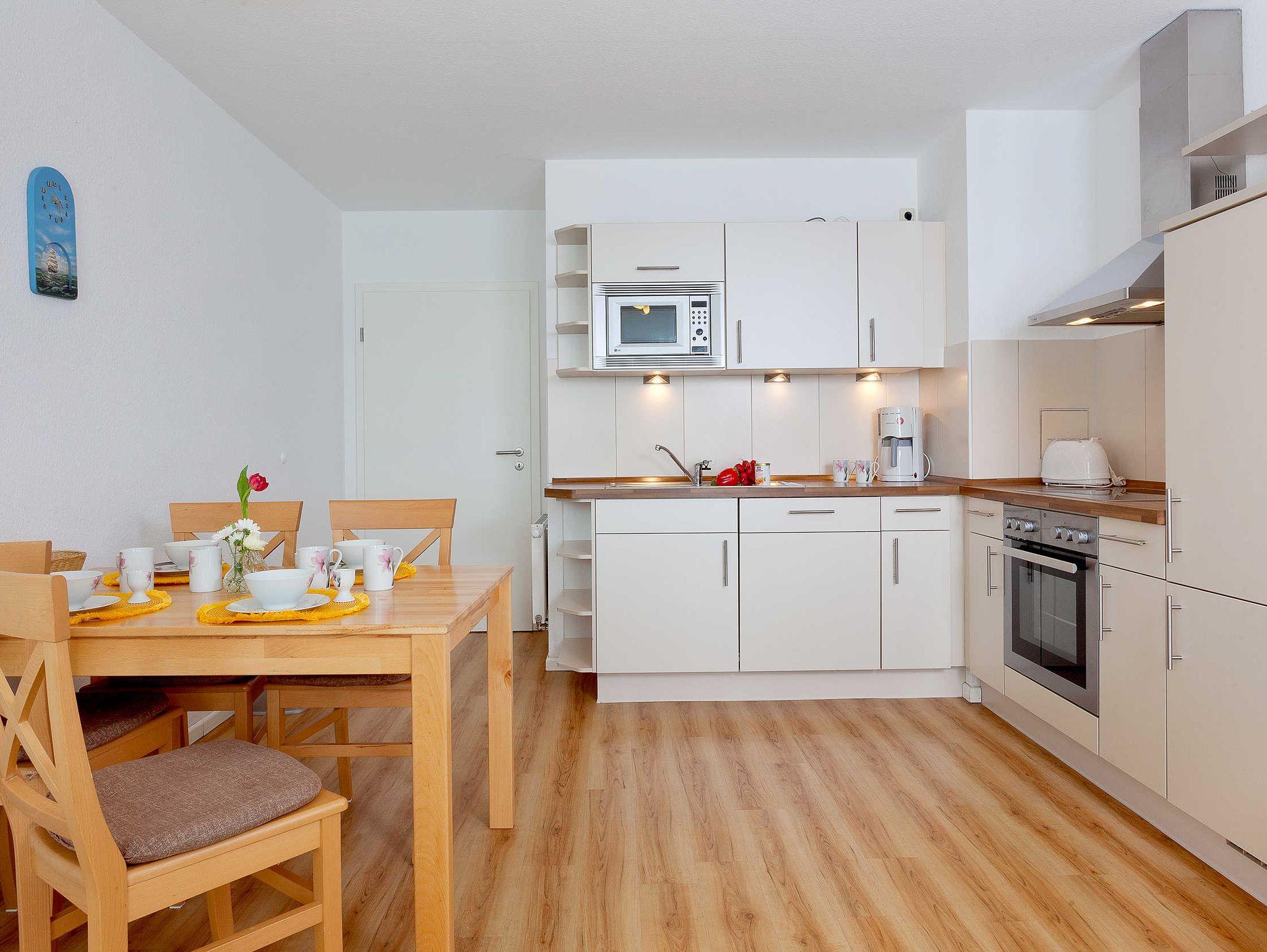 Diese helle und moderne Ferienwohnung kann bis zu 4 Personen beherbergen. Auf einer Wohnfläche von circa 65 m² befinden sich zwei Schlafzimmer, ein Wohnzimmer mit offener Küche, ein Bad und eine Terrasse.