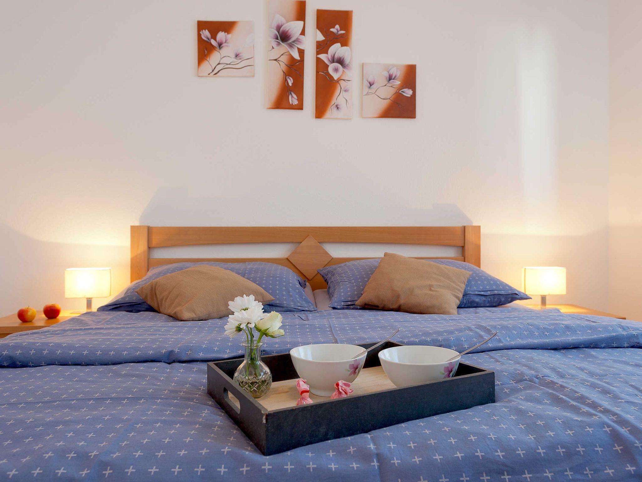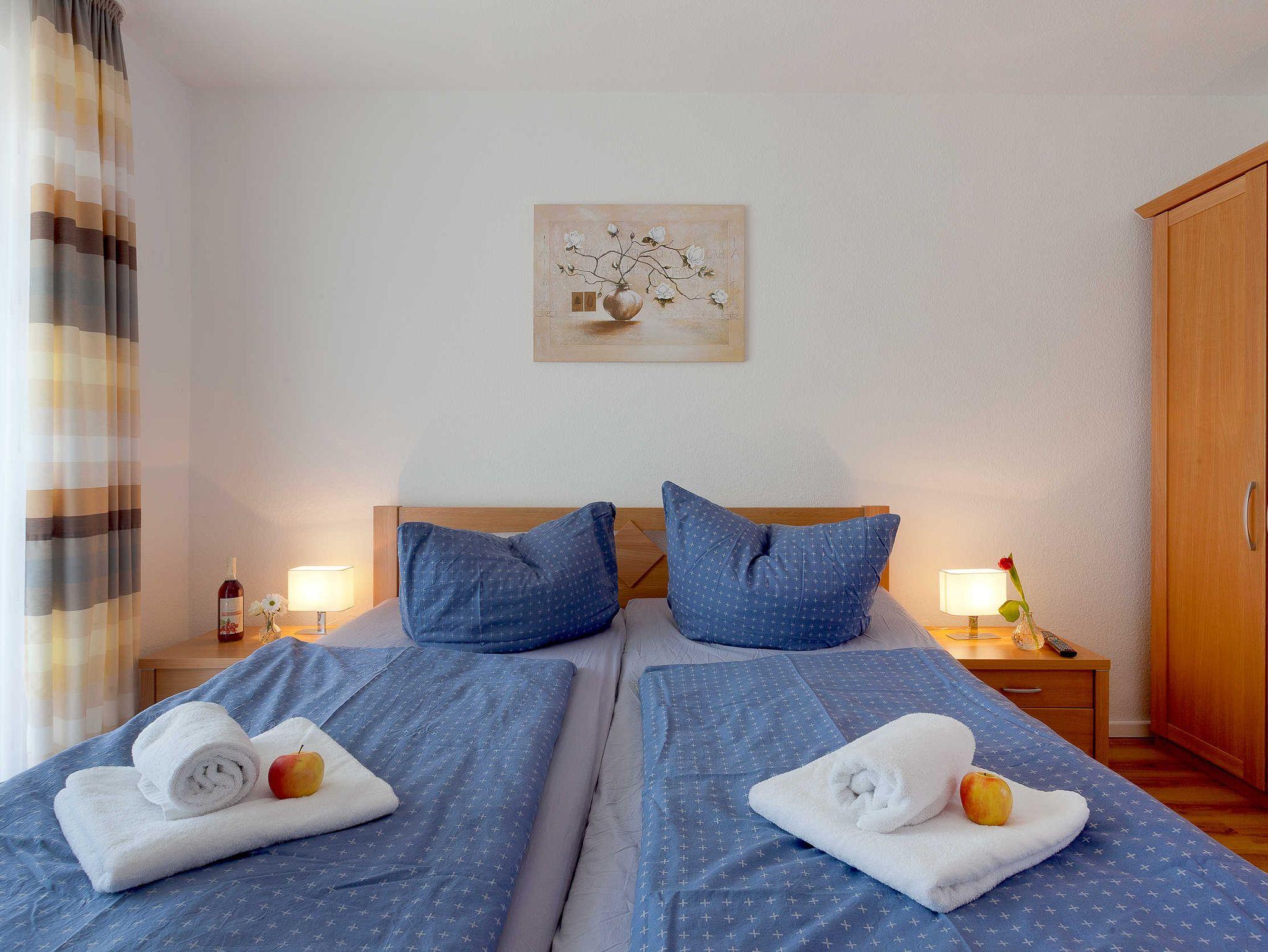 Das Wohn- und Esszimmer mit Fernseher und integrierter Küche bietet einen perfekten Raum um sich zusammen in der Wohnung zu entspannen. Die zwei Schlafzimmer sind jeweils mit einem gemütlichen Doppelbett ausgestattet. Das geräumige Badezimmer ist mit einer Dusche und einem WC ausgestattet. Auf der Terrasse können Sie Ihren Tag gemütlich ein- und ausklingen lassen. Ein PKW-Stellplatz wird Ihnen natürlich zur Verfügung gestellt.