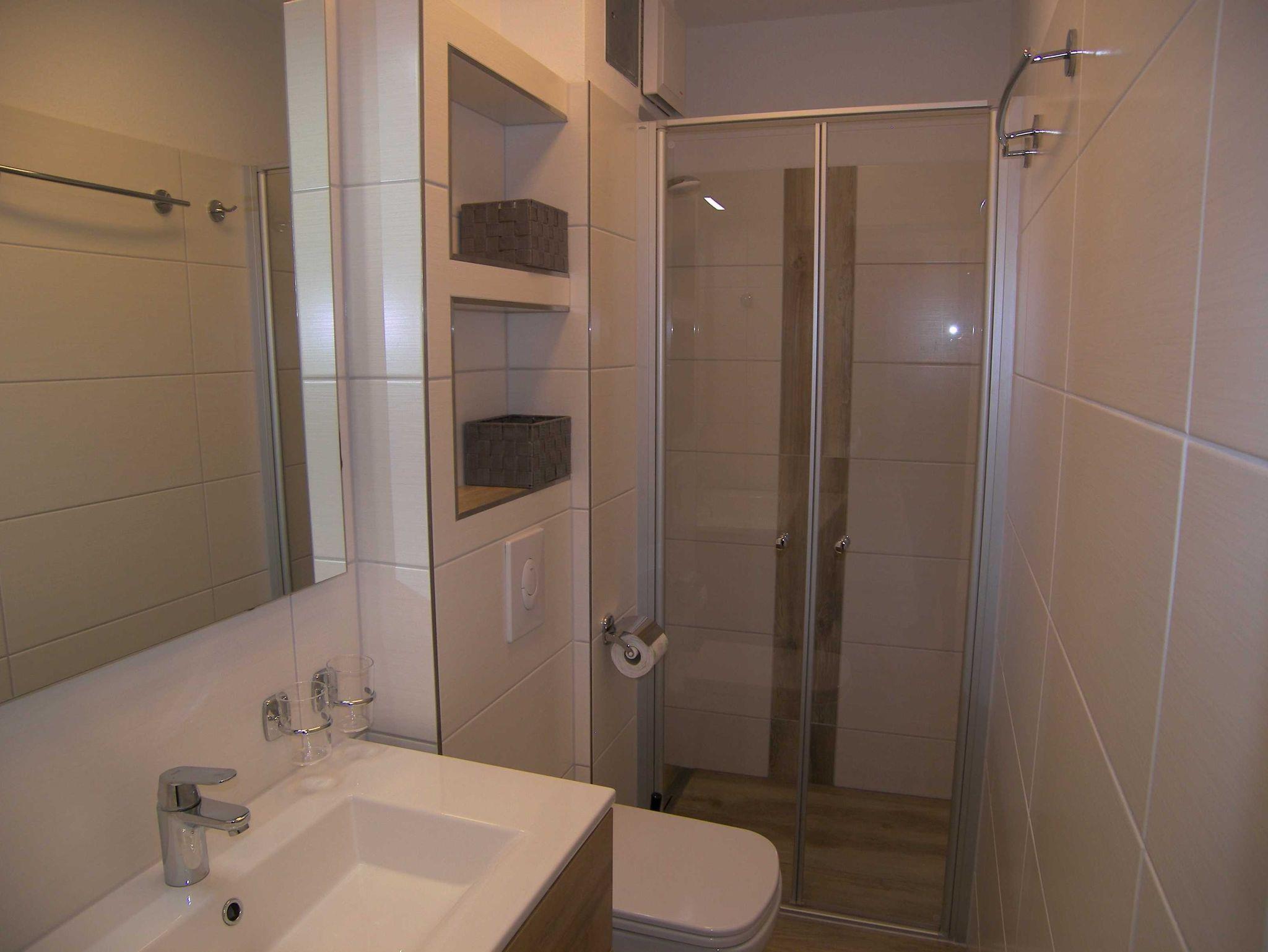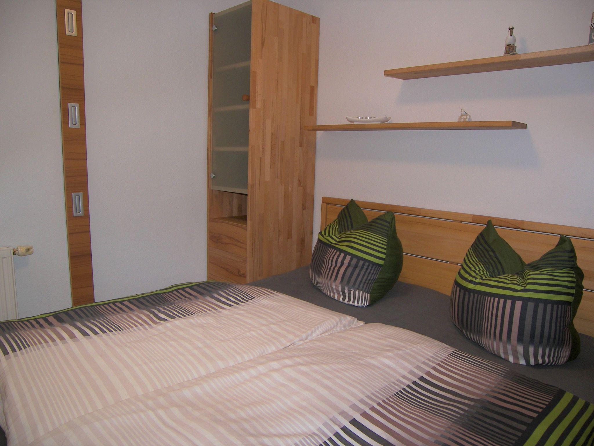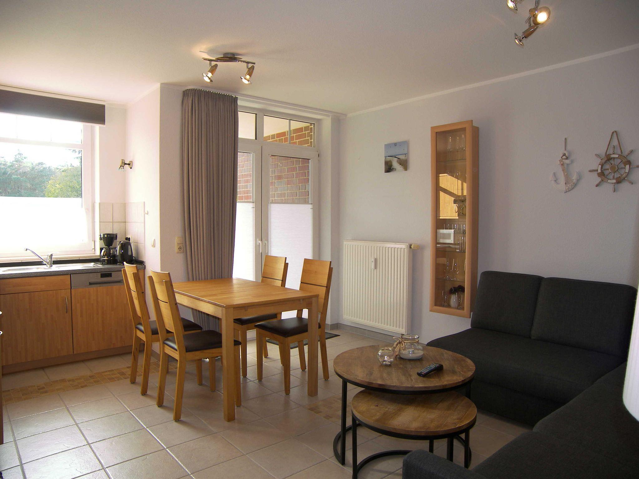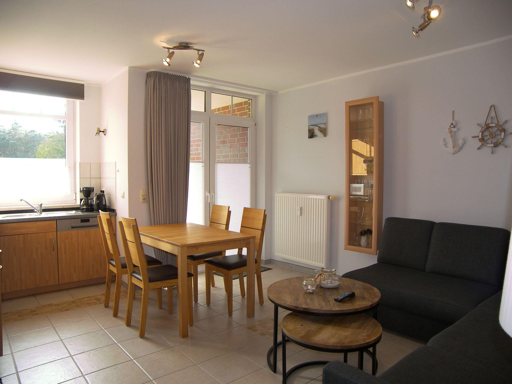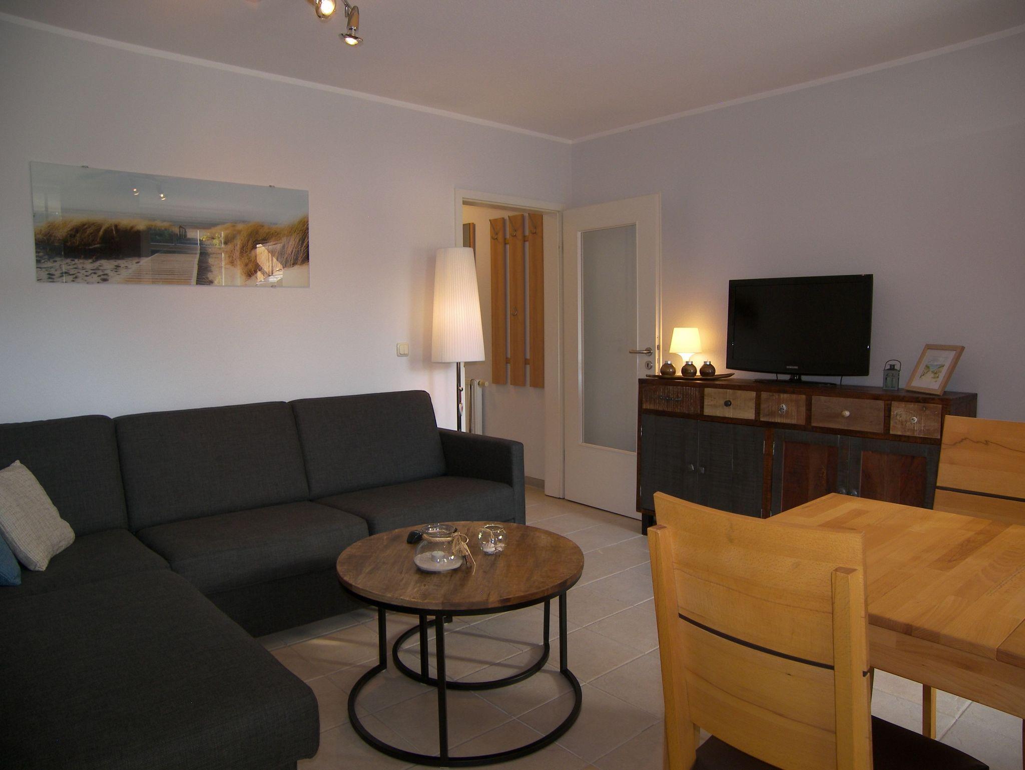Die komfortable 2-Raum-Ferienwohnung mit Terrasse ist ca. 38qm groß und verfügt über ein gemütliches Wohnzimmer mit einer komfortablen, hochwertigen Schlafcouch mit Bettkasten und einer Liegefläche von ca. 145cmx200cm, sowie Flat-TV und angrenzender offener Küche mit Backofen, Cerankochfeld, Kühlschrank, Geschirrspüler, Mikrowelle, Toaster, Wasserkocher & Kaffeemaschine. Das separate Schlafzimmer ist mit einem Doppelbett und viel Stauraum für Ihre Urlaubsgarderobe ausgestattet. Das moderne Bad verfügt über eine ebenerdige Dusche/WC und einen Haartrockner. Ein PKW-Stellplatz steht Ihnen kostenfrei zur Verfügung sowie die Nutzung des Schwimmbades und des Saunabereiches im Haus Roland.