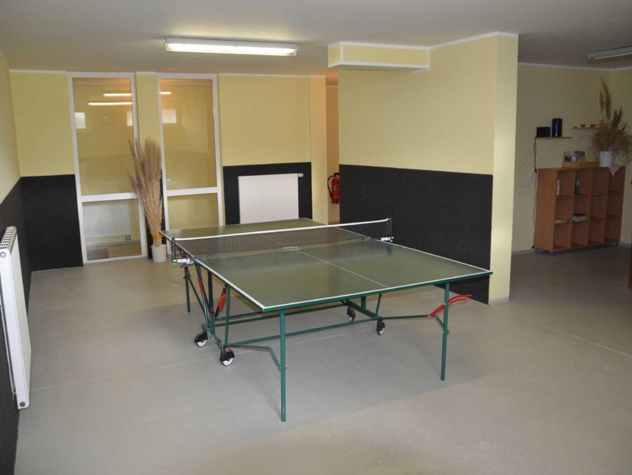 Ein Tischtennisraum und eine Münzwaschmaschine befinden sich im Erdgeschoss des Hauses.