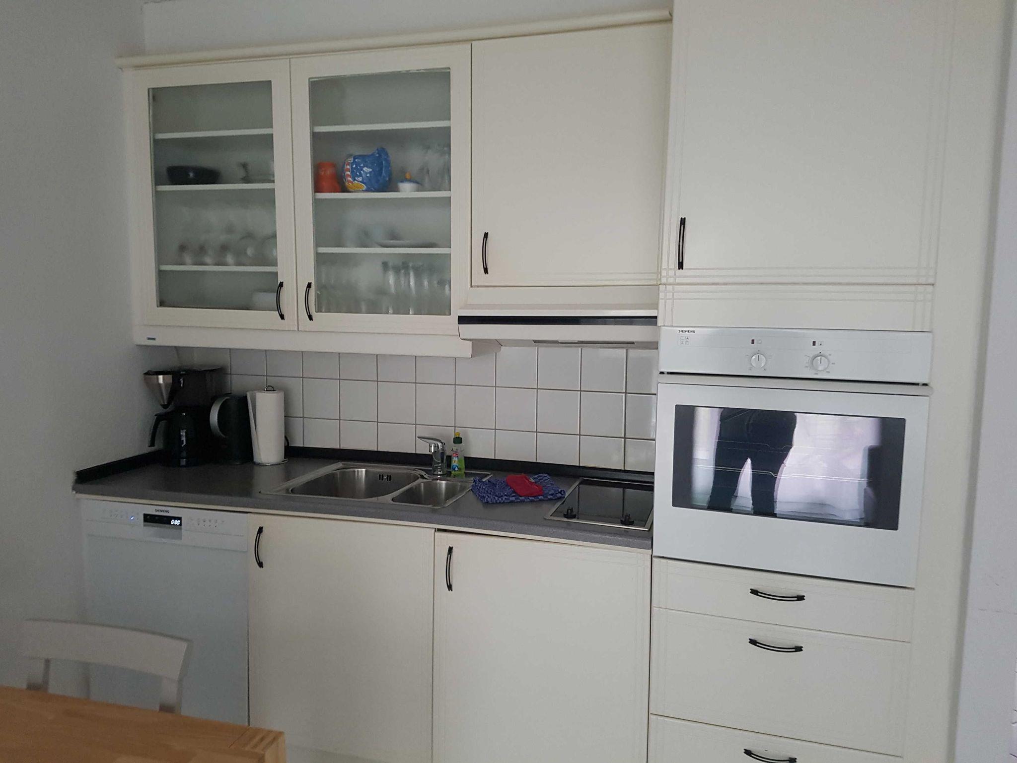 1 Wohnzimmer mit Ess- und Küchenbereich mit Schlafcouch.Jetzt auch mit Geschirrspüler