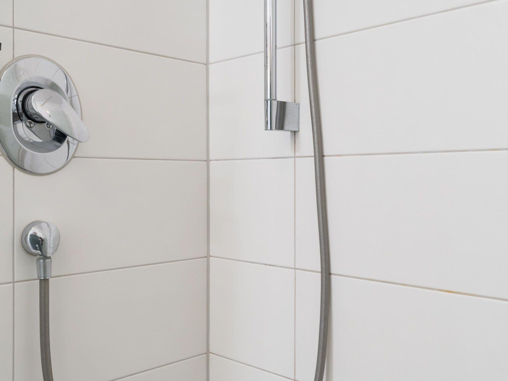 Das Badezimmer verfügt über eine Dusche (ebenerdig) und WC.