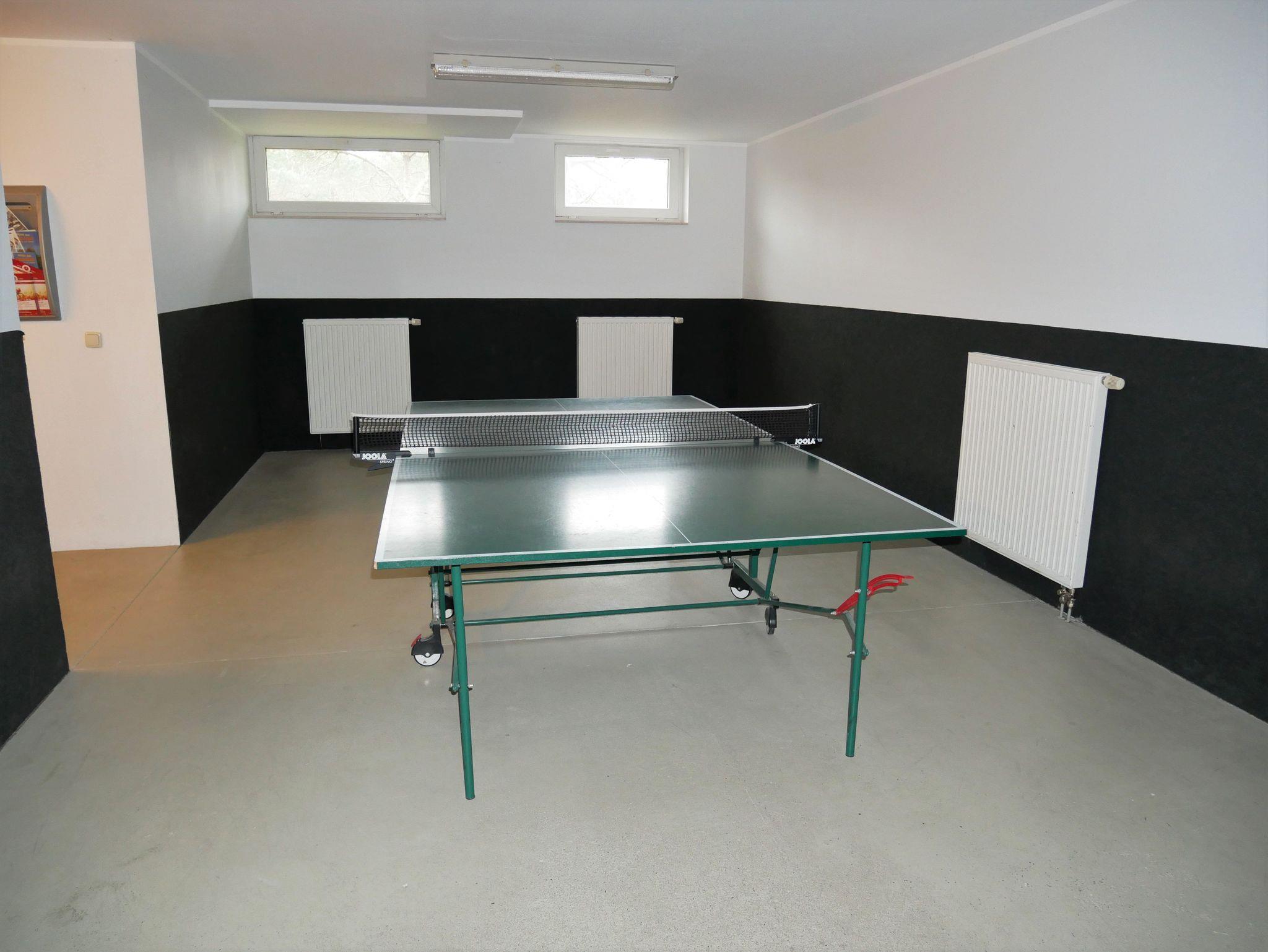 Die Ferienwohnung befindet sich im 1. Obergeschoß des Hauses. Ein abschließbarer Gemeinschaftsfahrradkeller befindet sich im Keller des Hauses mit Waschmaschine und Trockner sowie einen Tischtennisraum. Im Nebenhaus befindet sich das Schwimmbad mit Sauna und Ruheraum.