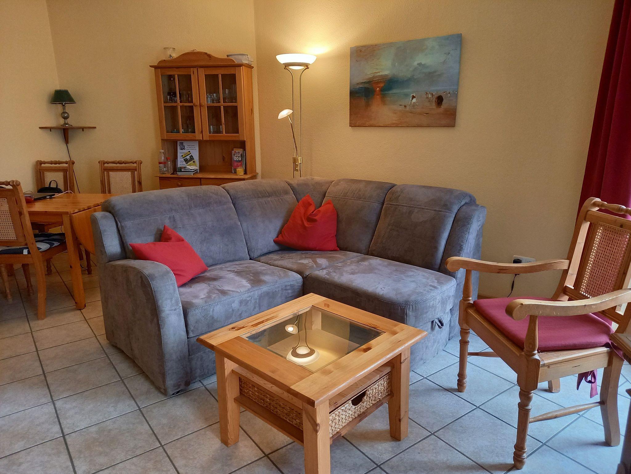 Neben dem Wohnzimmer mit integrierter Küche finden Sie das Schlafzimmer, ausgestattet mit einem Doppelbett. Sollten Sie mit einem Kleinkind anreisen, so steht Ihnen kostenfrei ein Kinderreisebett zur Verfügung. Die Bettwäsche hierfür bringen Sie im Bedarfsfall bitte mit.
