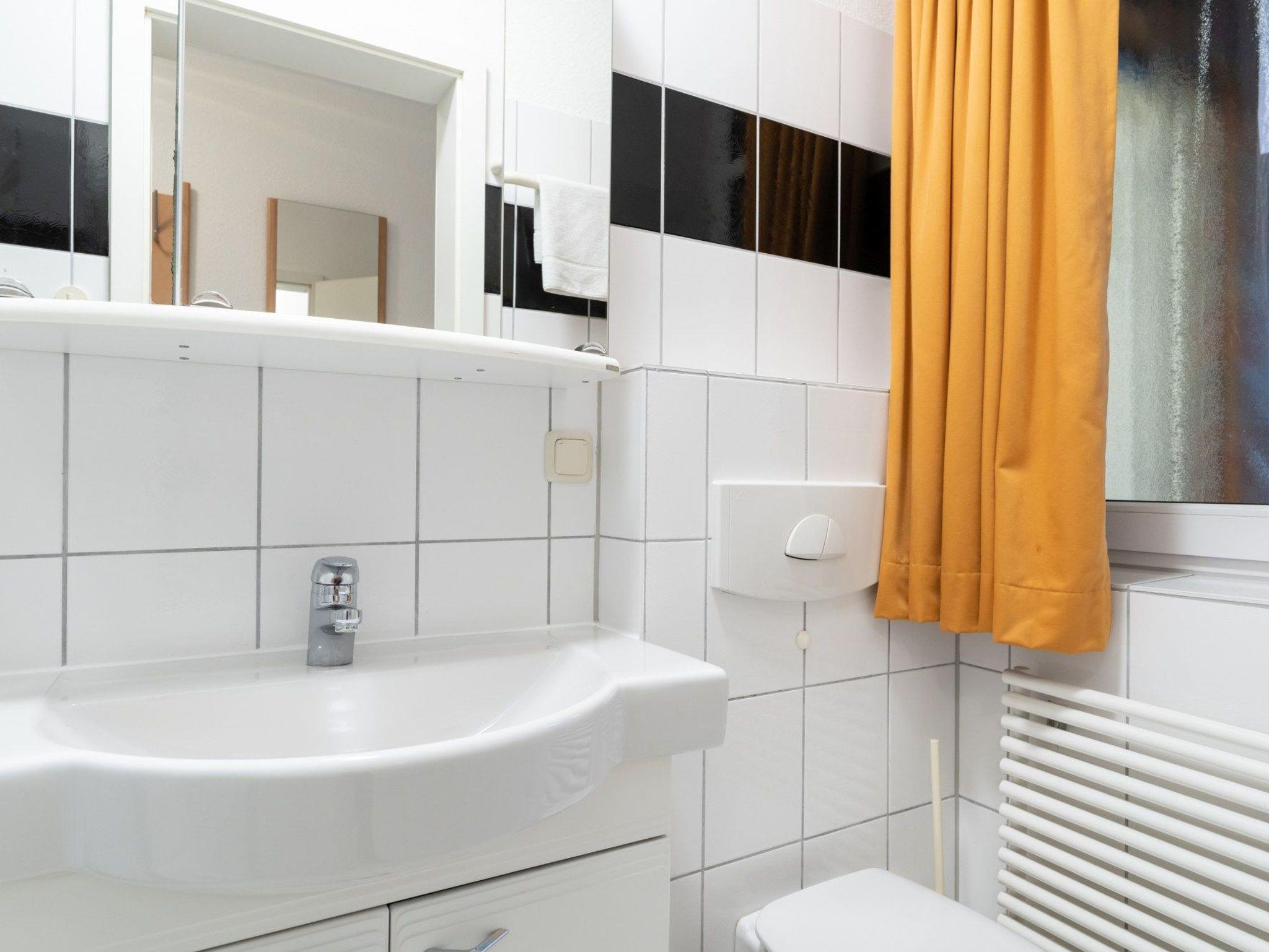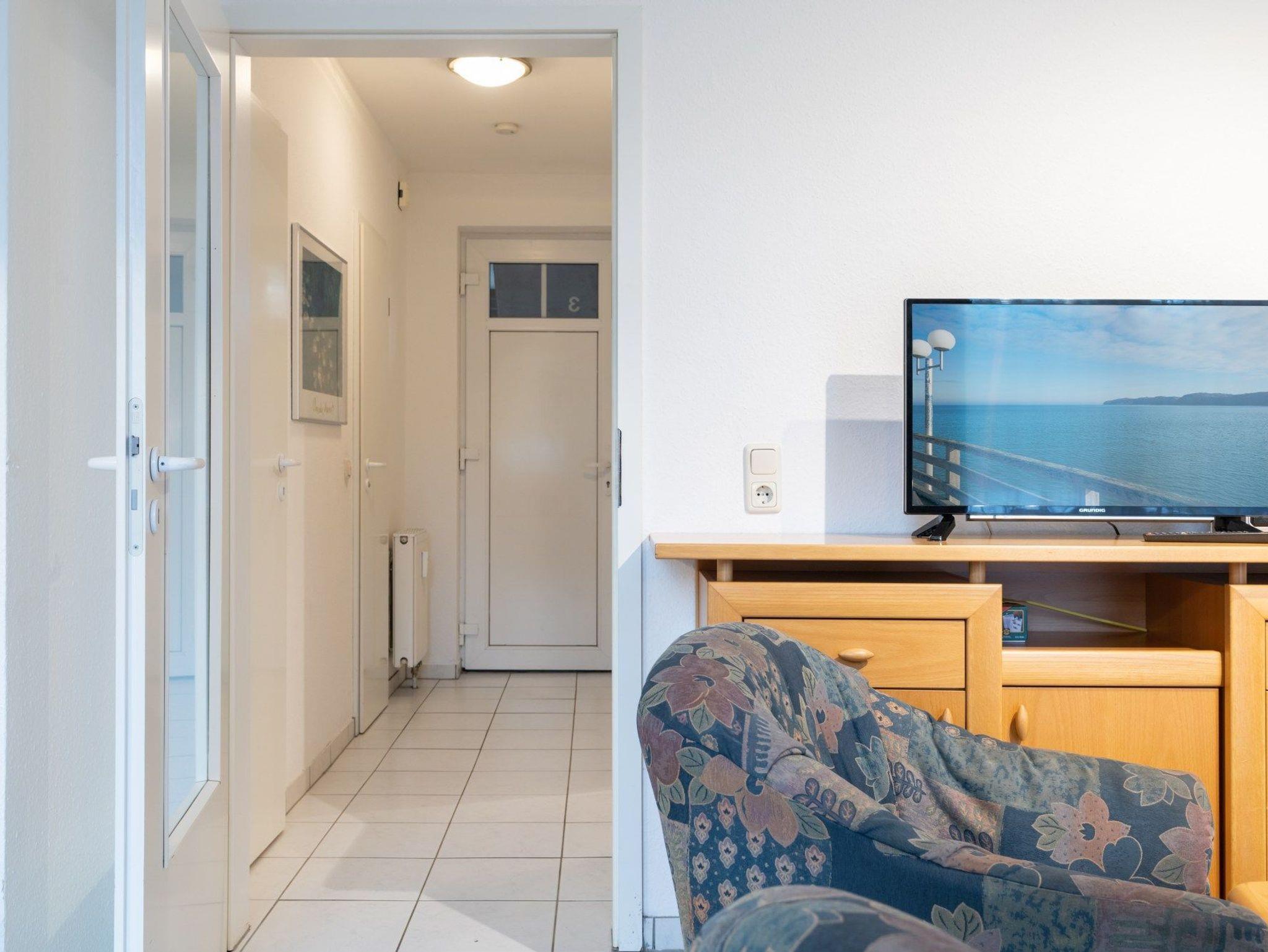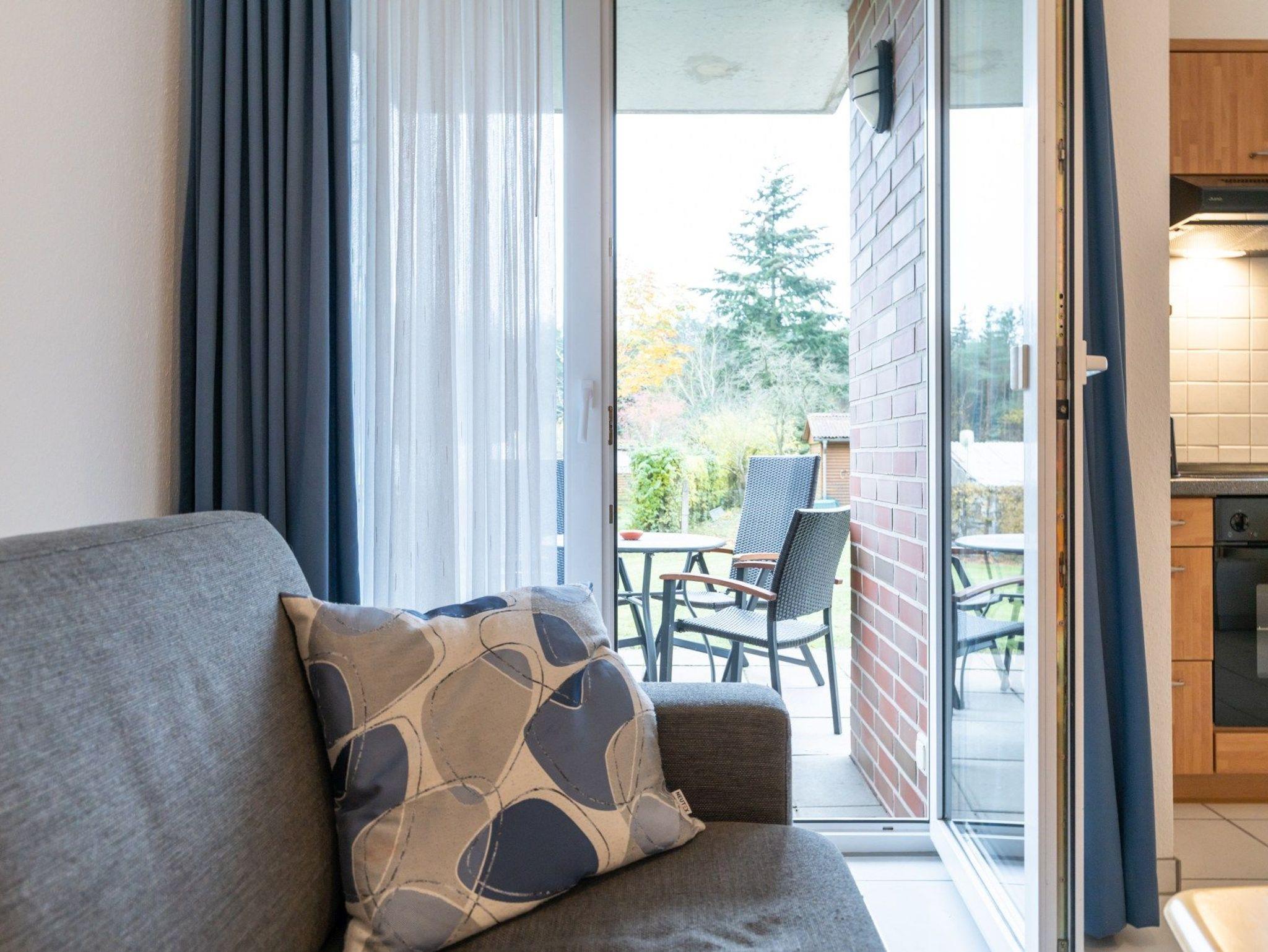 Die 36 m ² große Ferienwohnung 03 befindet sich im Erdgeschoss im Haus Roland (rechtes Gebäude vom Parkplatz aus gesehen). Sie bietet mit ihren zwei Zimmern ausreichend Platz für bis zu 4 Personen.