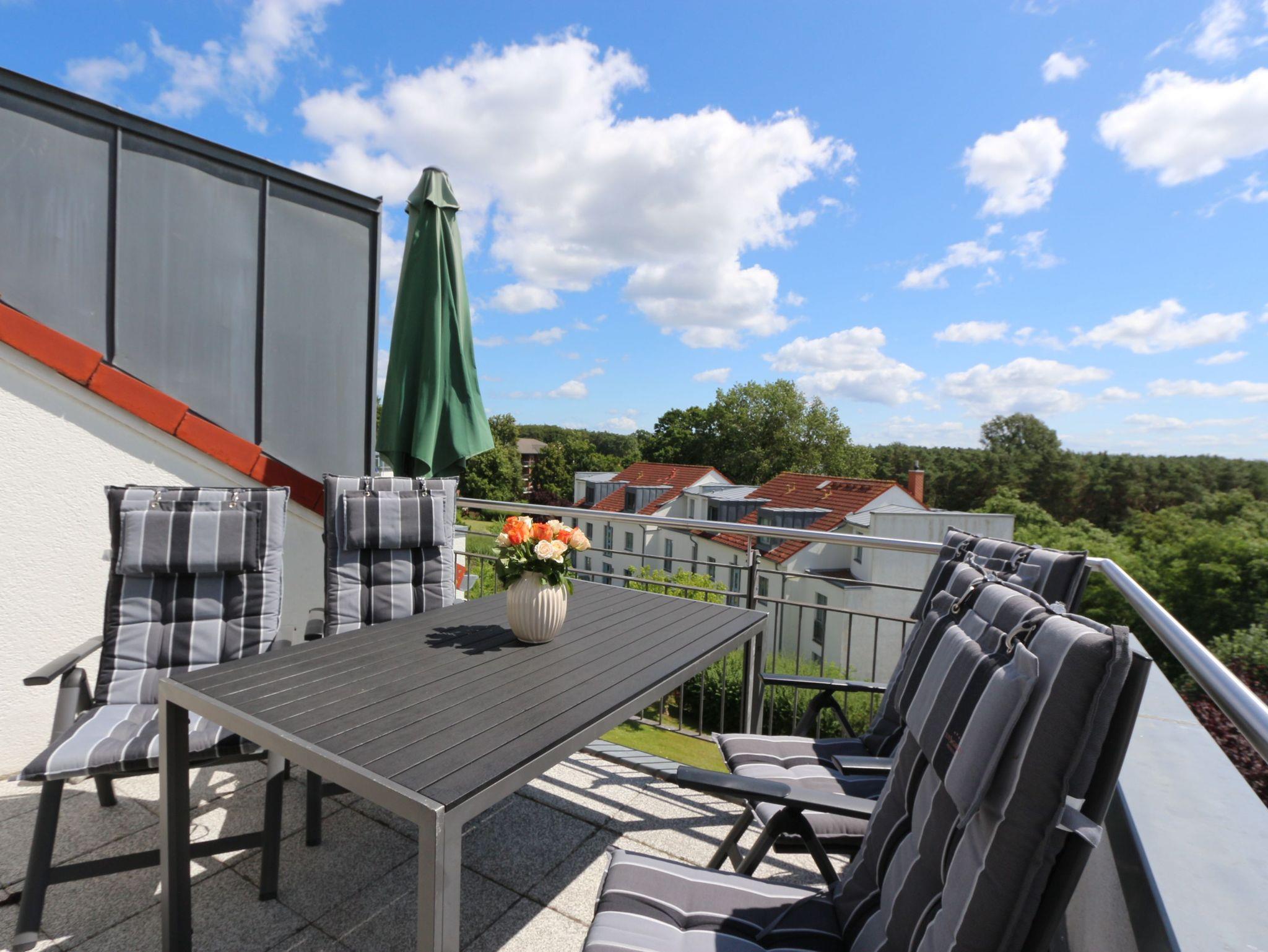 Die großzügigen 2-Zimmer-Penthouseferienwohnungen Nr. 13 und Nr.14 (jeweils ca.62 m²), die auf einer Ebene nebeneinander im 2.Obergeschoss vorhanden sind, mit exklusiver Ausstattung und jeweils 2 Dachterrassen befinden sich in der Residenz Bellevue in 17454 Zinnowitz, Heimweg 8.