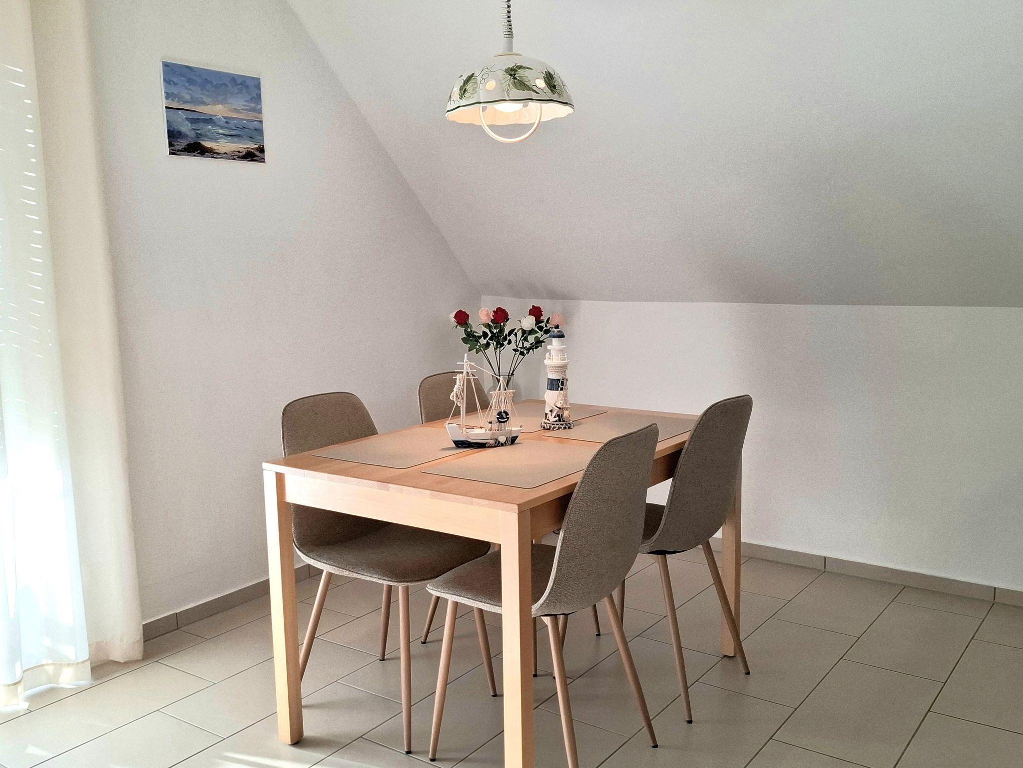 Die gemütliche 2-Raum-Ferienwohnung mit Balkon und ist 52qm groß. Der großzügige Wohnbereich erwartet Sie mit einem Esstisch, Flat-TV sowie einem großen Sofa (Aufbettungsmöglichkeit für 2 Personen/Liegefläche 1,80x2,00m), welches durch extra Matratzenauflage besonderen Schlafkomfort bietet.