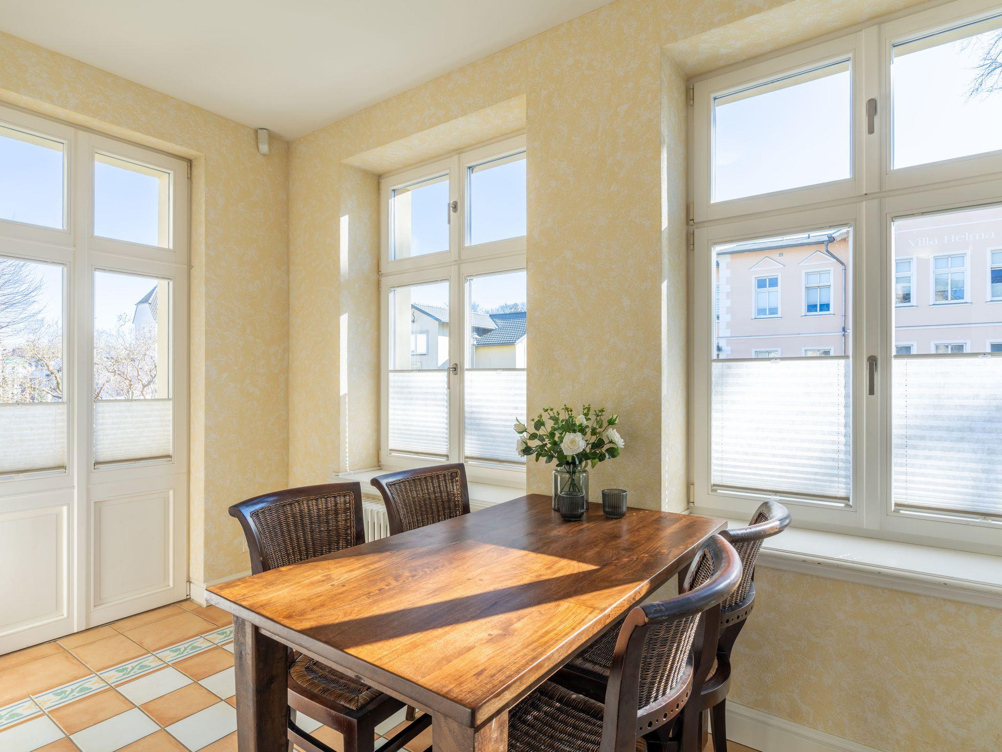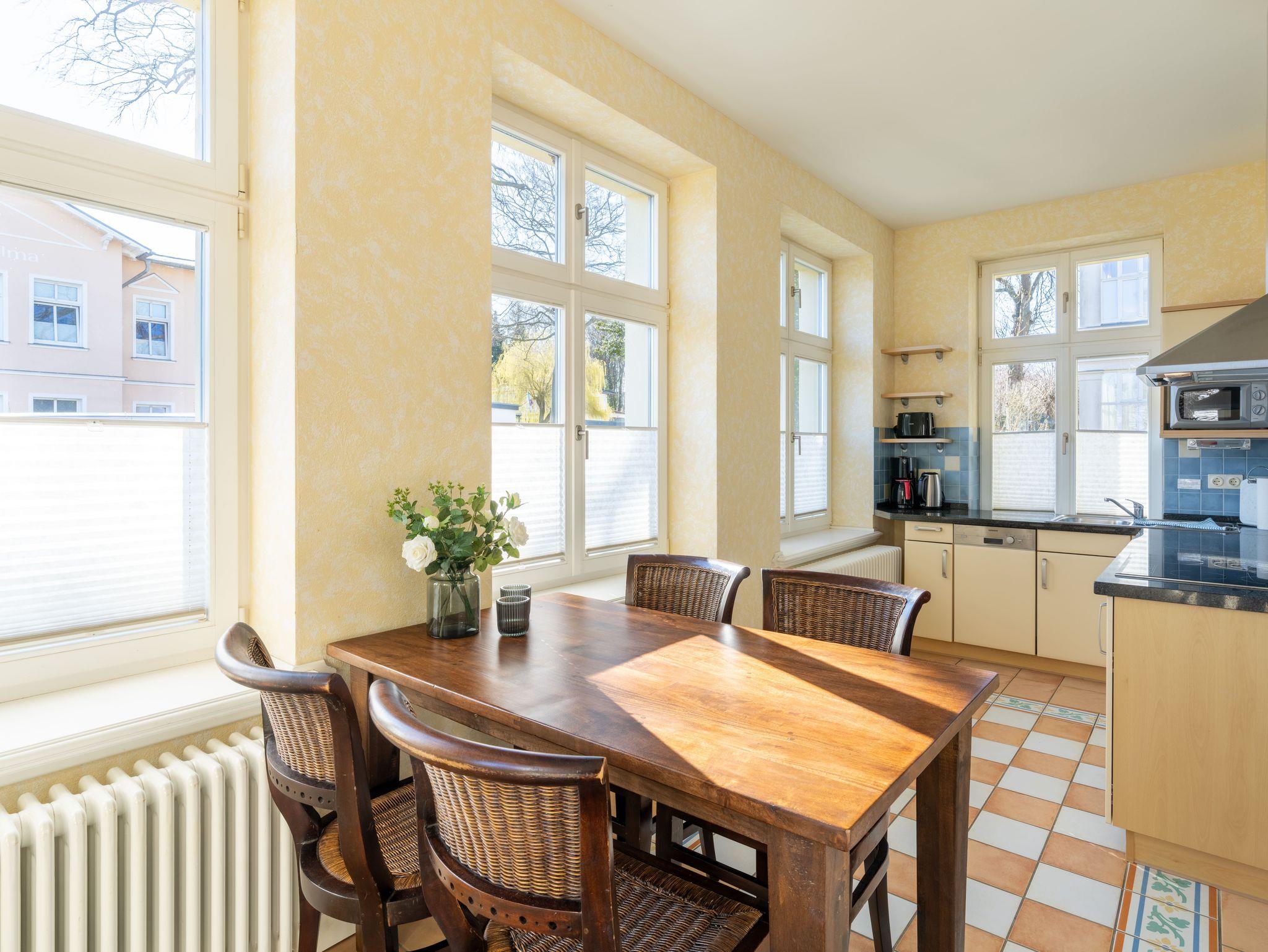 Umgeben von altem Baumbestand befindet sie sich in ruhiger Nachbarschaft weiterer Sommerresidenzen der Gründerzeit erbauter Villen. Zu Fuß erreichen Sie in zwei Minuten das gepflegte Zentrum des Ostseebades Zinnowitz mit Bernsteintherme, Seebrücke und Strand.