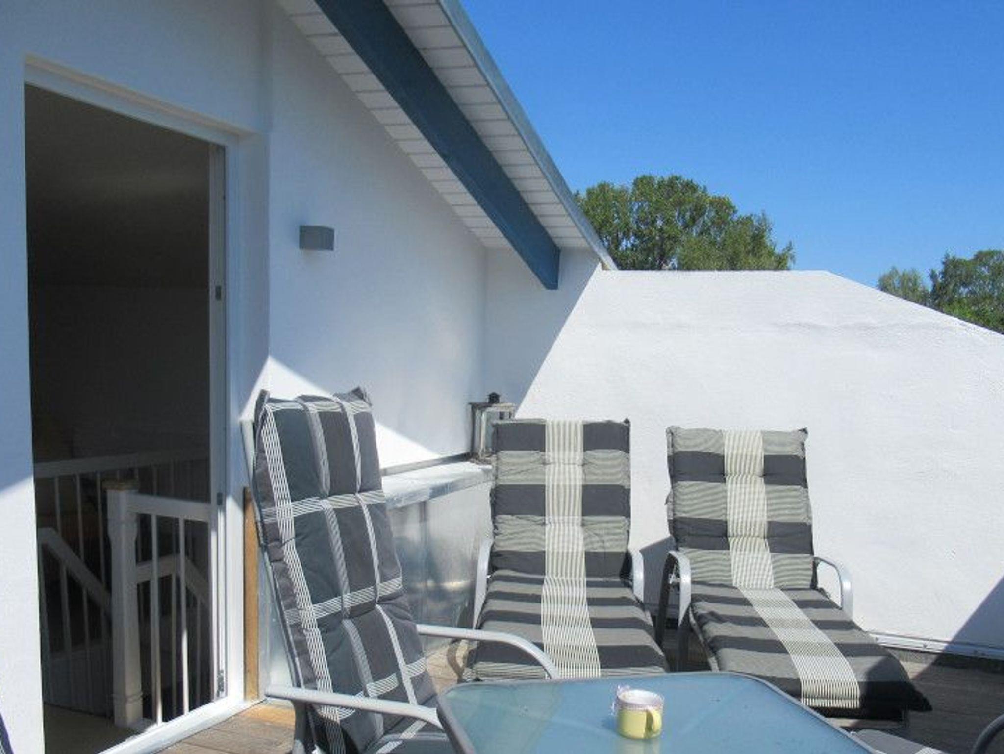 Wohnzimmer mit Küchenbereich, Bad mit Badewanne, Zwei Schlafzimmer im oberen Bereich, Dachterrasse mit Gartenmöbeln, DSL-Anschluss, Parkplatz auf Grundstück, Strom, Wasser, Heizung im Preis enthalten