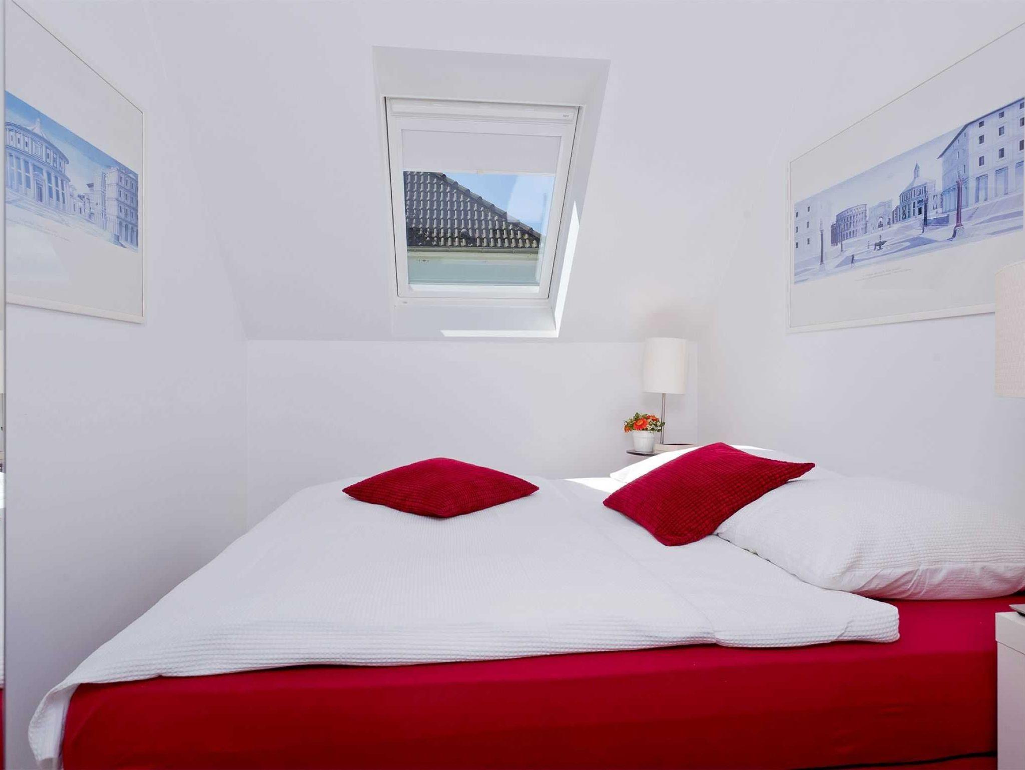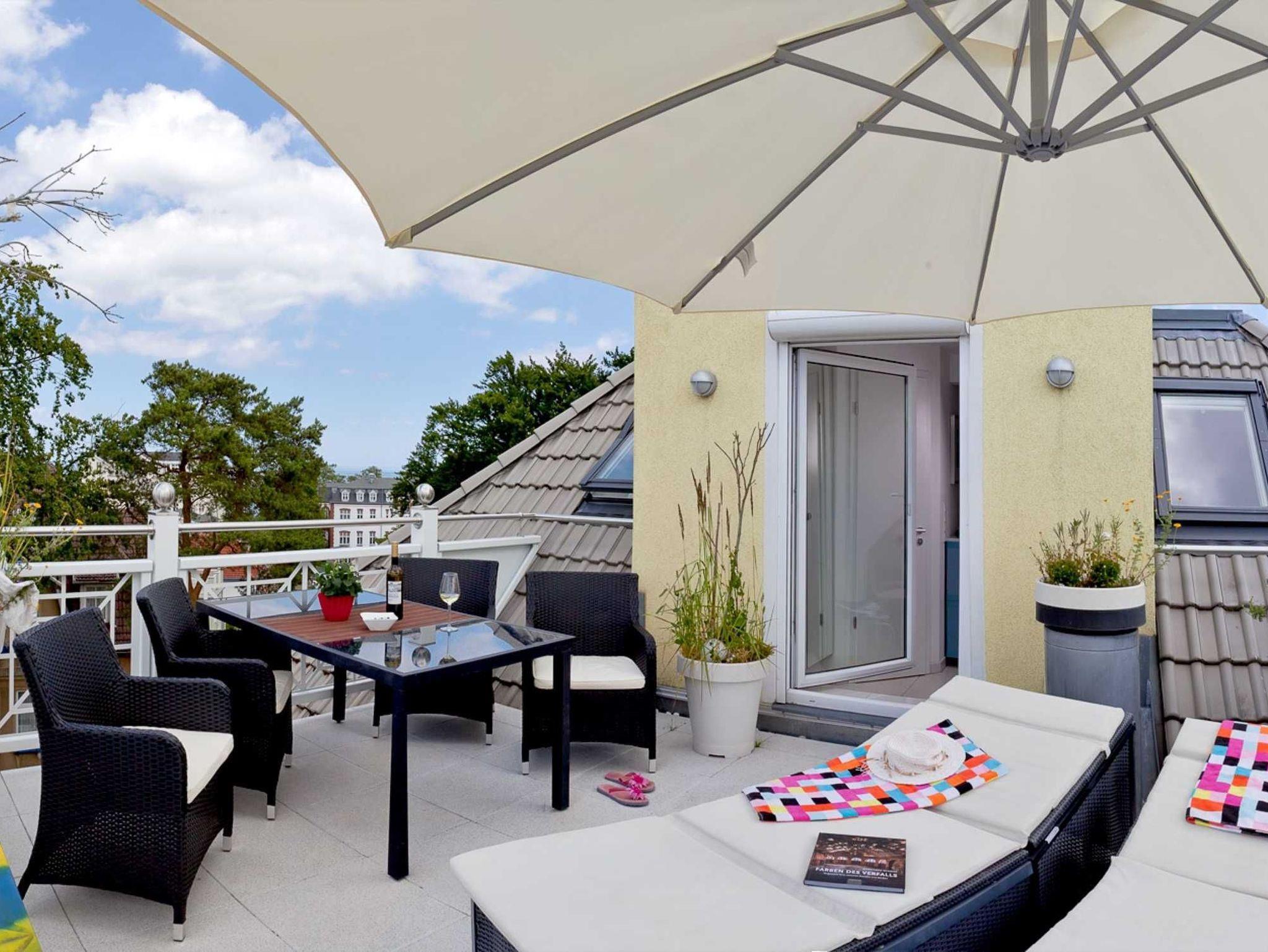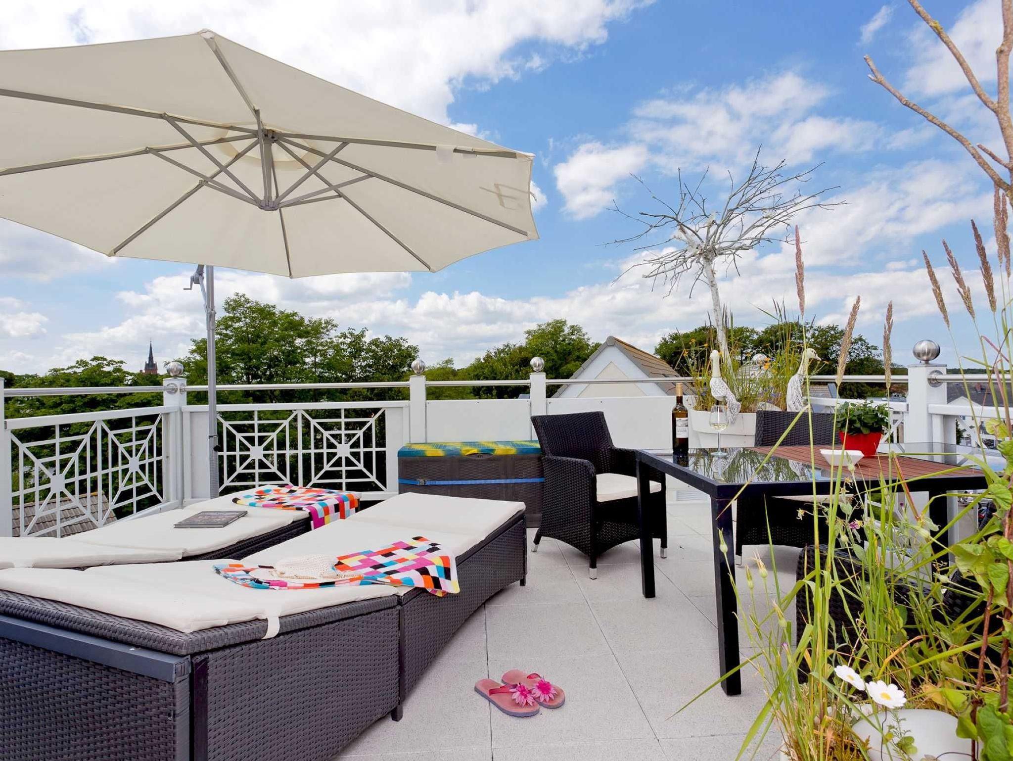 Durch die hohe Dachgeschosslage und die drei Balkone haben Sie einen hervorragenden Seeblick. Der Wohnbereich hat einen großzügigen Grundriss mit einer offenen sowie komplett ausgestatteten Küche durch welche Sie sich kulinarisch frei entfalten können. Auf zwei möblierten Dachbalkonen können Sie das schöne Wetter auch direkt an der Wohnung nutzen. Die gemütliche Sitzlandschaft mit Flachbildfernseher, DVD-Player und Stereoanlage bietet zudem einen schönen Raum um am Abend oder am Tag auch vor Ort gemeinsam Zeit zu verbringen. Zudem ist dort ein modernes Bad mit einer großen Dusche und einem WC. In der unteren Ebene befinden sich zwei gemütlich eingerichtete Schlafzimmer für jeweils zwei Personen. In der oberen Etage befinden sich des Weiteren ein Schlafraum und ein großzügiges Badezimmer mit Dusche, Badewanne, Doppelwaschtisch, WC und Bidet. Ebenso befindet sich dort eine Dachterrasse mit 2 Komfortliegen und einem Tisch mit weiteren Sitzmöglichkeiten. WLAN ist vorhanden. Ihnen wird zudem selbstverständlich ein eigener Tiefgaragenstellplatz zur Verfügung gestellt. Waschmaschine und Trockner können Sie gegen Entgelt verwenden.