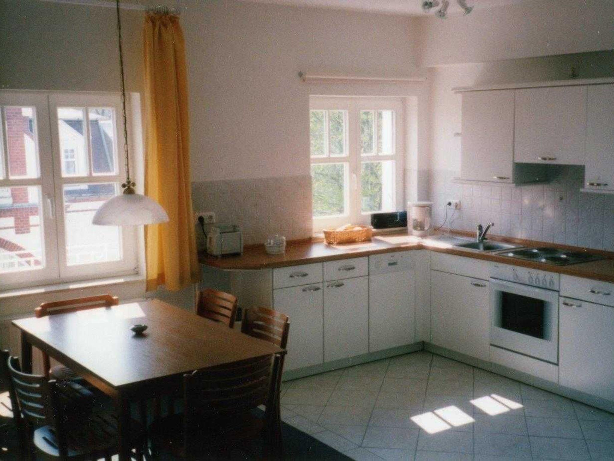 Die Ferienwohnung Seeblick liegt im 3. Obergeschoss und ist mit 80 qm sehr großzügig bemessen. Alle Zimmer haben Seeblick und sind individuell und komfortabel eingerichtet. Die Ferienwohnung verfügt über ein Schlafzimmer, zwei behagliches Wohnzimmer mit Schlafmöglichkeiten, eine moderne voll ausgestattete Einbauküche mit Geschirrspüler, Bad/WC und Gästetoilette. Die Ausstattung ist für zwei bis sechs Personen vorgesehen (Nichtraucherwohnung, Raucherinseln am Haus sind vorhanden). Die Hausterrasse an der Kurpromenade (seeseitig) steht allen Gästen zur Verfügung.