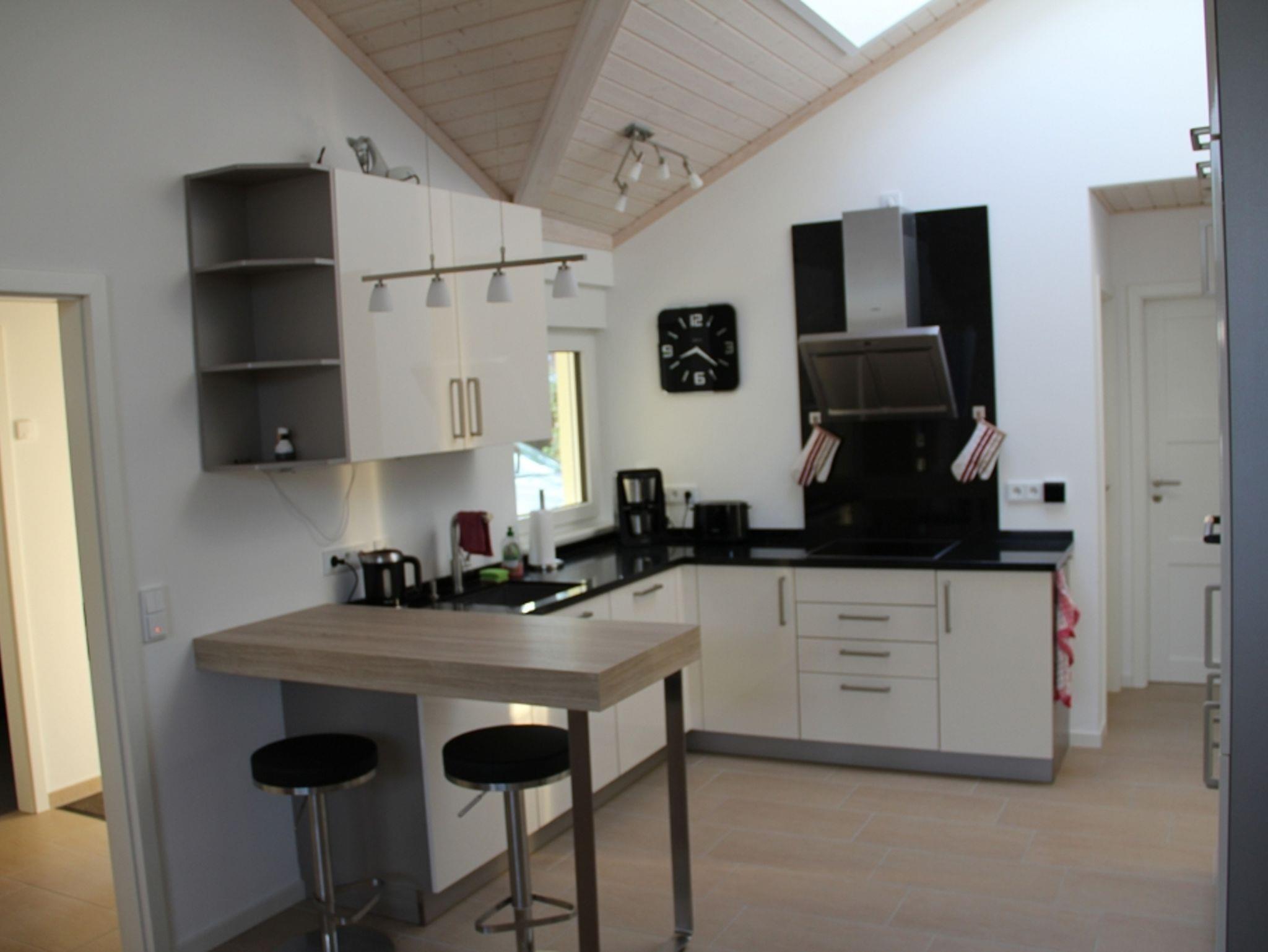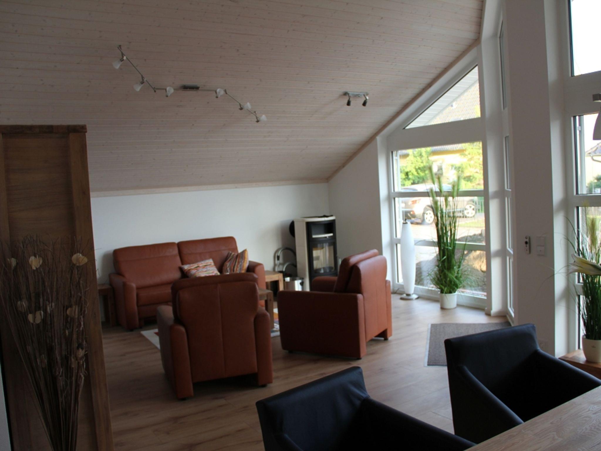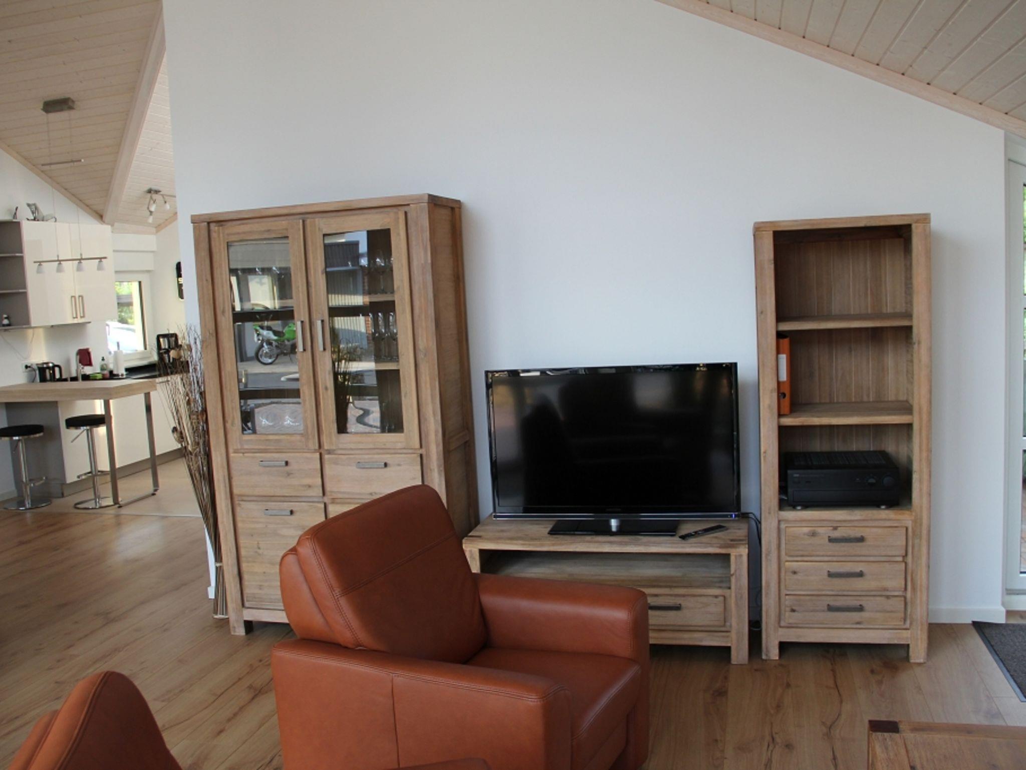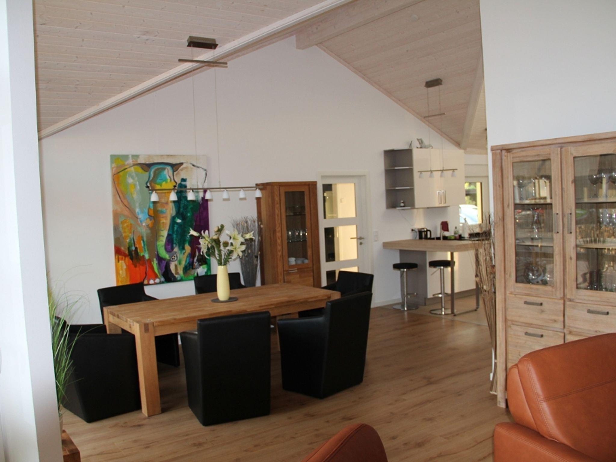 Die Ferienwohnung ist inspiriert von der offenen Architektur dänischer Ferienhäuser. Auf rund 105 Quadratmetern bietet die Ferienwohnung Platz für bis zu sechs Personen plus Haustier. Sauna und Kaminofen sorgen auch in der kälteren Jahreszeit für eine gemütliche Atmosphäre, 2 Terrassen sorgen in der wärmeren Jahreszeit für zusätzlichen Raum. Freies W-Lan und TV im Wohnzimmer und den beiden Schlafzimmern, Waschmaschine und Trockner sowie eine voll eingerichtete Küche ermöglichen einen entspannten Aufenthalt.