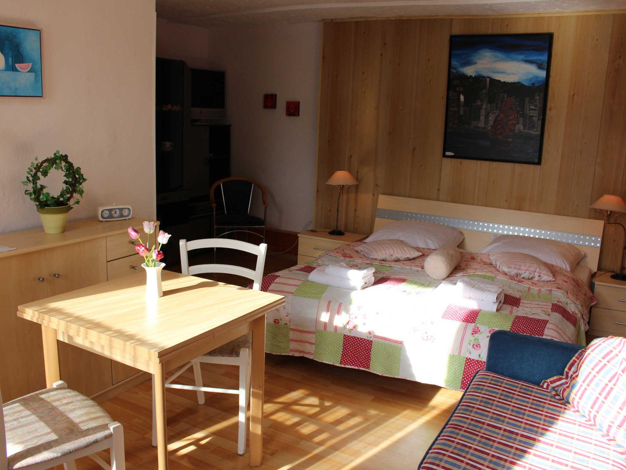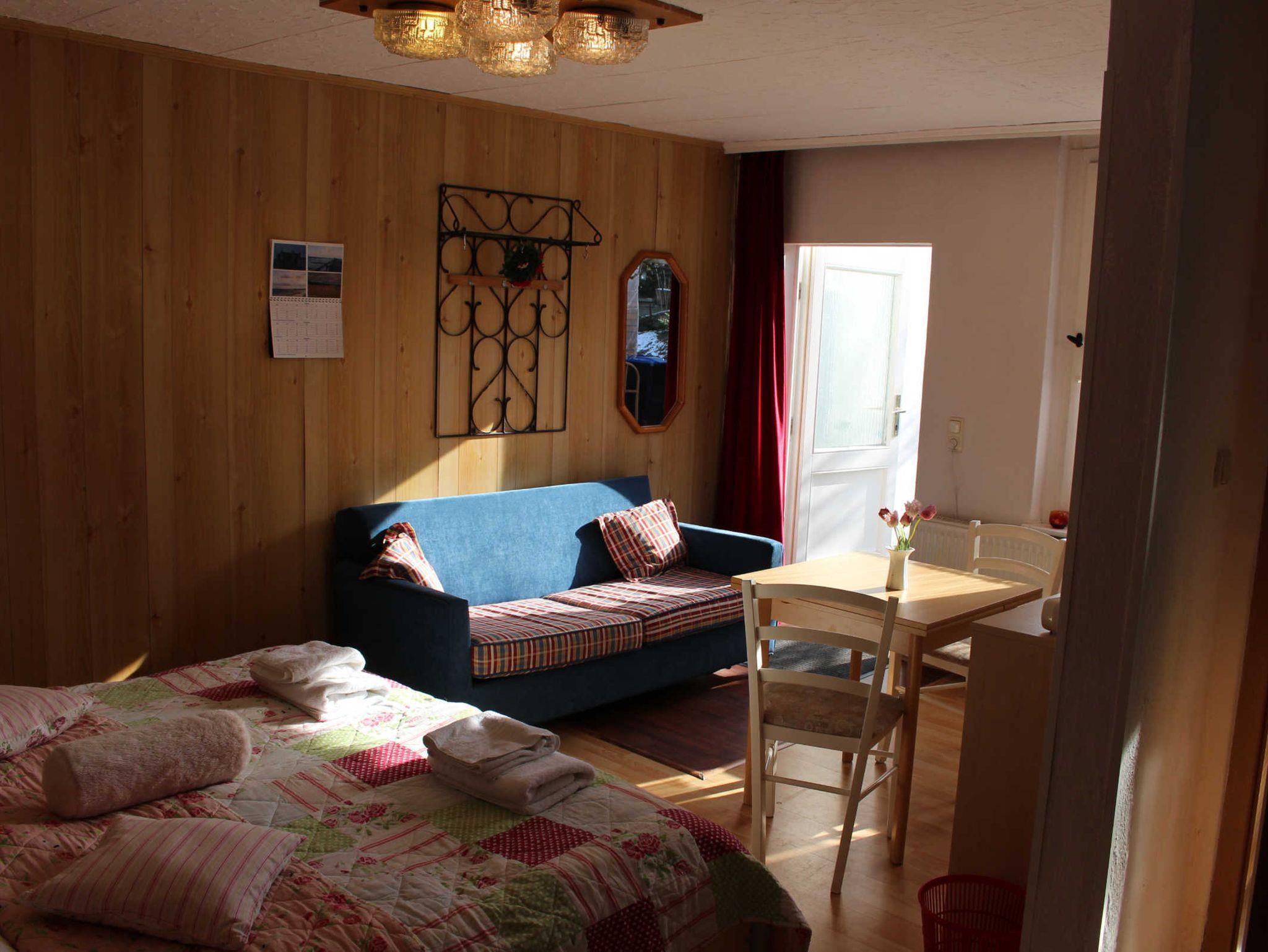 Das Ferienzimmer ist einfach aber zweckmäßig ausgestattet. Es besteht aus einem Wohnraum mit Aufbettungsmöglichkeit, DU/WC,TV, Kaffeemaschine, Toaster, Wasserkoche, Kühlschrank. Das Zimmer hat einen separaten Eingang. Kostenfreie Parkmöglichkeiten sind auf dem Grundstück vorhanden. Nebenkosten wie Strom,Wasser sowie Bettwäsche und Handtücher sind im Preis enthalten.