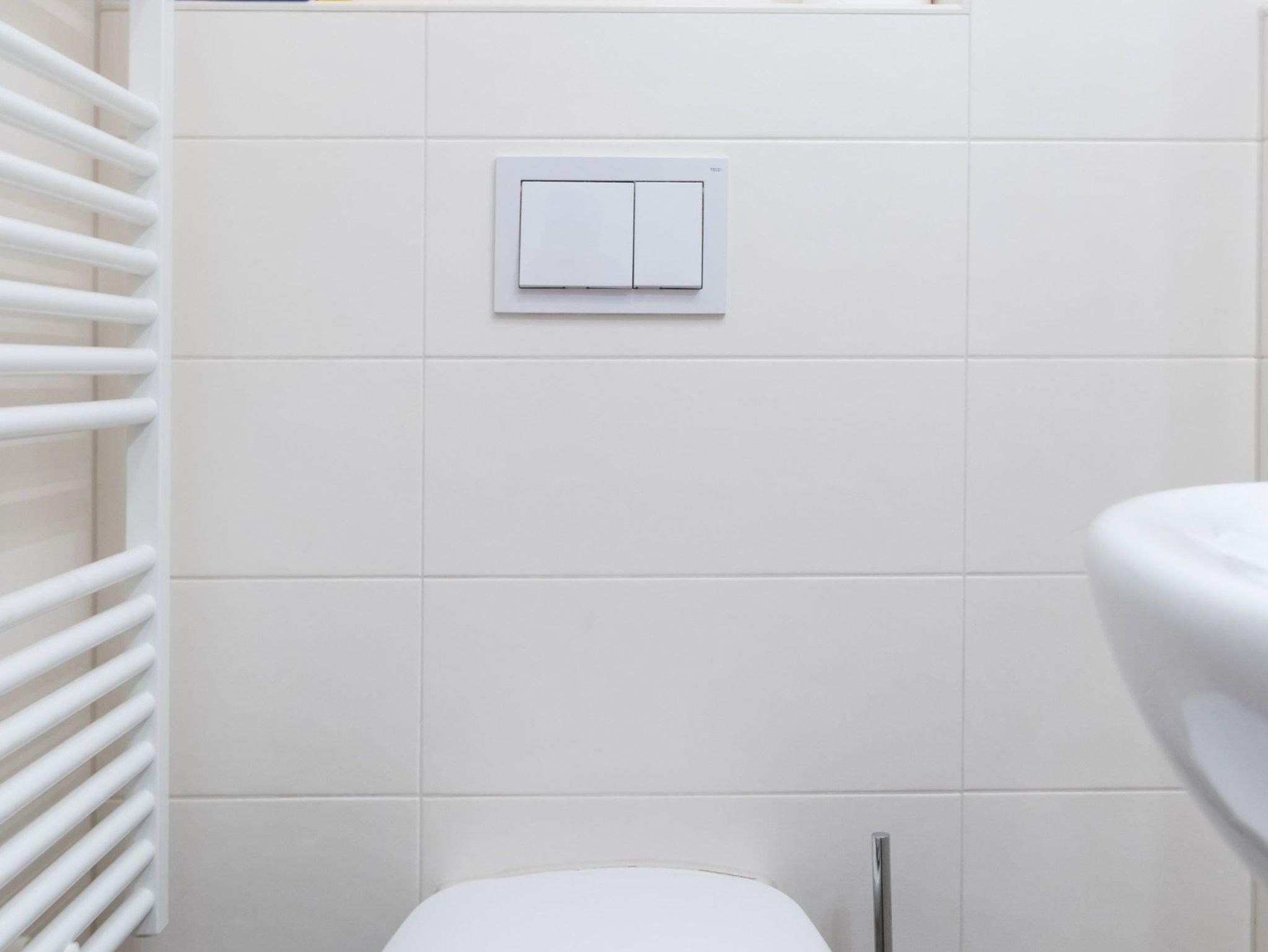 Das Badezimmer verfügt über eine Dusche und WC.