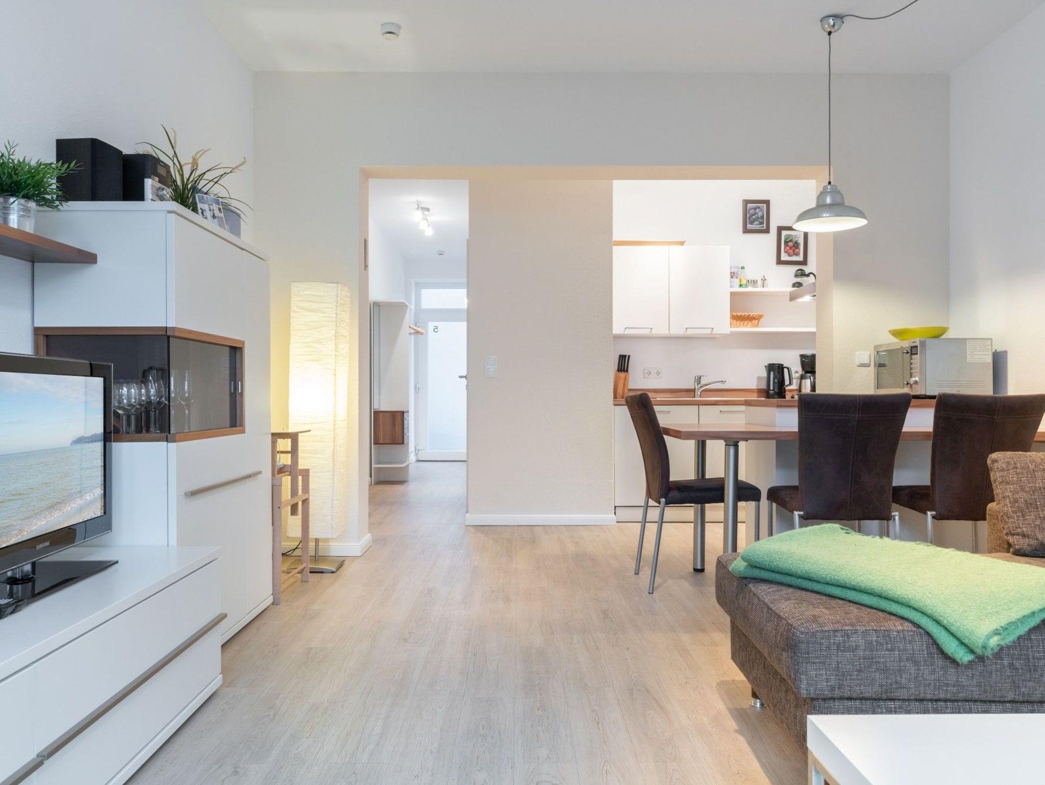 Die 48 m ² große und mit 4 DTV Sternen klassifizierte Ferienwohnung 05 befindet sich im Erdgeschoss in der Villa Marin. Sie bietet mit ihren zwei Zimmern ausreichend Platz für bis zu 4 Personen (+ Baby möglich).