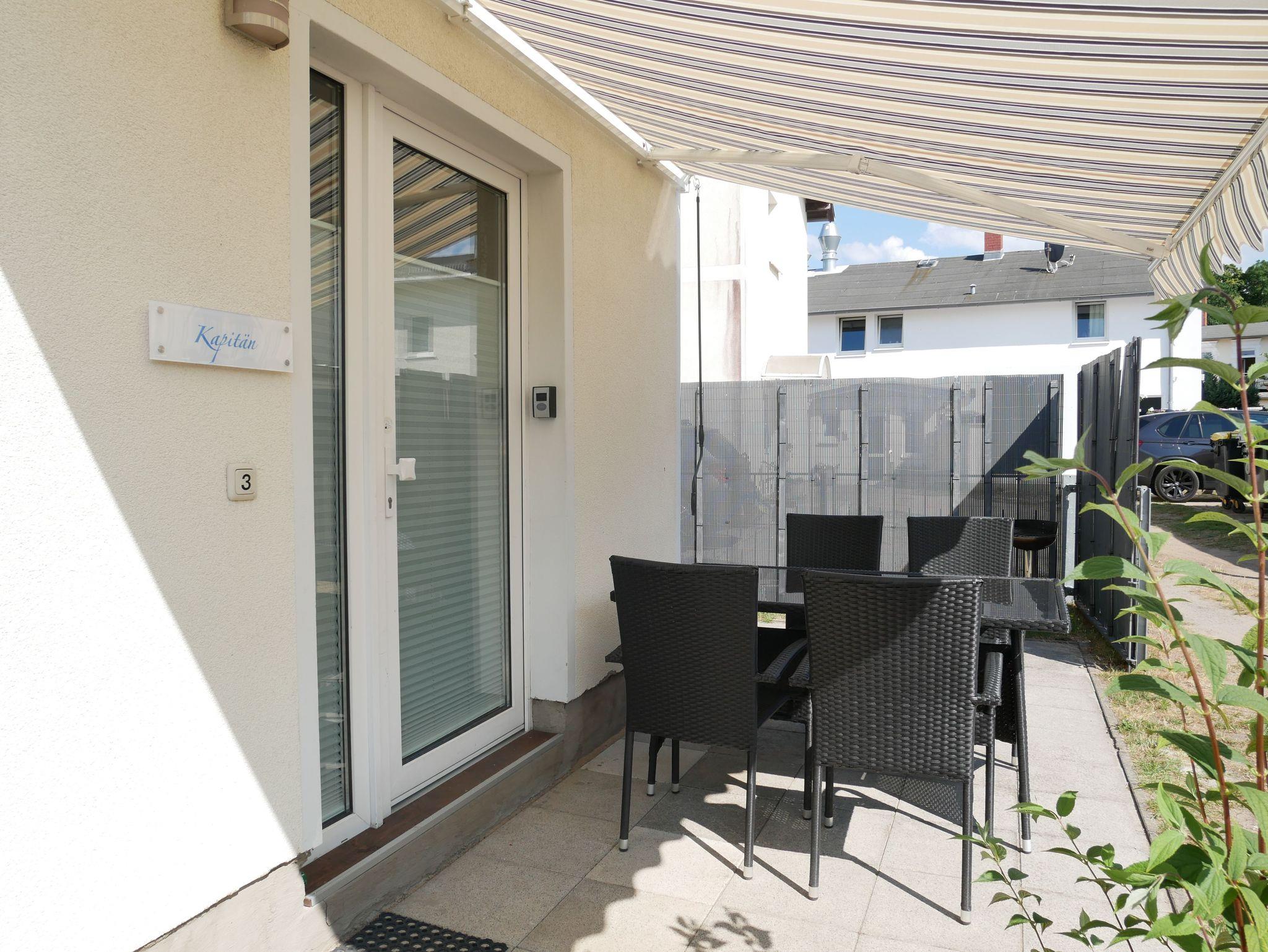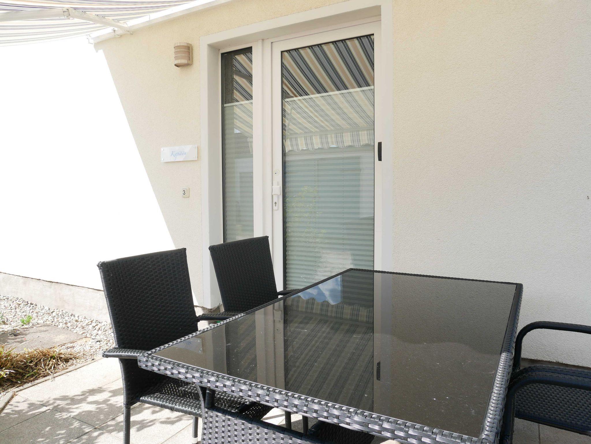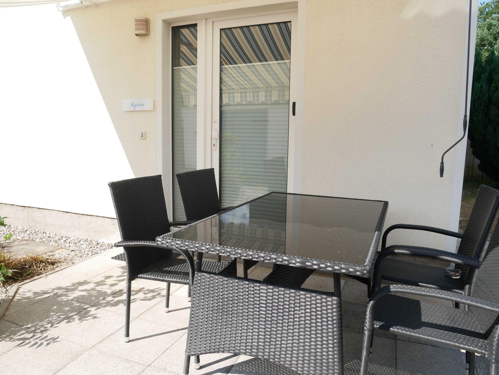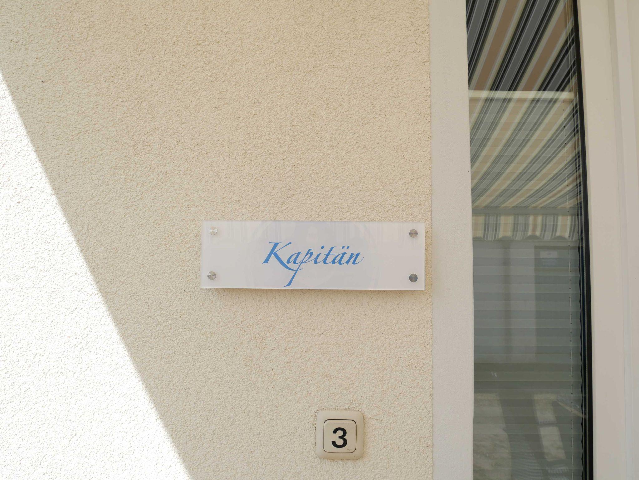 Die Ferienwohnung Der Kapitän ist eine von vier Ferienwohnungen in unserem Ferienhaus zur Ostsee und befindet sich im Erdgeschoß. Die Wohnung verfügt über einen separaten Eingang und eine eigenen Sonnenterrasse, welche mit gemütlichem Mobiliar, einem Grill und einem Wäscheständer ausgestattet ist.