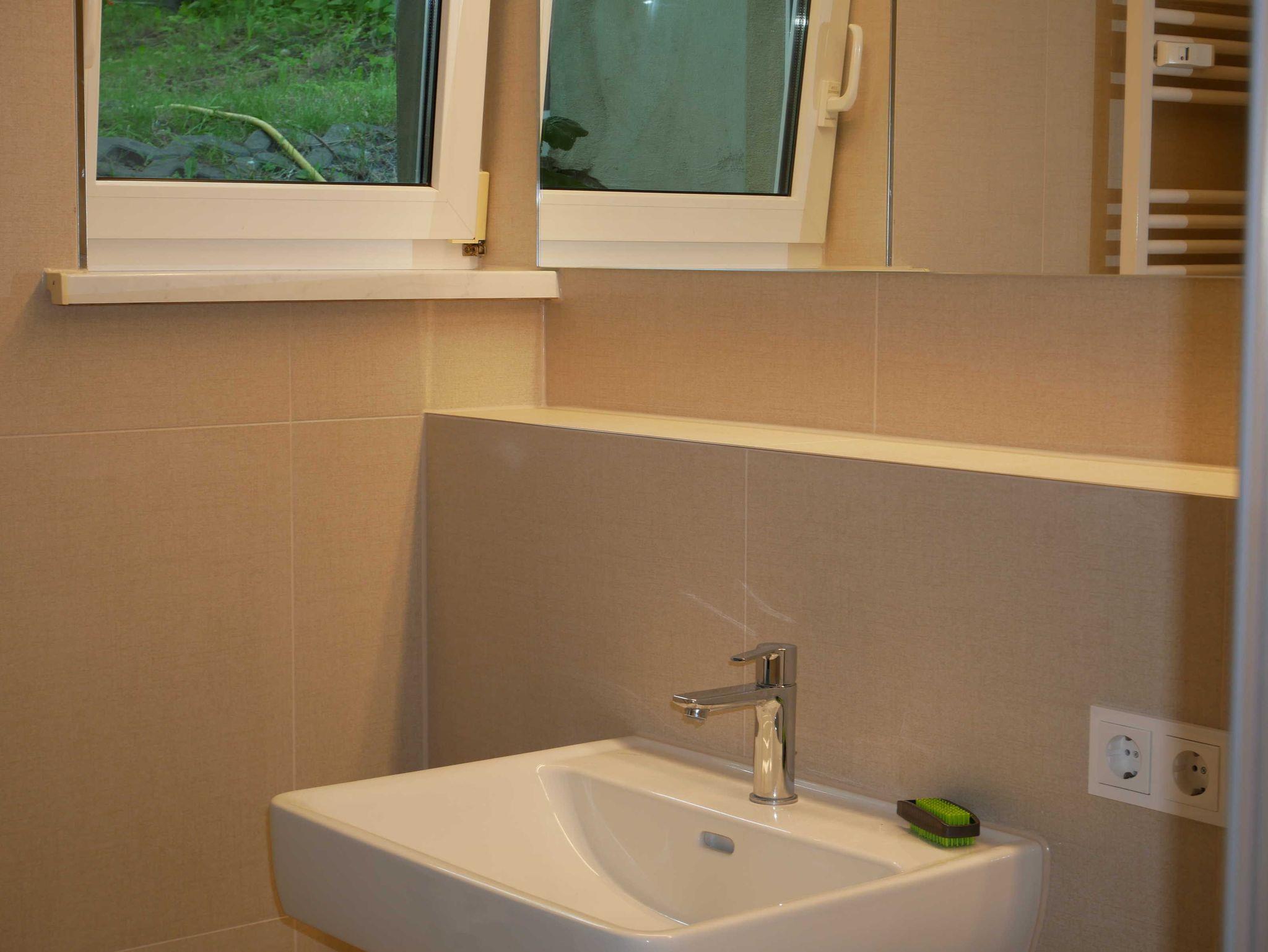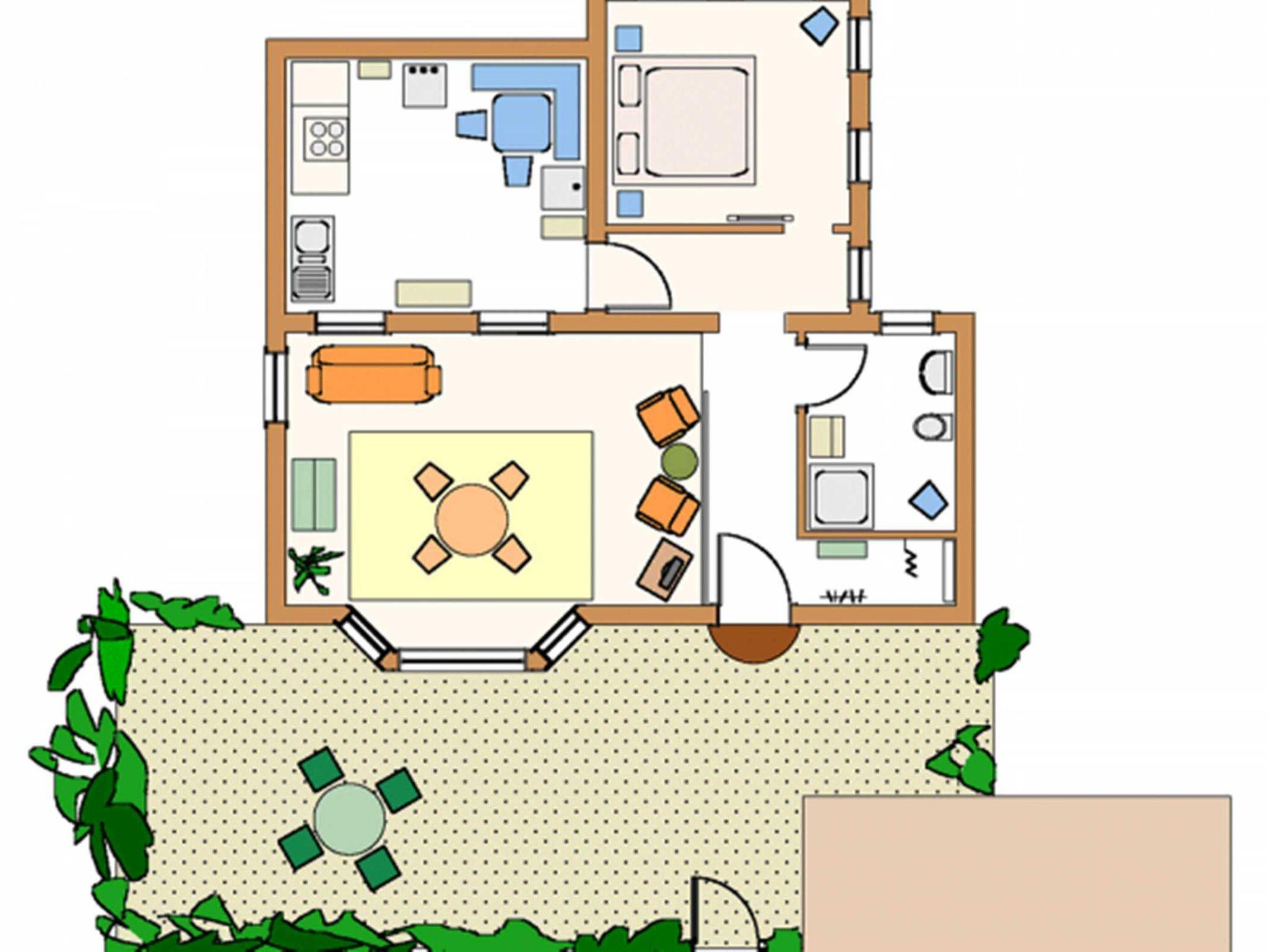 Die 58 qm große Ferienwohnung verfügt über ein Schlafzimmer mit Doppelbett und Kleiderschränken, ein geräumiges Duschbad mit ebenerdiger Dusche und Außenfenster, sowie Handtuchheizung und eine wohnliche Küche mit Ceran Kochfeld, Mikrowelle mit Backfunktion und Essecke. Im großzügigen Wohnzimmer befinden sich neben der Schlafcouch (Aufbettungsmöglichkeit für die 3. und 4. Person), ein weiterer Essbereich und die Fernsehecke. An das Wohnzimmer schließt sich die große, eigene Terrasse mit Blick zum Garten an. WLAN steht Ihnen kostenfrei zur Verfügung. Ein Komplettpaket /Bettwäsche und Handtücher kann gegen eine Gebühr hinzugebucht werden. Ein Babybett und ein Hochstuhl können auf Anfrage bereitgestellt werden. Bitte bei Buchung vorbestellen.