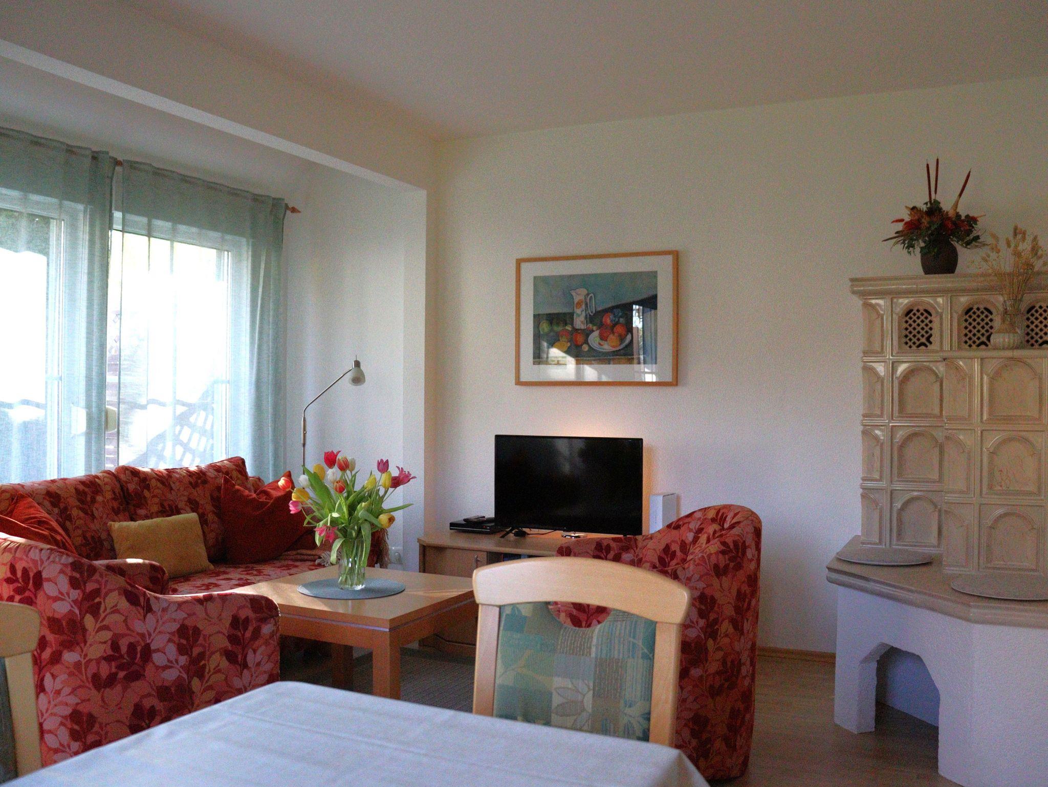 separaten Essbereich verfügt. Ein elektrischer Kachelofen mit beheizbarer Sitzfläche sorgt für