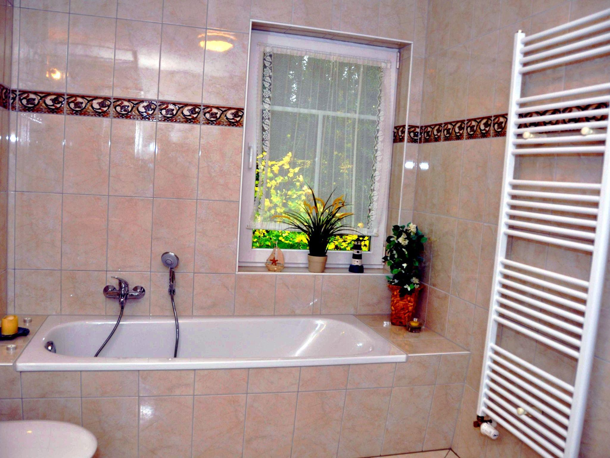 Das helle Tageslichtbad ist mit Badewanne, separater Dusche und WC ausgestattet.