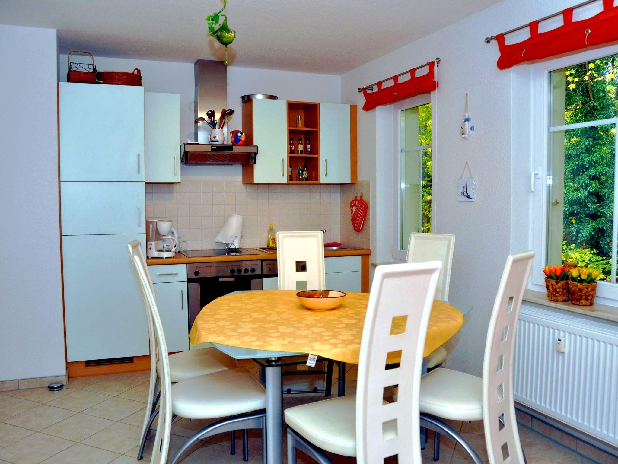 Diese moderne und komfortabel eingerichtete 3-Raum-Wohnung (72m²) im 1. Obergeschoss eines ruhigen Appartementhauses erwartet Sie direkt am Rand eines kleinen Wäldchens ? ideal zum Entspannen. Genießen Sie Ihr Frühstück auf dem großen Südbalkon mit Gartenmöbeln und Sonnenschirm. Der charmante Ortskern von Zinnowitz ist dennoch in wenigen Minuten erreichbar.
