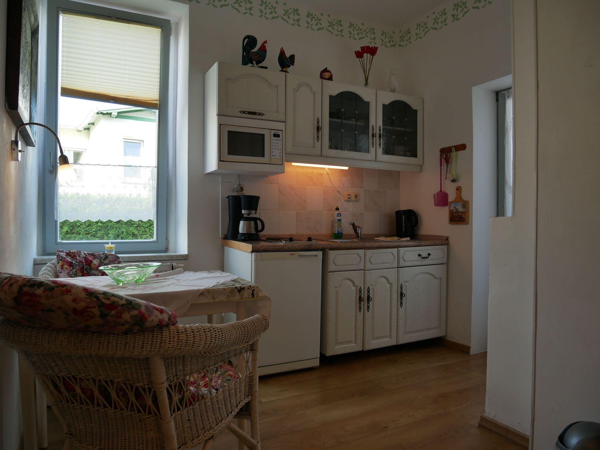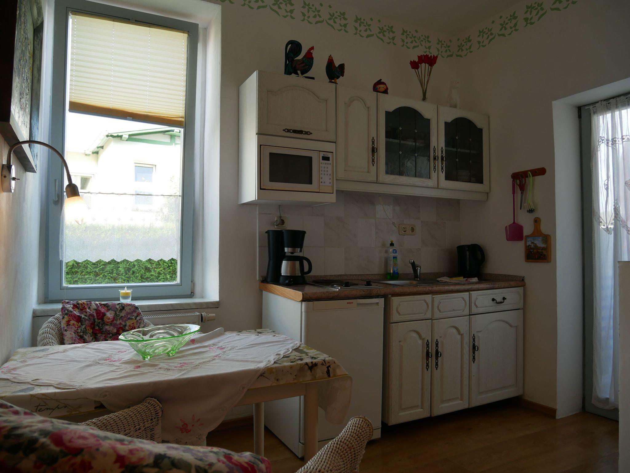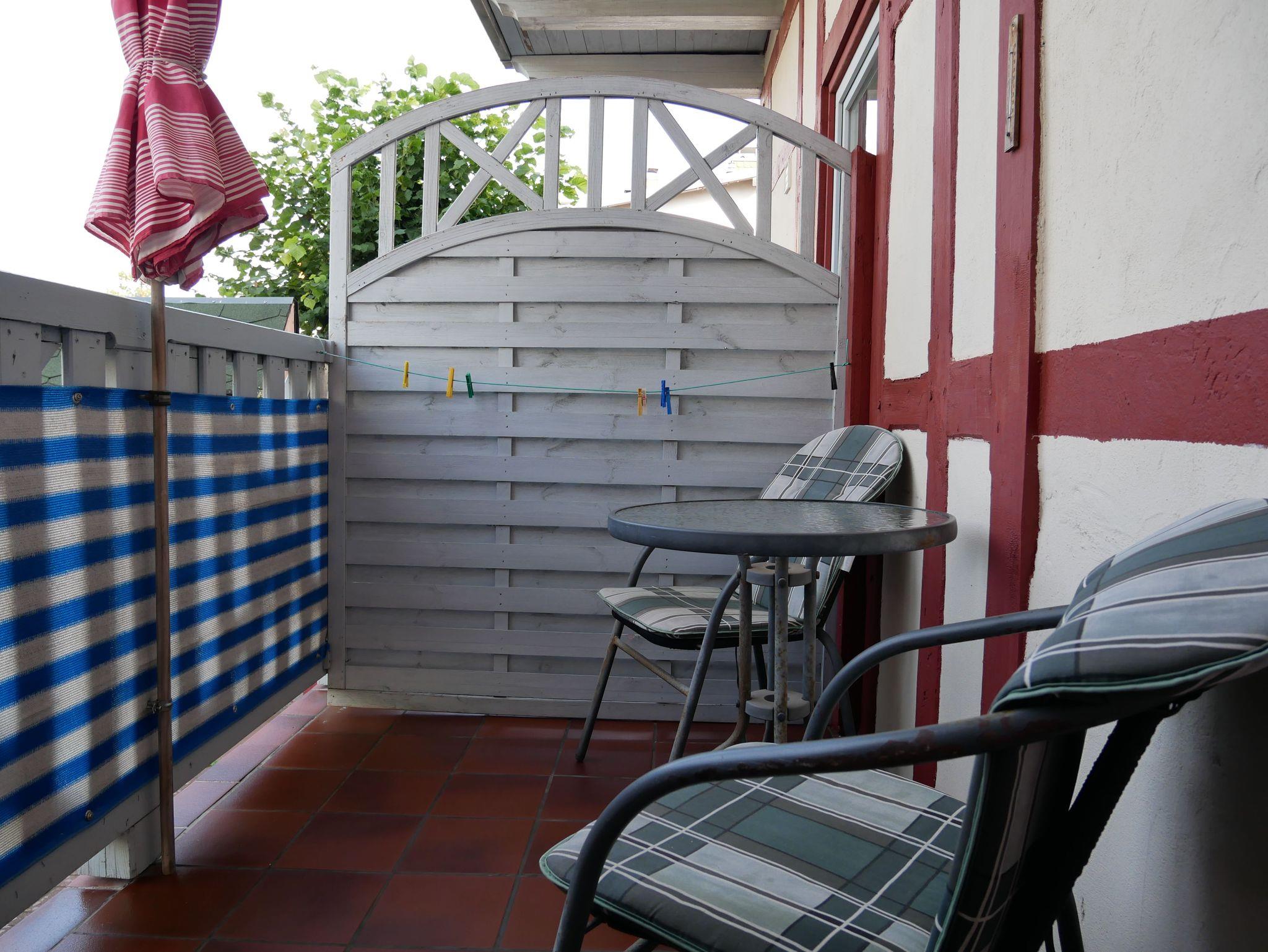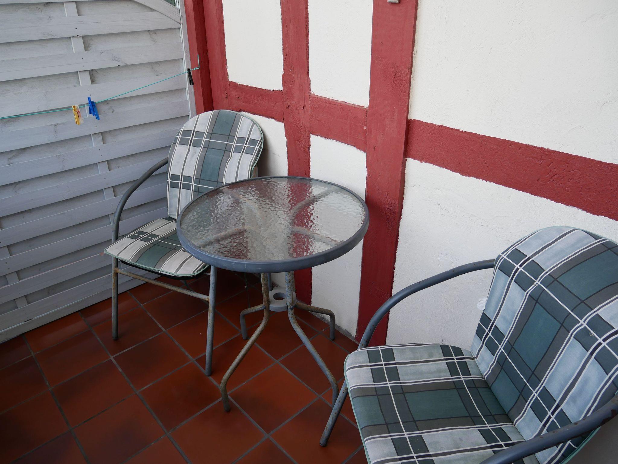 Die Fewo 4 mit TV und WLAN liegt im Erdgeschoß und verfügt über einen Balkon mit Sitzgelegenheit. Ein PKW-Stellplatz auf dem Grundstück unmittelbar am Haus gehört zur Wohnung dazu.