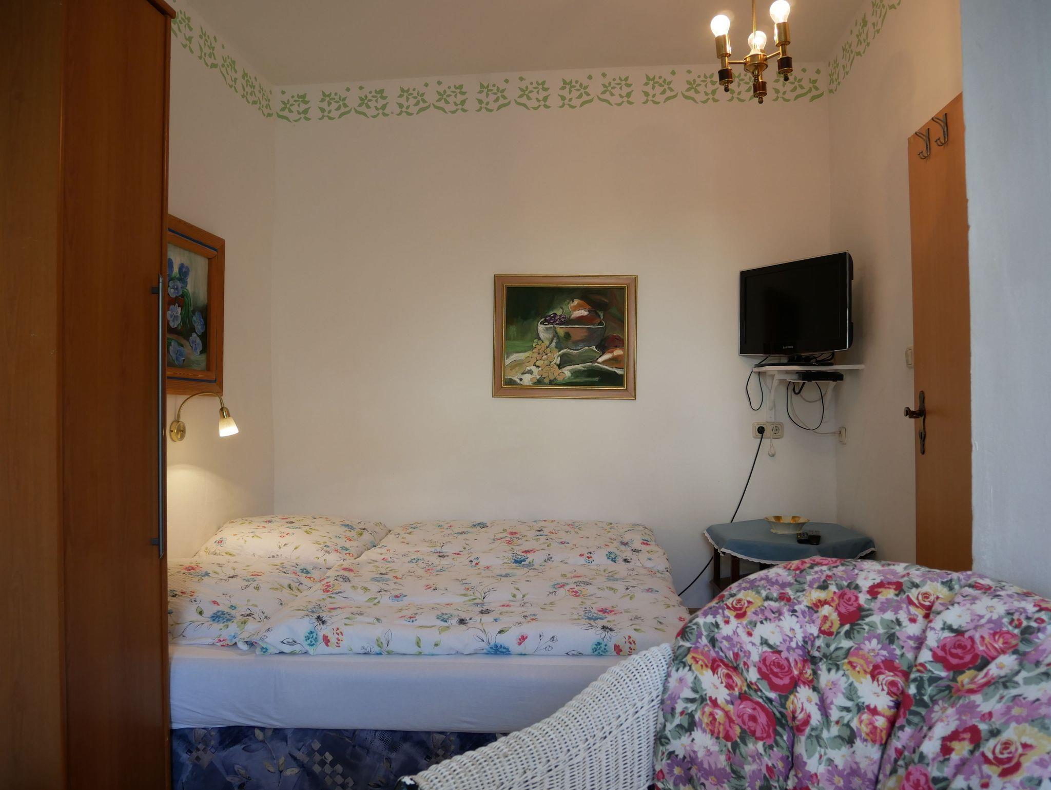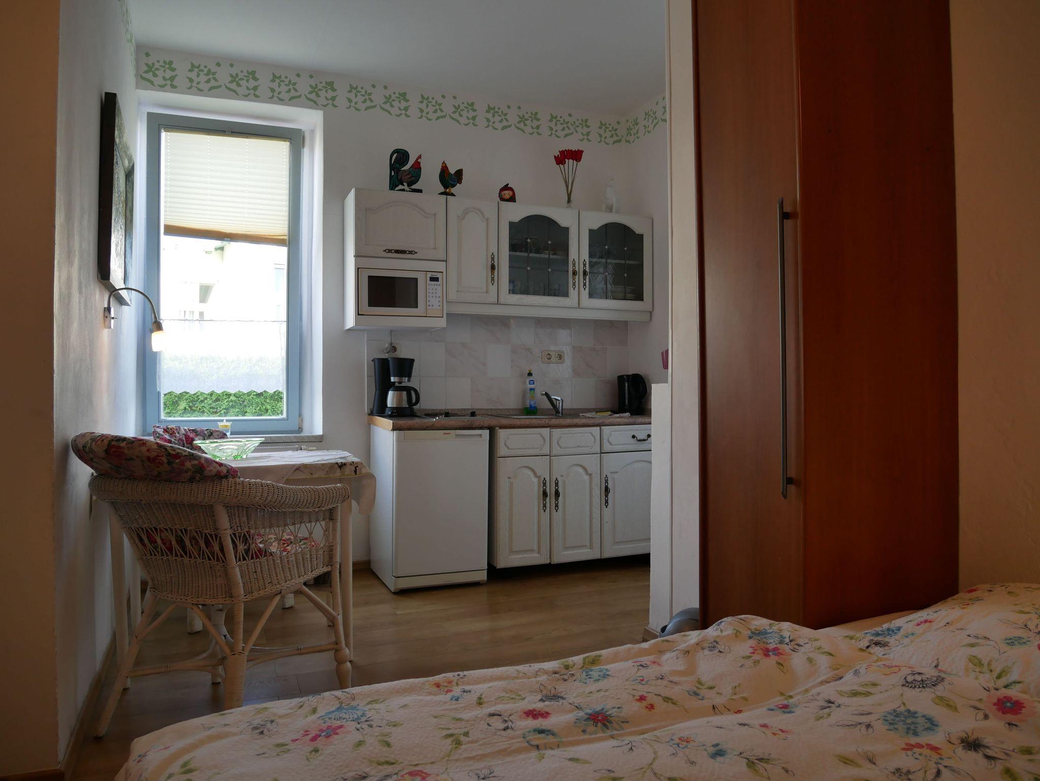 Die Ferienwohnung ist für 1-2 Personen gut geeignet. Sie besteht aus einem kombinierten Wohn-/Schlafraum mit Doppelbett, Kleiderschrank und TV, Bad mit Dusche und WC und einer Küche. Die Küche ist mit einem Elektroherd mit 2 Kochplatten, Kaffeemaschine, Wasserkocher, Toaster und Kühlschrank ausgestattet.
