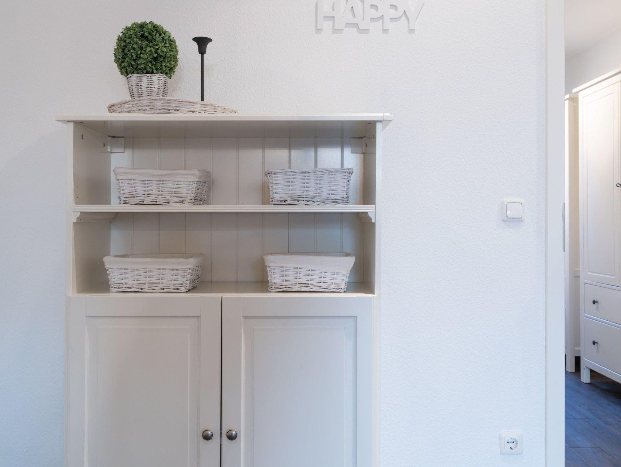 Die hier angrenzende Küchenzeile ist mit einem Kühlschrank mit Gefrierfach, einem Geschirrspüler und einem Backofen mit Cerankochfeld ausgestattet. Eine Kaffeemaschine, ein Toaster und ein Wasserkocher stehen Ihnen hier selbstverständlich zur Verfügung.