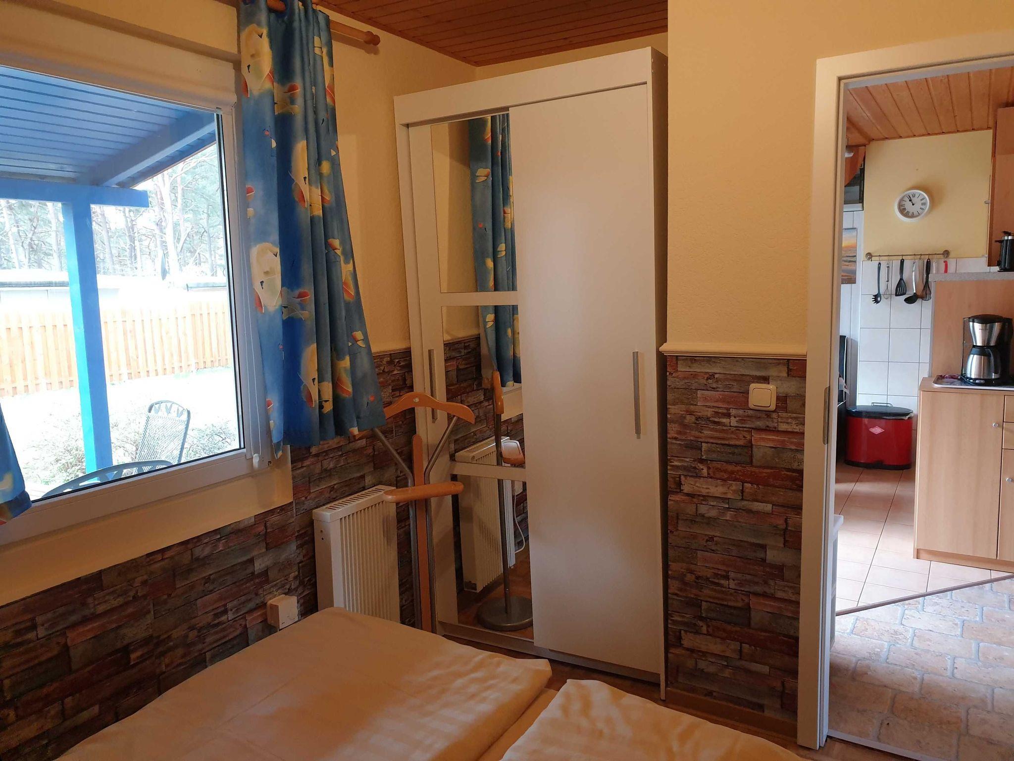 1 Schlafzimmer mit Schrank & Doppelbett (1,60 x 2 m)