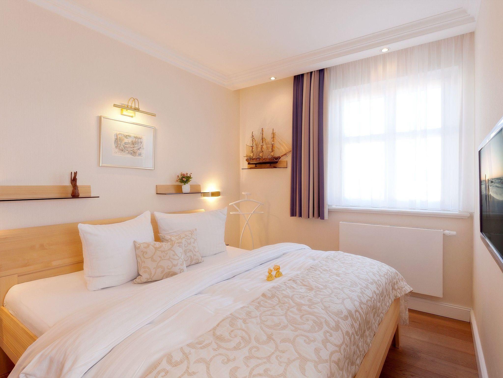 Zur Nachtruhe können Sie sich in das Schlafzimmer mit bequemen Doppelbett (180 x 200cm / zwei getrennte Matratzen) und genügend Stauraum für Ihre Habseligkeiten oder auch Ihre vor Ort erworbenen Urlaubsmitbringsel zurückziehen.