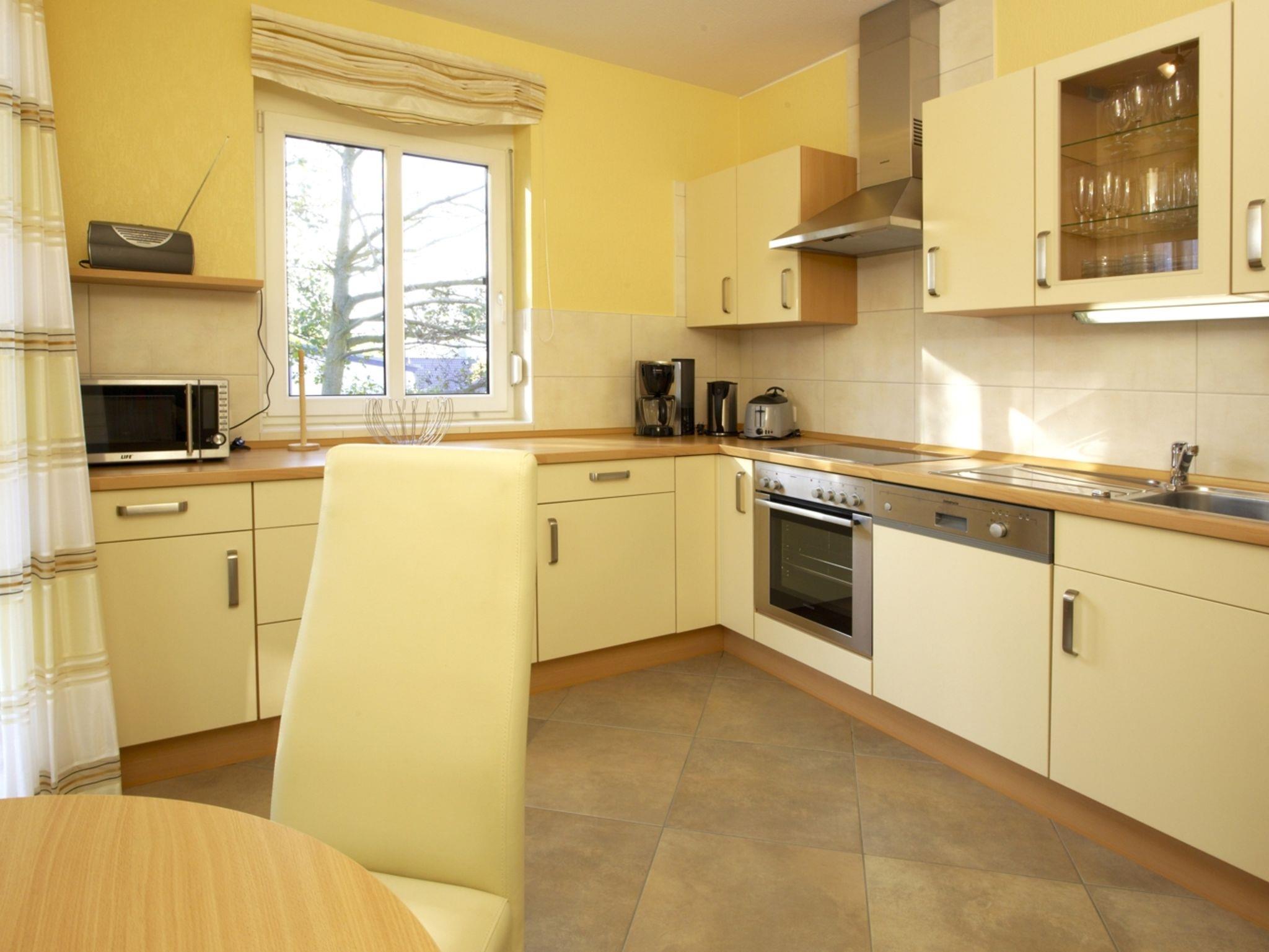 • sep. Küche mit Herd (Cerankochfeld und Backofen), Kühl-/ Gefrierkombination, Geschirrspüler, Kaffeemaschine, Toaster, Wasserkocher