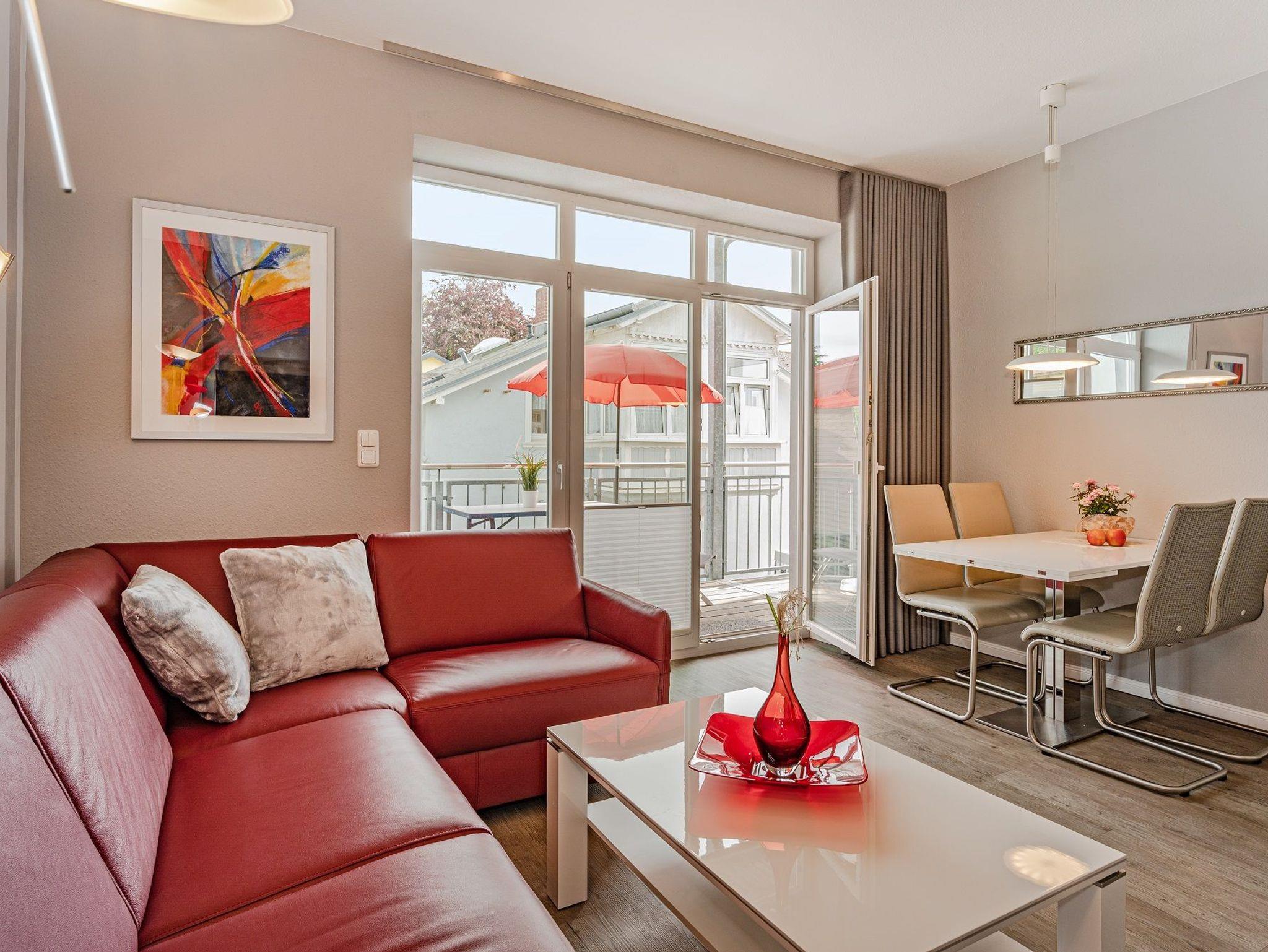 Die 63 m ² große und mit 4 DTV Sternen klassifizierte Ferienwohnung 14 befindet sich in der 1. Etage in der Villa Marin. Sie bietet mit ihren drei Zimmern ausreichend Platz für bis zu 6 Personen.