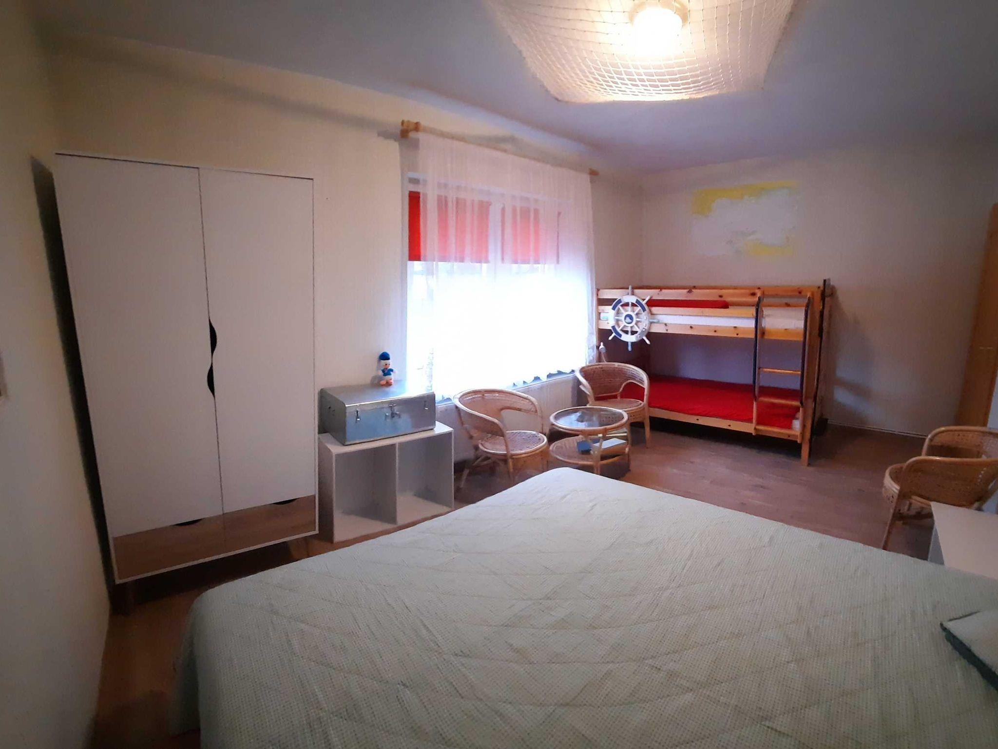 • 1 Schlafzimmer mit großem Doppelbet und Etagenbett