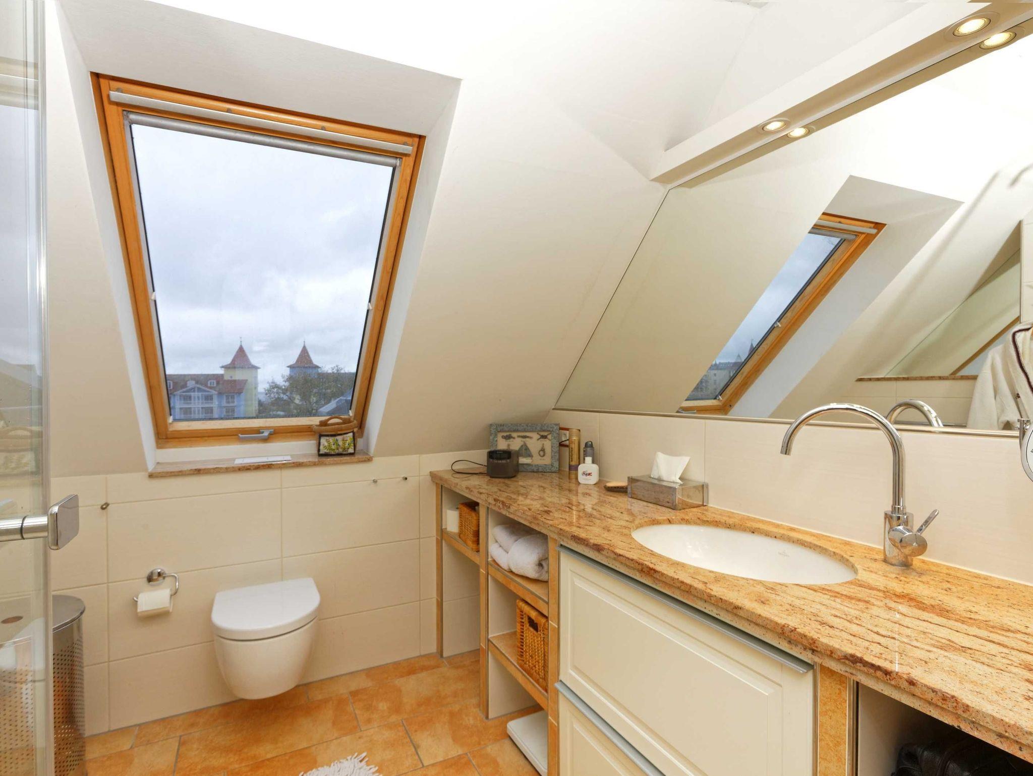 Das Schlafzimmer besitzt ein gemütliches Doppelbett und bietet somit einen ruhigen Rückzugsort. Ein weiteres Doppelbett befindet sich in einer Galerie zu welcher man über eine Raumspartreppe gelangt. Im liebevoll eingerichteten Wohnzimmer befinden sich Fernseher, CD-Player und Stereoanlage, wodurch dieses sich perfekt dazu eignet auch die Zeit in der Wohnung zu genießen. Die moderne Einbauküche bietet mit Herd, Kühlschrank, Kaffee- sowie Spülmaschine und Mikrowelle eine Möglichkeit sich kulinarisch frei zu entfalten. Die Wohnung besitzt des Weiteren zwei Badezimmer mit Dusche und WC. Auf dem möblierten Balkon können Sie Ihren Tag perfekt ein- und ausklingen lassen. Einen PKW-Parkplatz stellen wir Ihnen selbstverständlich zur Verfügung. Das Schlafzimmer ist mit einem Doppelbett und einem großen Schrank ausgestattet, eine weitere Aufbettungsmöglichkeit befindet sich im Wohnzimmer. Des Weiteren besitzt das behagliche Wohnzimmer eine gemütliche Sitzecke sowie einen Fernseher und eine Stereoanlage um die Zeit in der Wohnung gut ausnutzen zu können. Die moderne Küche mit Ceran-Kochfeld, Kühlschrank und weiteren wichtigen Küchengeräten ermöglicht ein Kochen wie zuhause. Das hochwertig ausgestattete Bad besitzt eine Dusche, ein WC und eine Fußbodenheizung. Natürlich stellen wir Ihnen ein PKW-Parkplatz zur Verfügung und ein Fahrradunterstellplatz ist auch vorhanden.