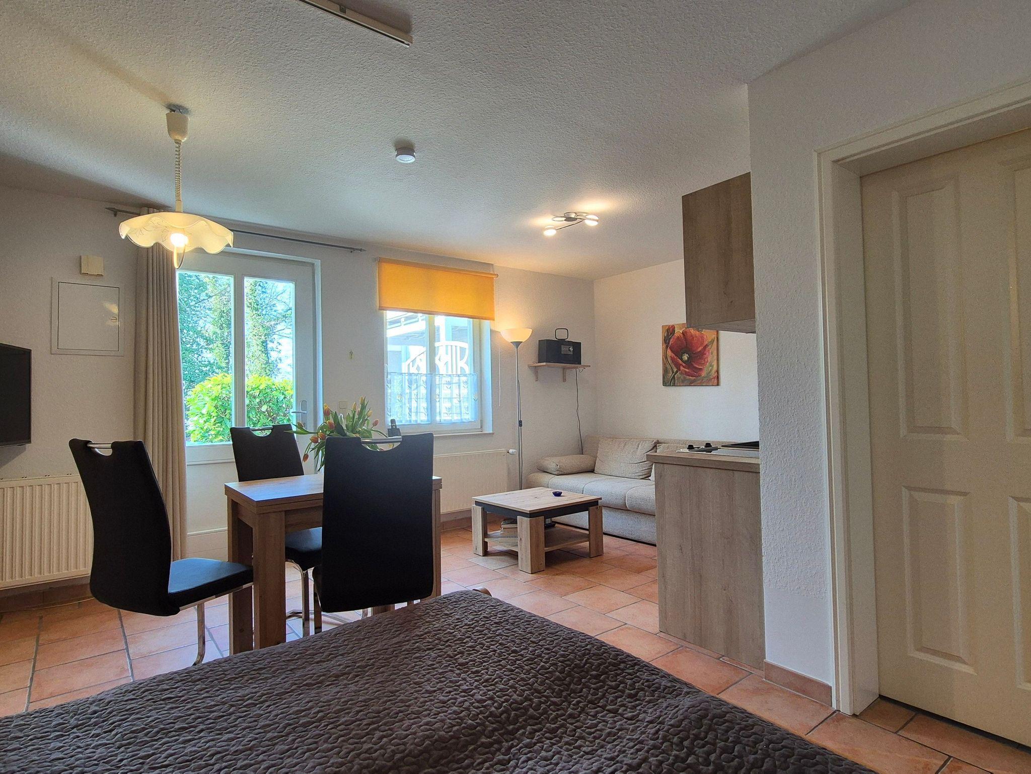 Die 1-Zimmer-Ferienwohnung im Erdgeschoss steht für bis zu 2 Erwachsene zur Verfügung.
