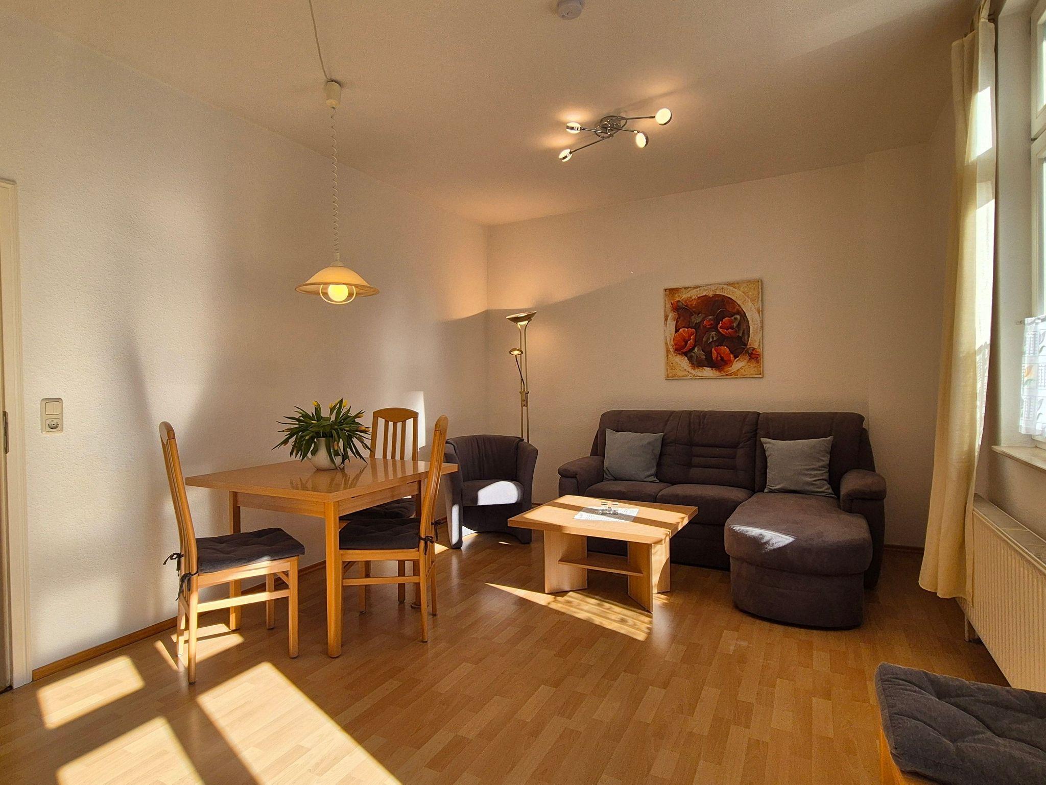 Die 2-Zimmer-Ferienwohnung im Obergeschoss steht für bis zu 2 Erwachsene zzgl. einem Kleinkind zur Verfügung.