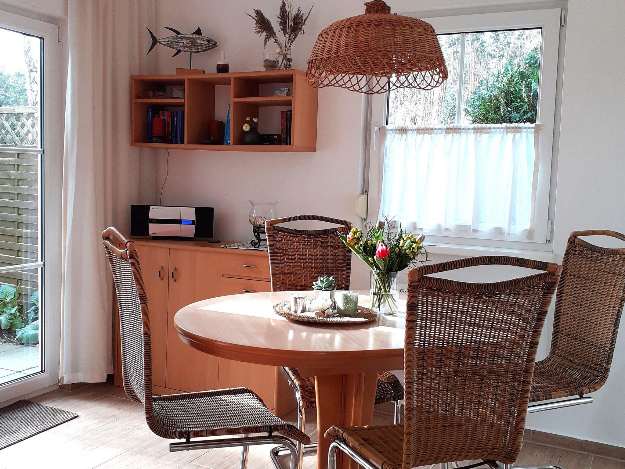 Das Ferienhaus erstreckt sich über 2 Etagen, ist sehr geräumig und komfortabel eingerichtet. Im Wohnzimmer befindet sich ein Elektrokamin und die vor der Essecke liegende Terrasse lädt zur Erholung ein. Das Haus liegt ruhig am Ende der Straße in unserer schönen Ferienanlage Skanepark mit einem Spielplatz und einer Tischtennisplatte. Zu der Wohnung gehört außerdem ein Fahrradschuppen & ein PKW-Stellplatz.