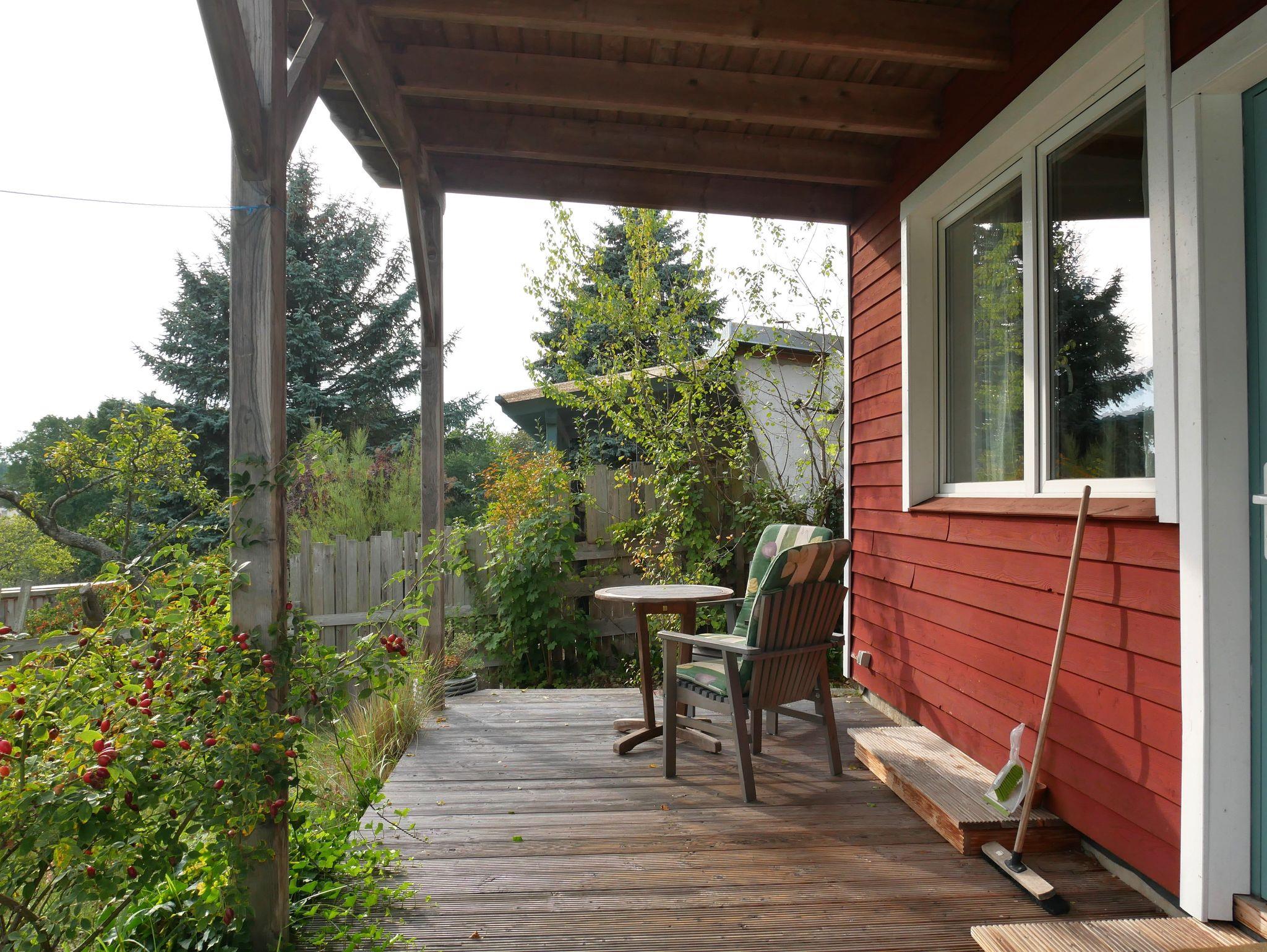 Klein aber fein. Das kleine Holzhaus am Sonnenhang (ca. 18qm) mit großer, sichtgeschützter und überdachter Terrasse bietet Platz für 1-2 Personen. Fernab vom Touristentrubel, idyllisch gelegen, etwa 20 Gehminuten von Wald und Strand entfernt. Im Sommer 2016 neu errichtet. Das lichtdurchflutete Häuschen steht auf einem 900 qm großen Gartengrundstück mit altem Baumbewuchs und naturbelassenem Umfeld.
