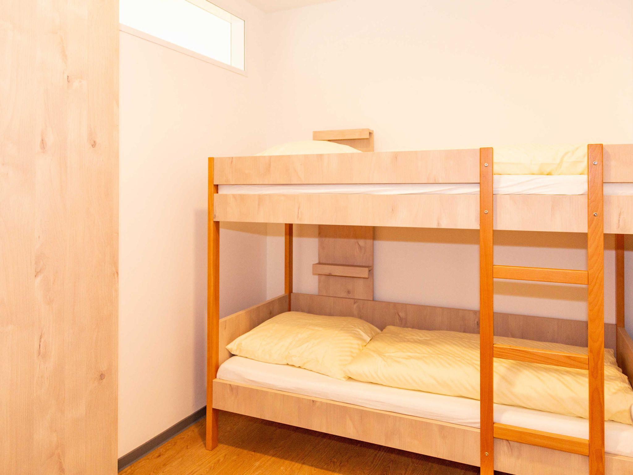 kleinen Schlafzimmer finden zwei Personen im Etagenbett Platz.